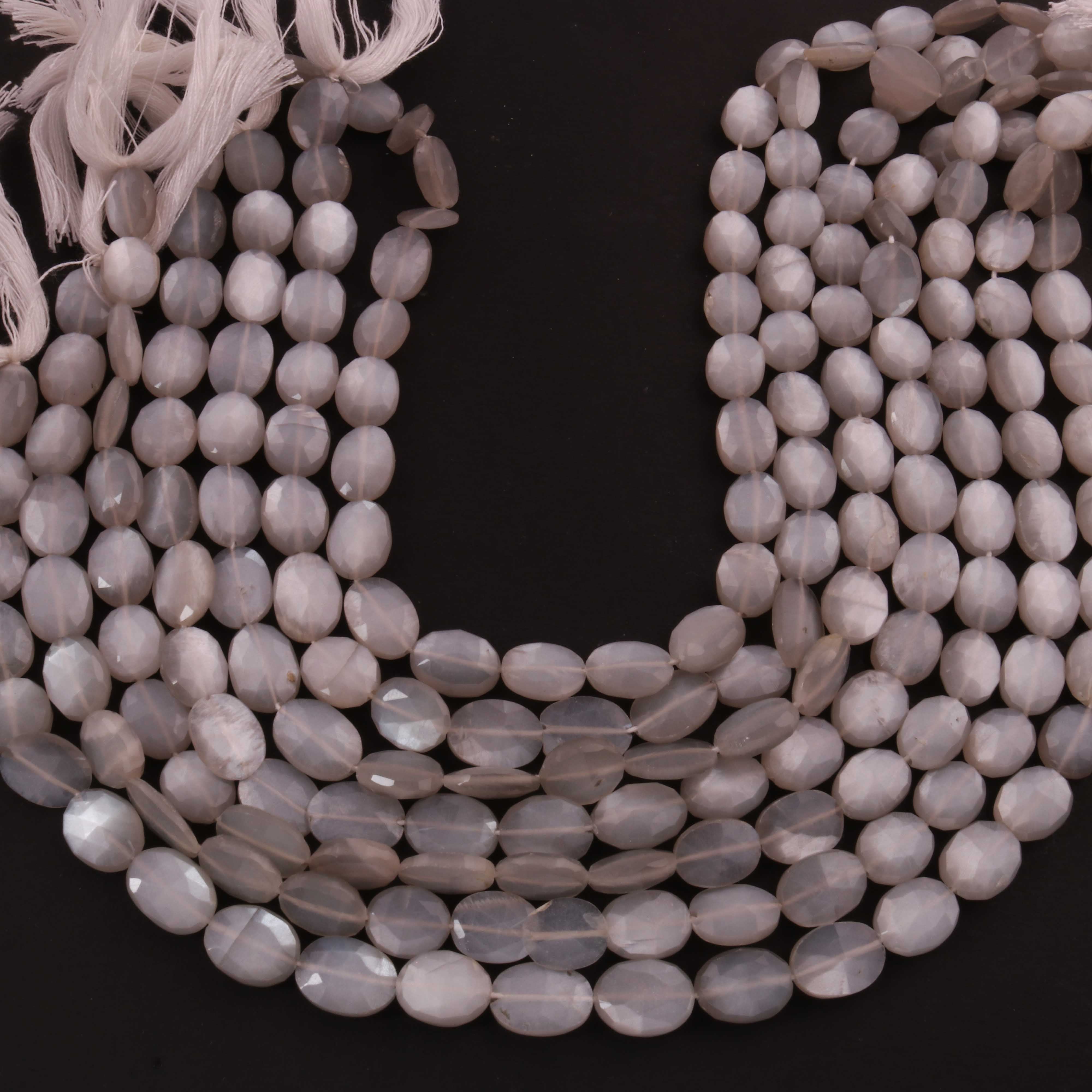 1 Strand Grey Moonstone Oval Shape Faceted Briolettes - 8mmx10mm-10mmx13mm- 13 Inch BR03341
