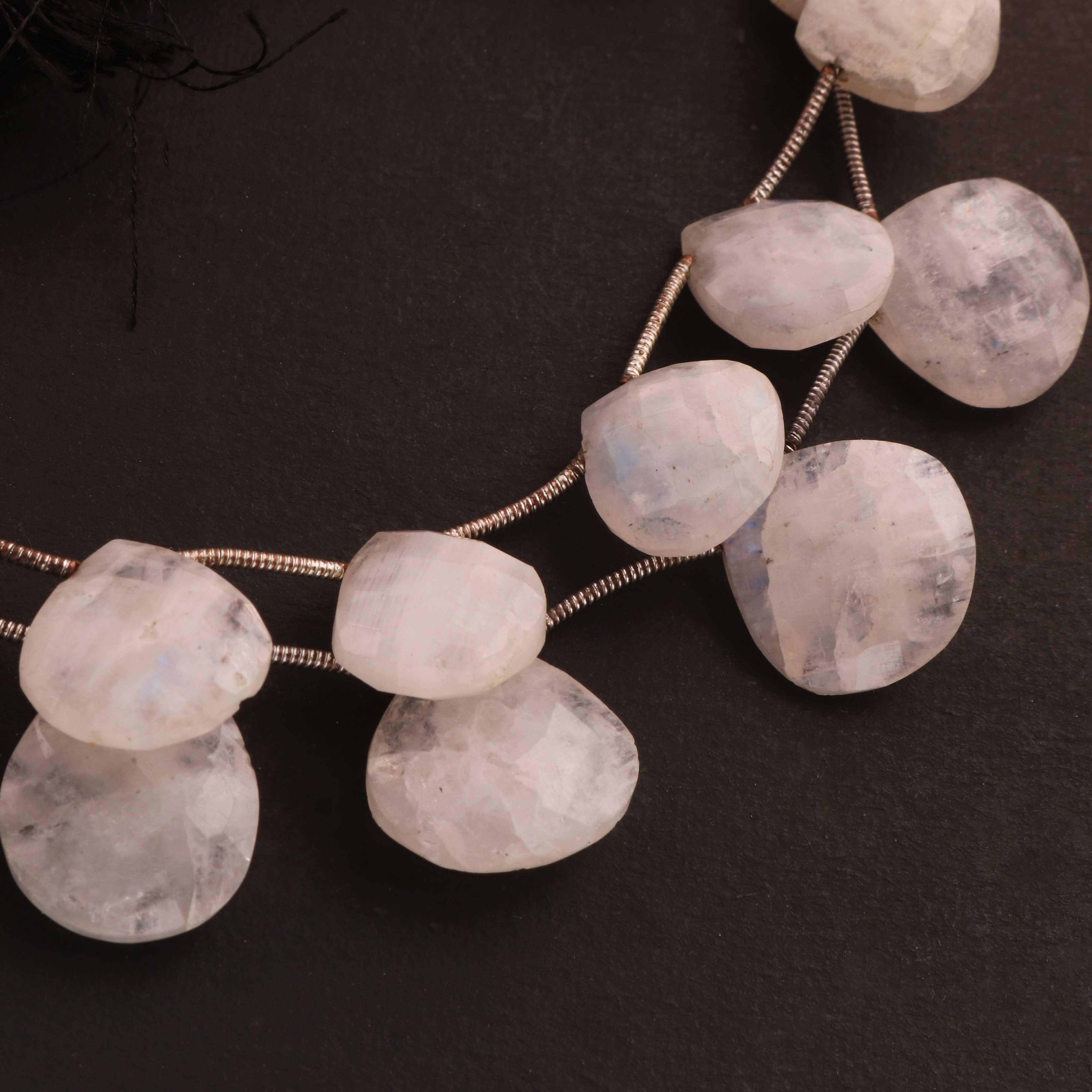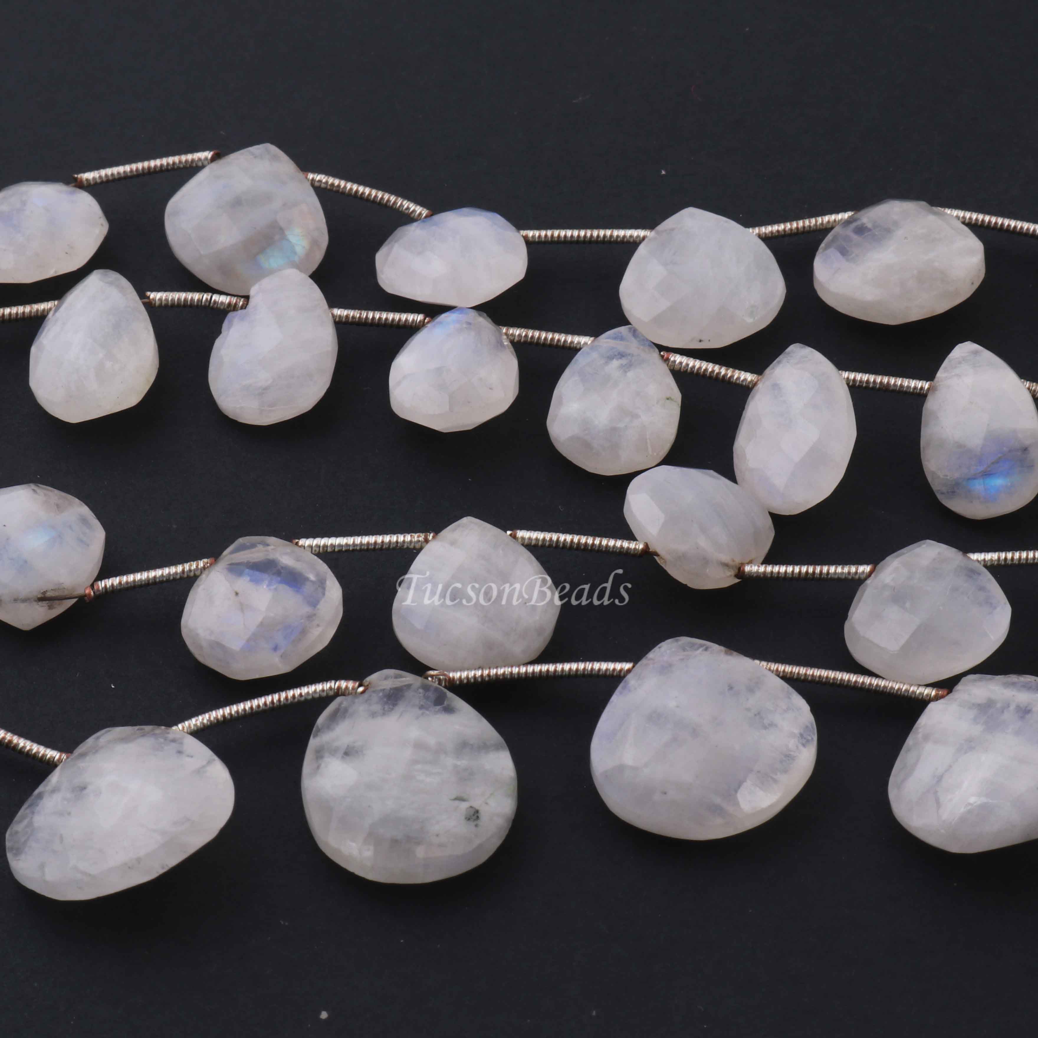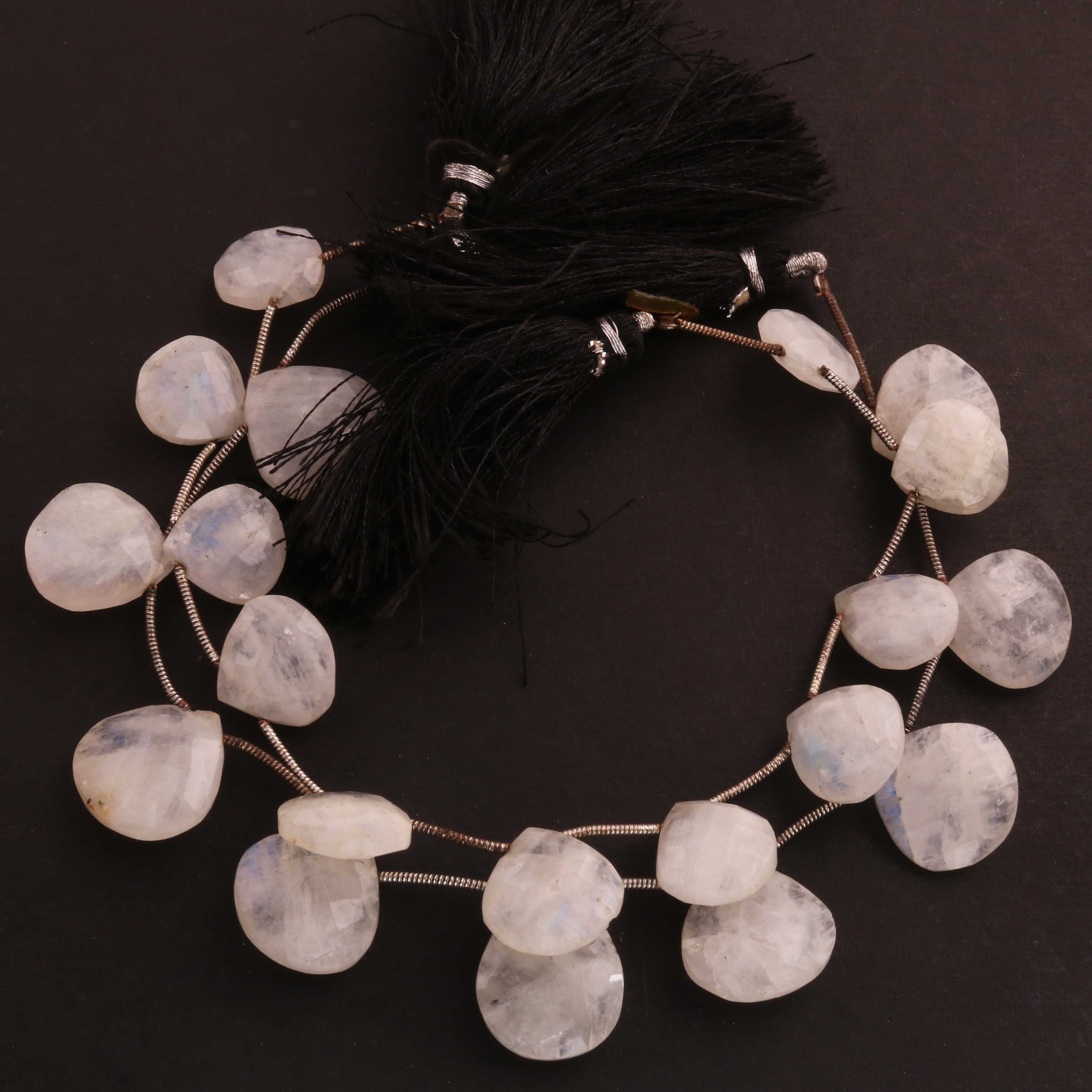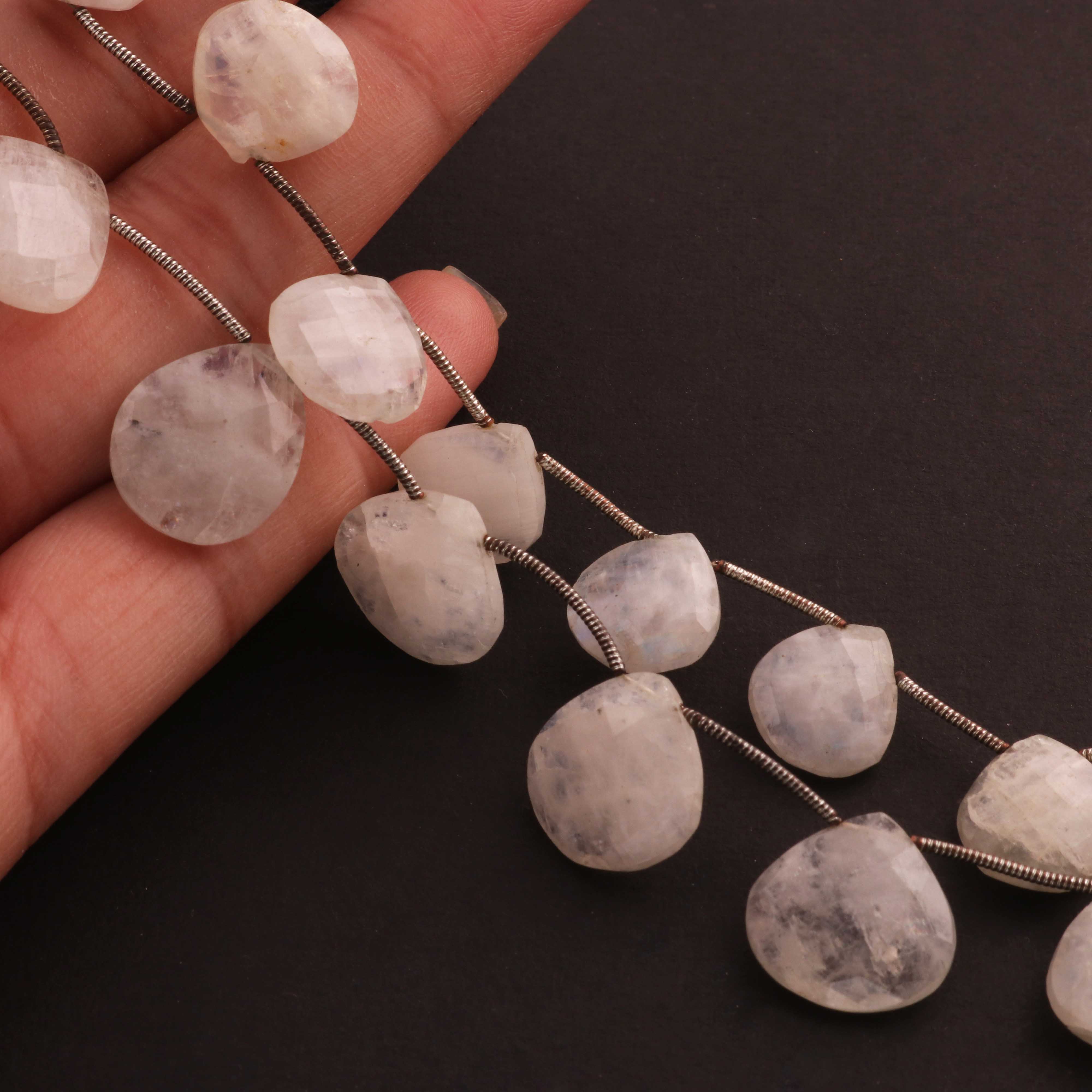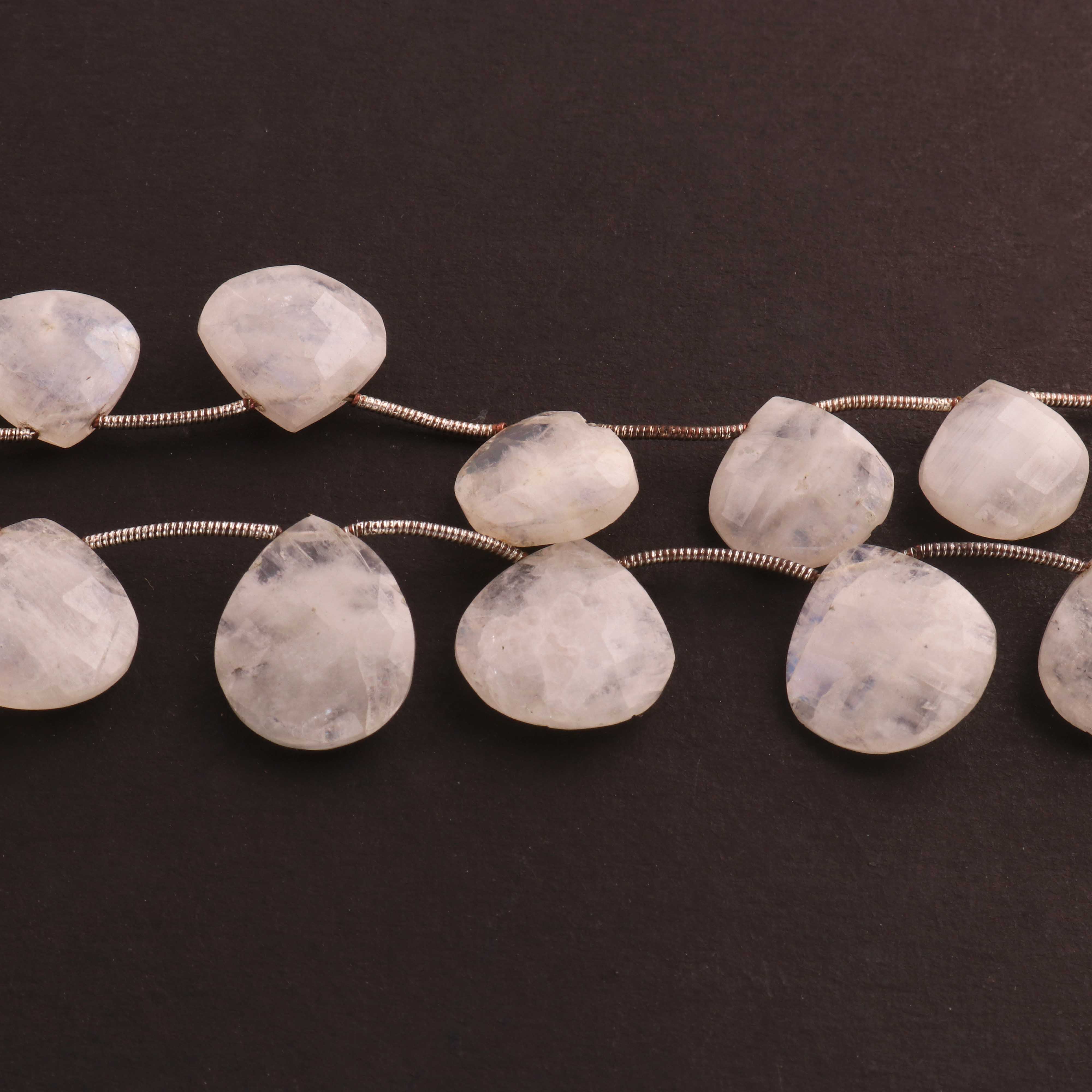 1 Strand White Rainbow Moonstone Faceted Briolettes  -Heart Shape Briolettes  17mmx10mm-12mmx12mm 7 Inches BR2149
