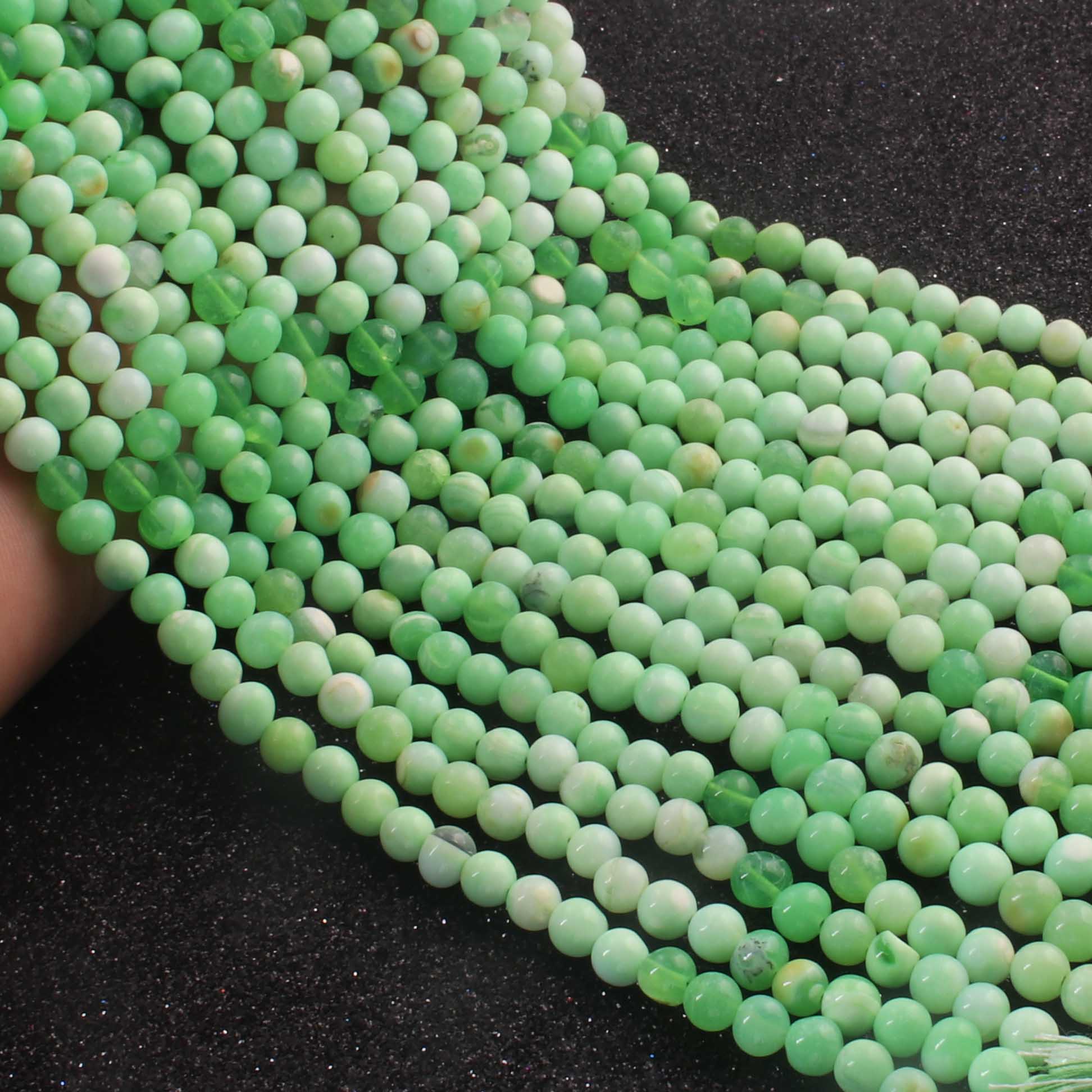 1 Long Strands Green Opal Smooth Rondelles - Green Opal Round Ball Beads 5mm 14 Inches BR0221