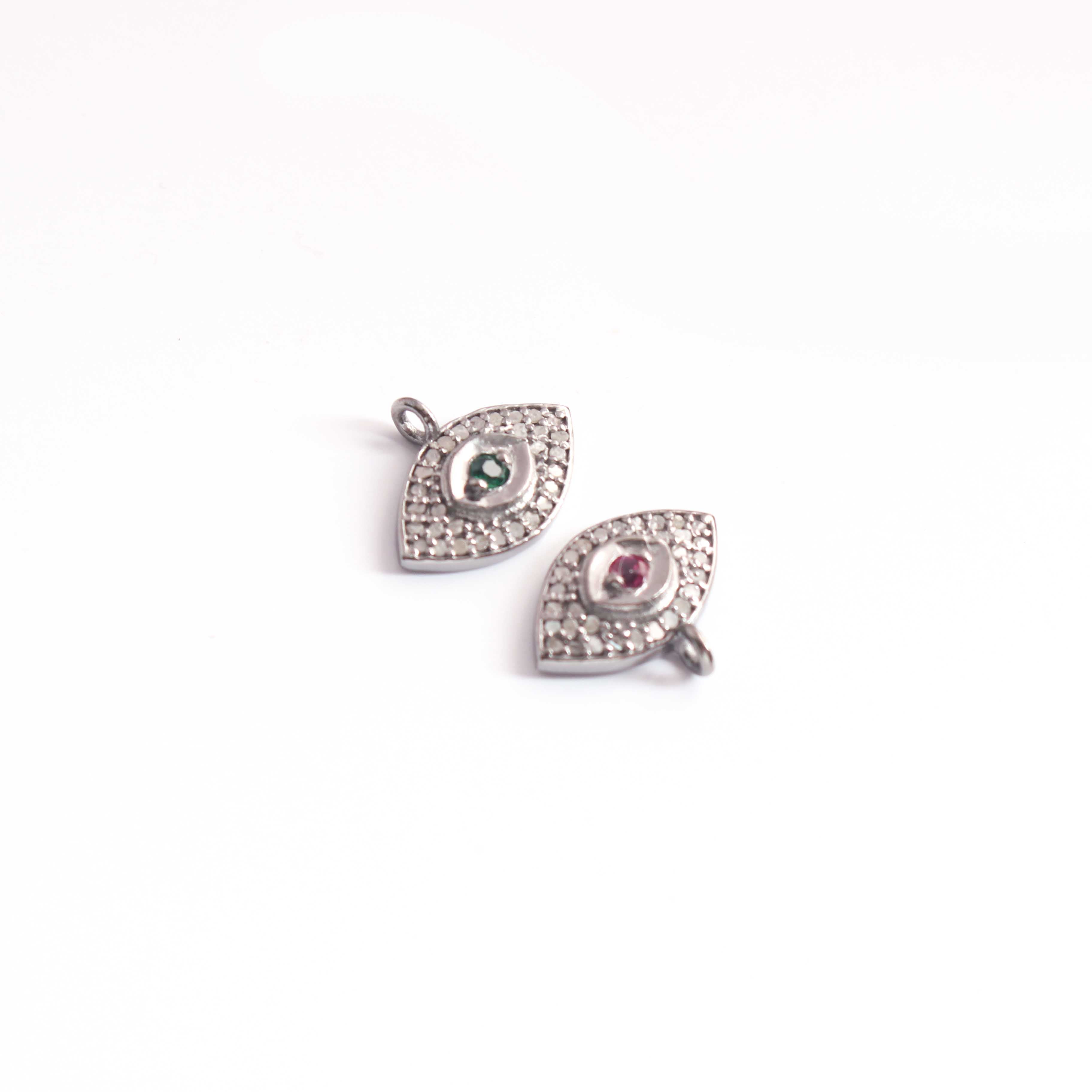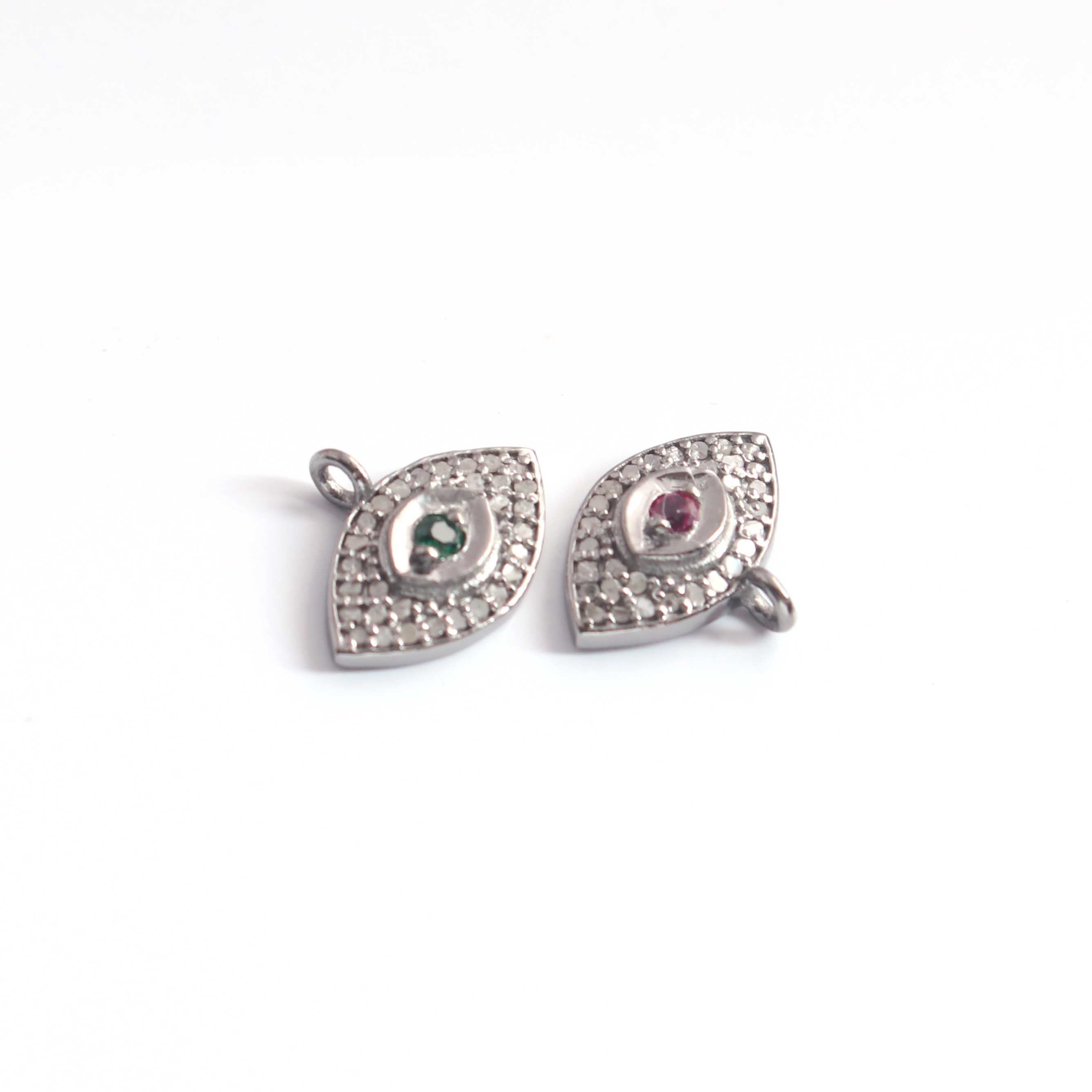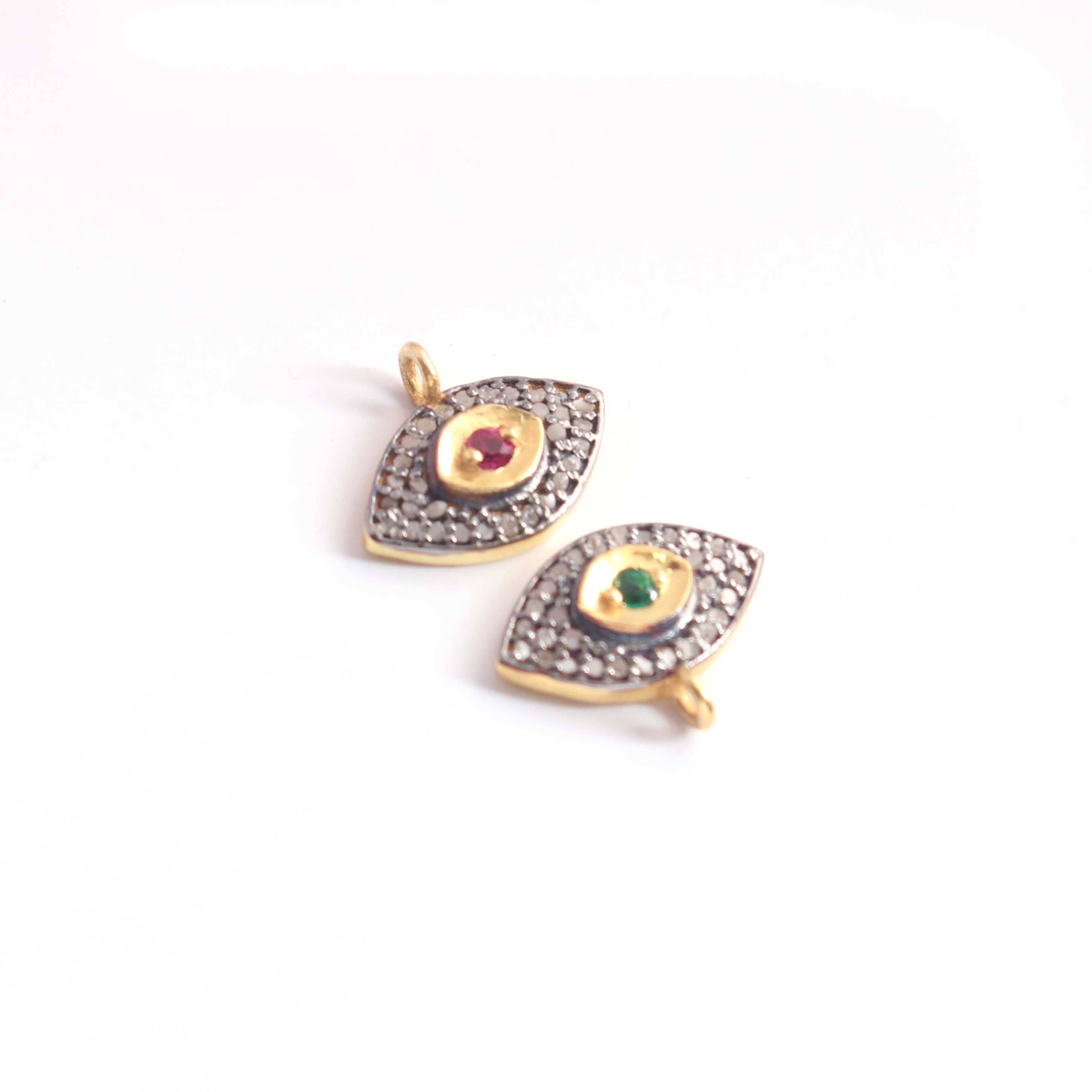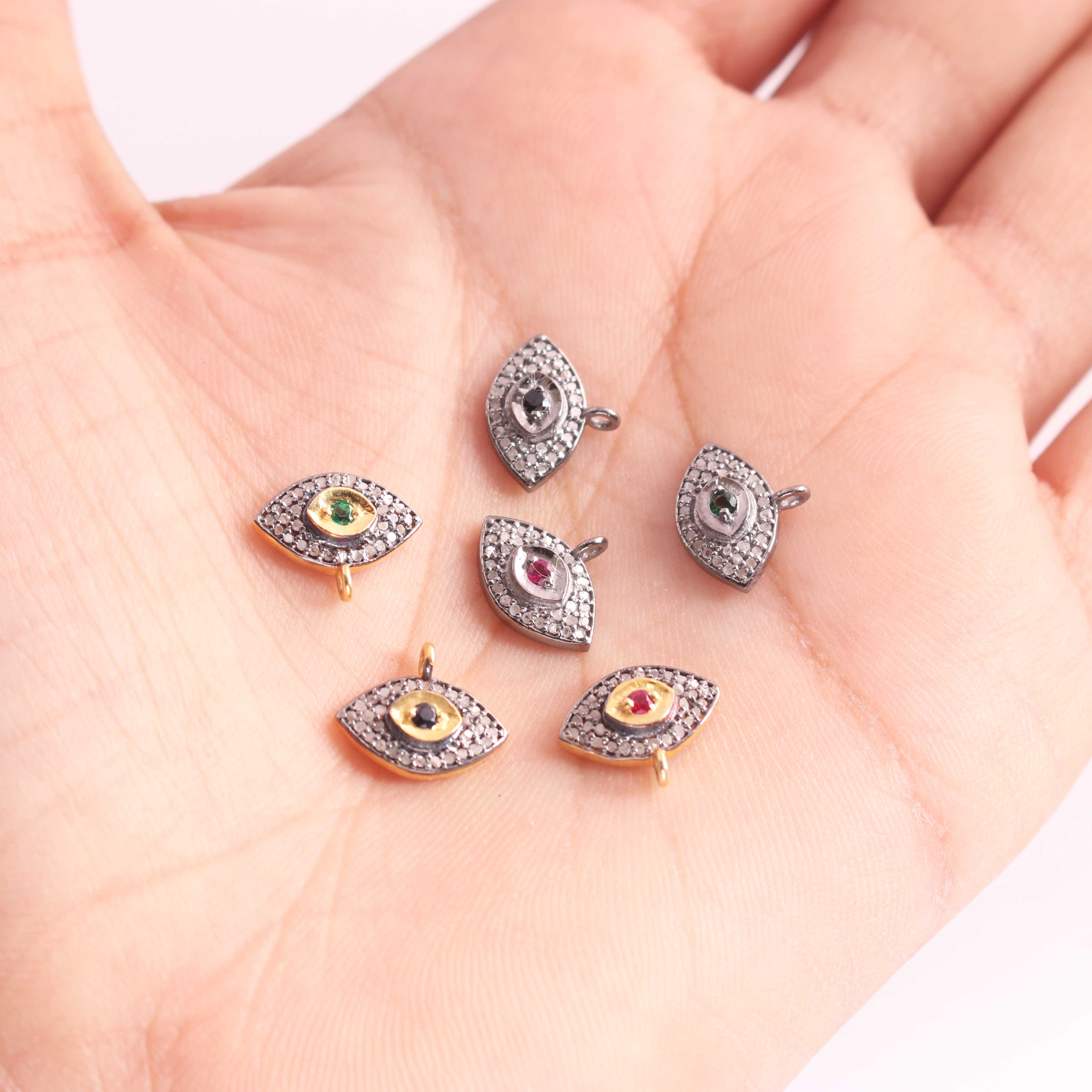 1 Pc Pave Diamond Center in Ruby, Emerald and Blue Sapphire Evil Eye Charm 925 Sterling Silver & Vermeil Pendant - 13mmx10mm PDC1204