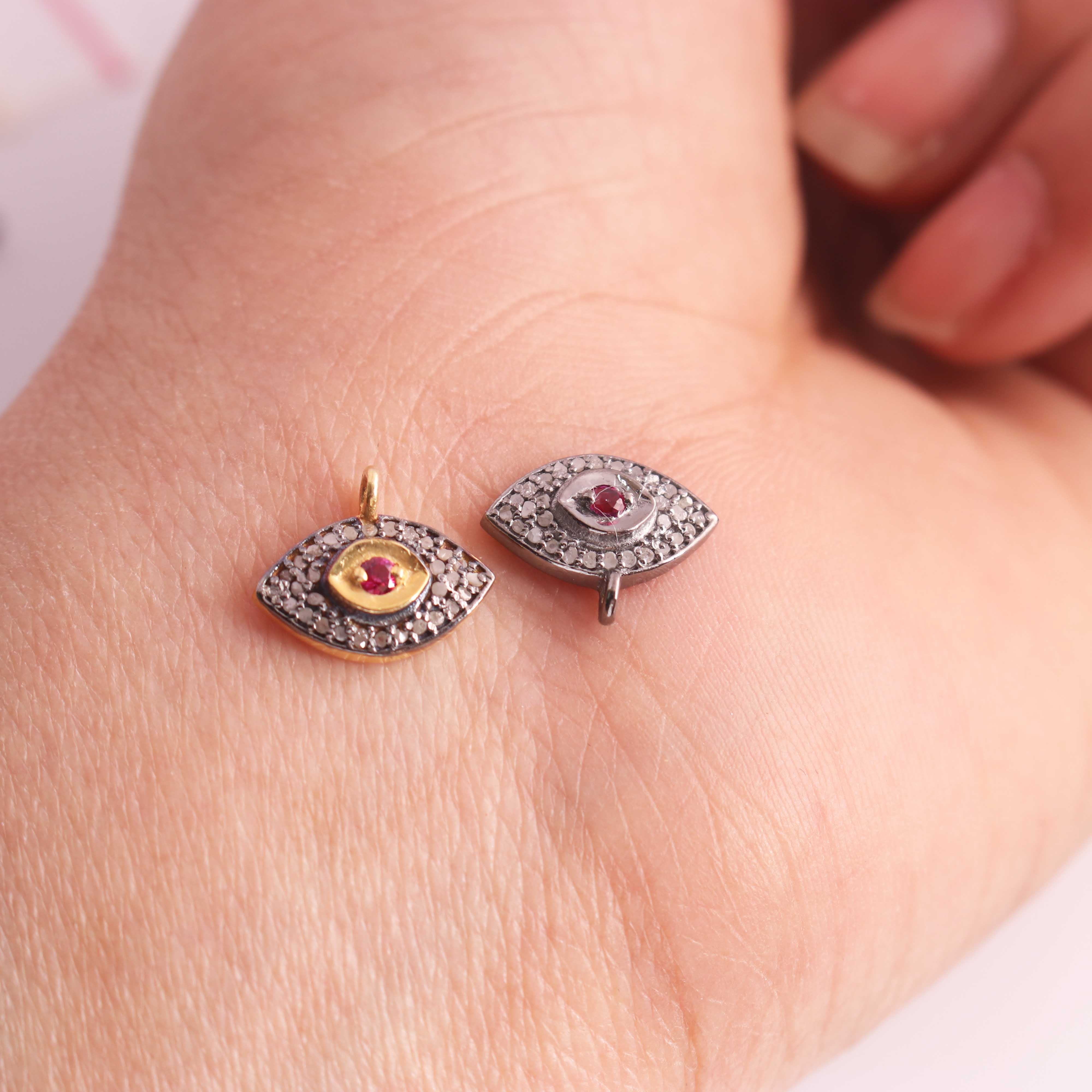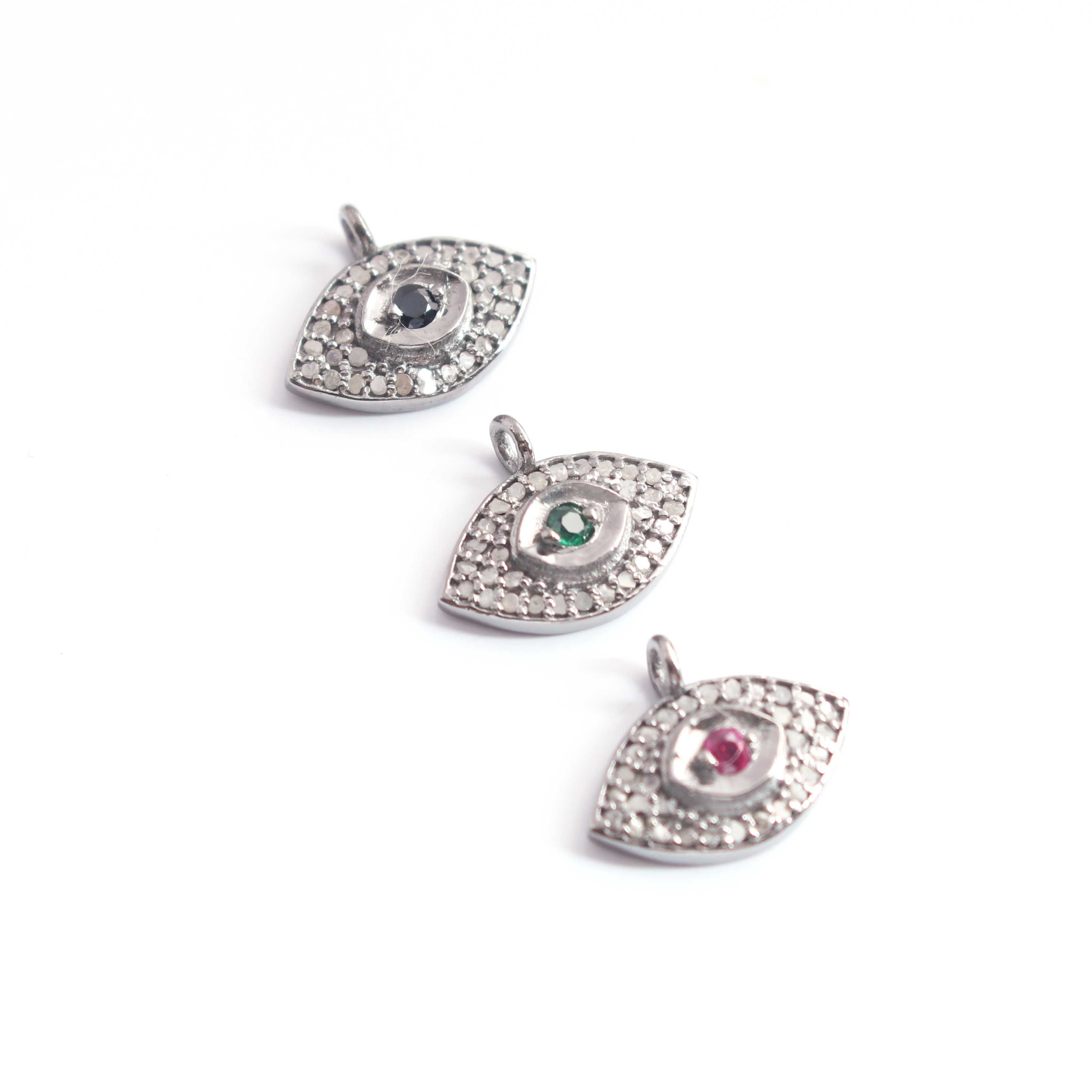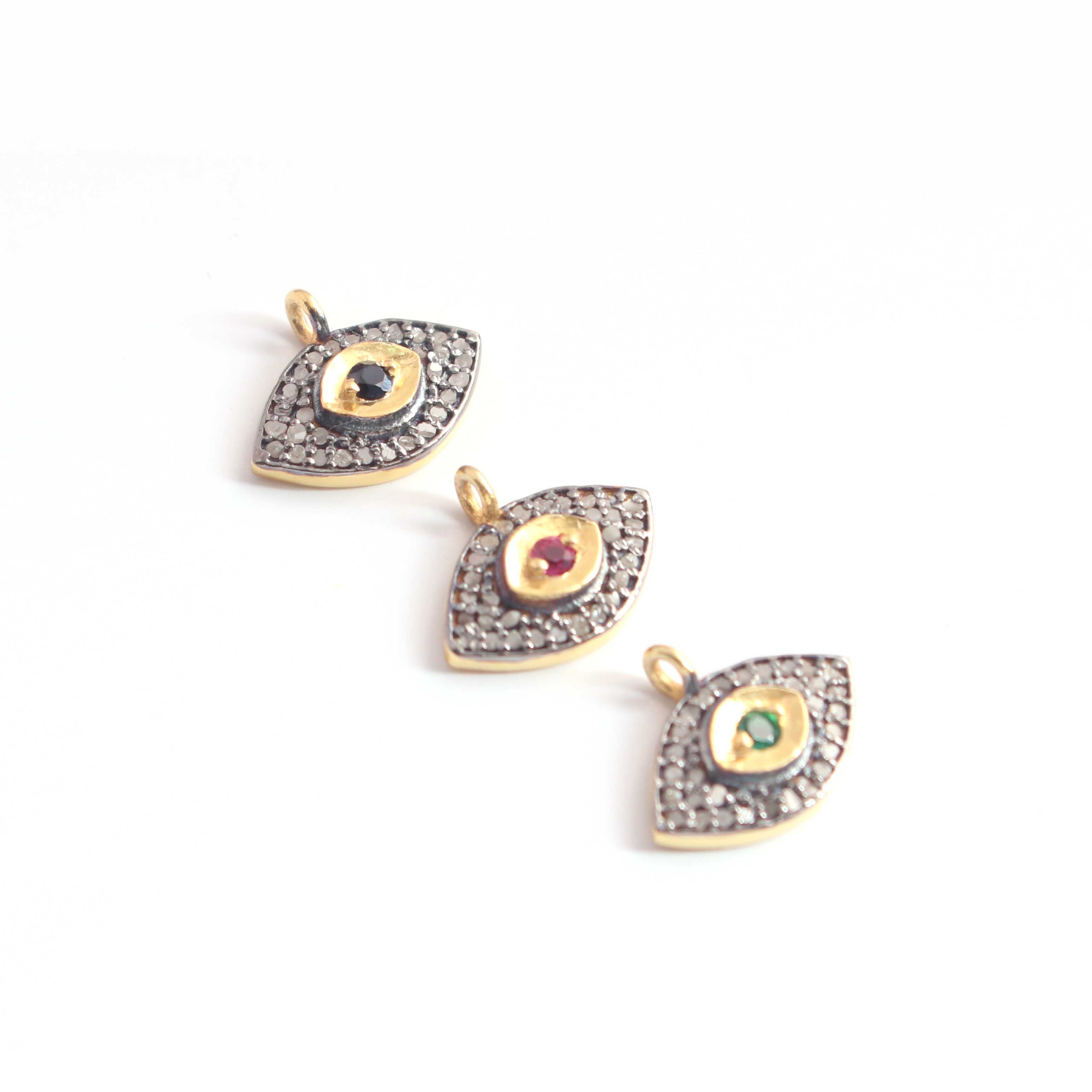 Listing Is For One 1 Pc Pave Diamond Center in Ruby, Emerald and Blue Sapphire Evil Eye Charm 925 Sterling Vermeil Pendant - 13mmx10mm PDC1204