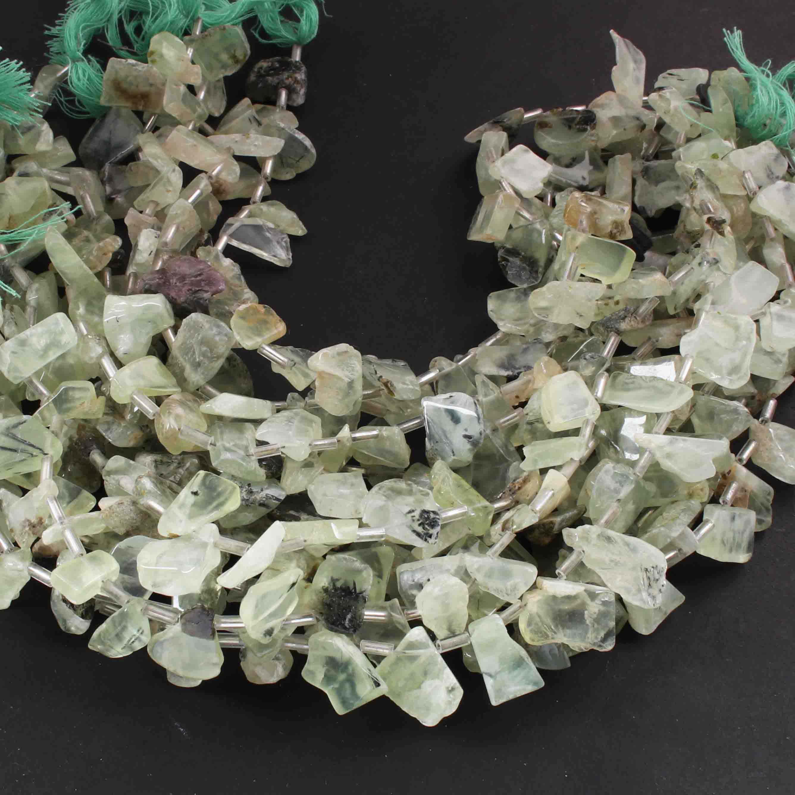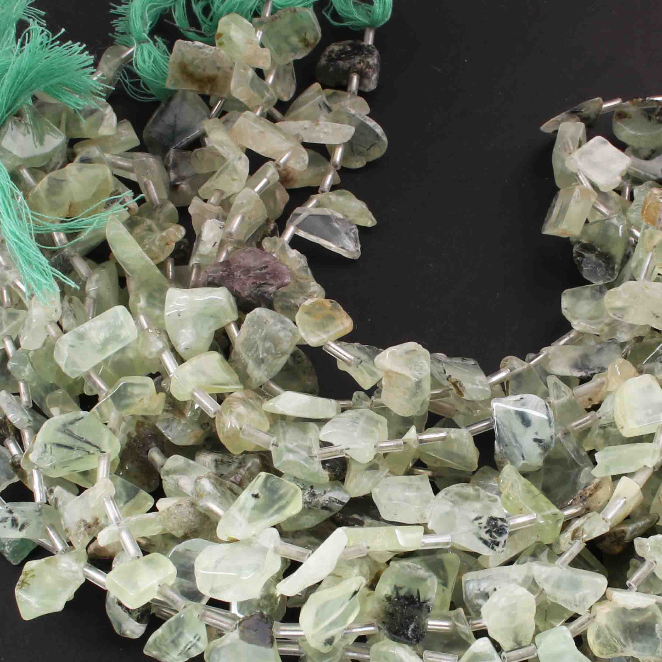 1 Strand Prehnite Facted Briolettes - Assorted Shape Briolettes - 11mmx7mm-16mmx11mm - 11 Inches BR01977