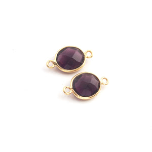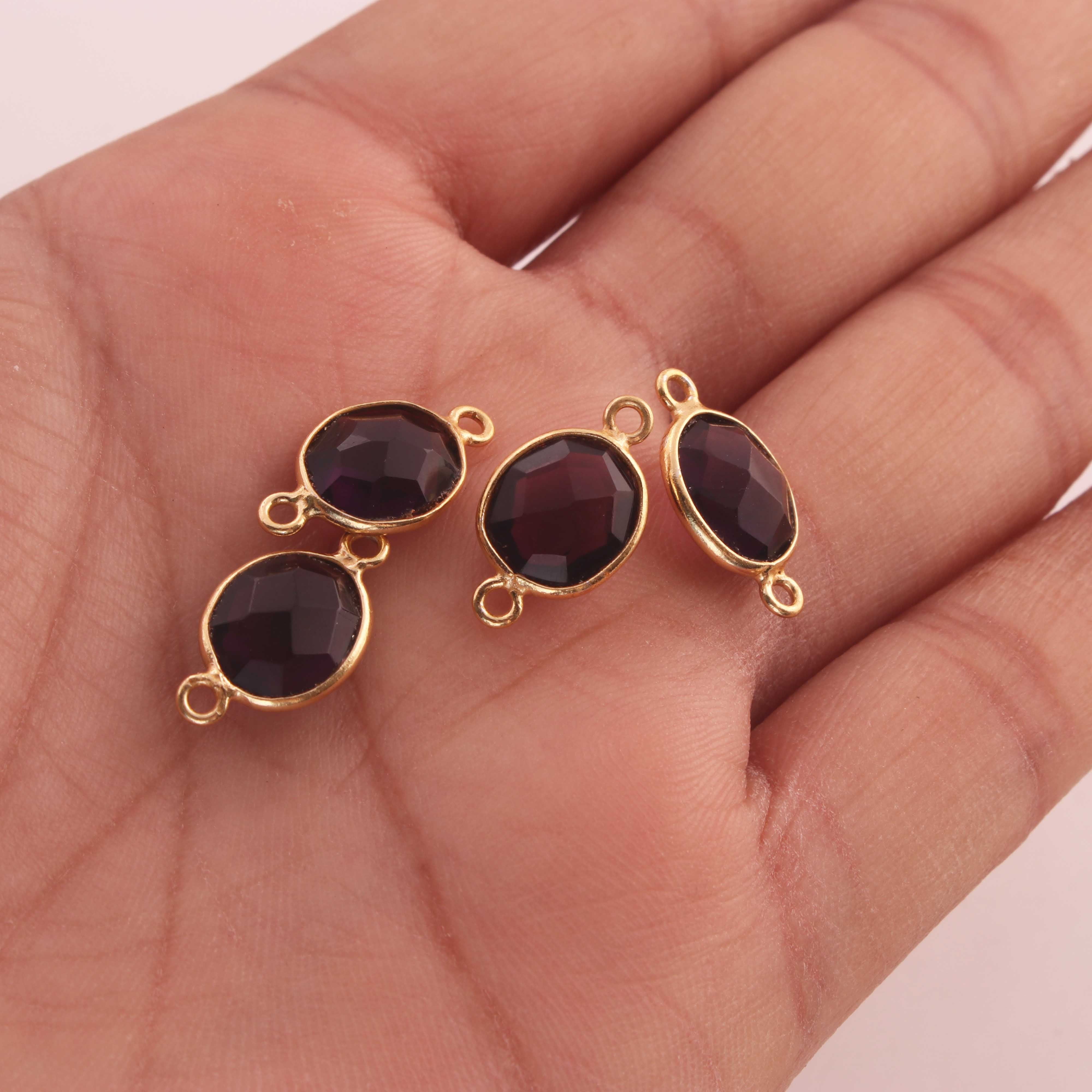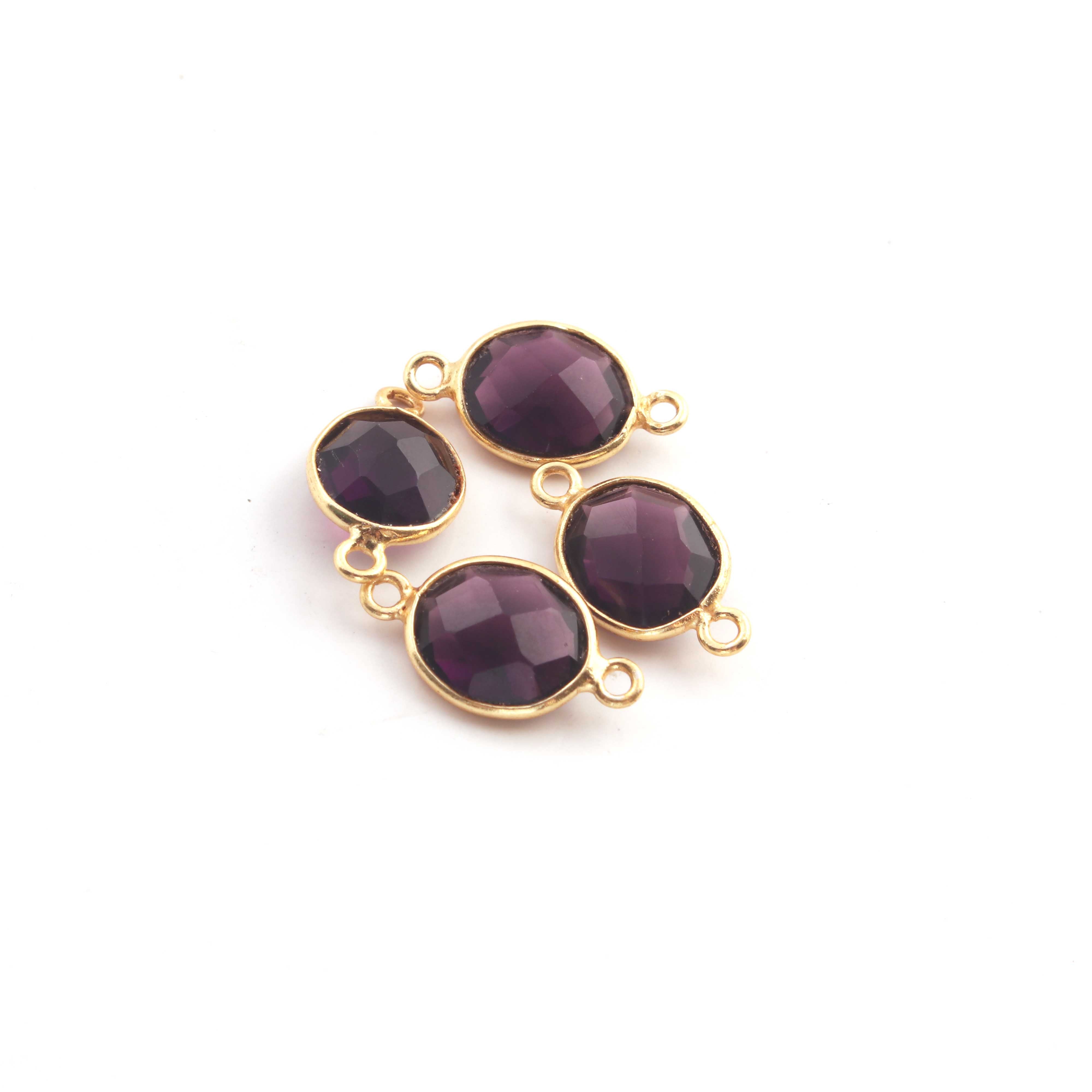 4 Pcs Amethyst Birth Stone Faceted 925 Sterling Vermeil Oval Shape Connector - 17mmx8mm - SS577