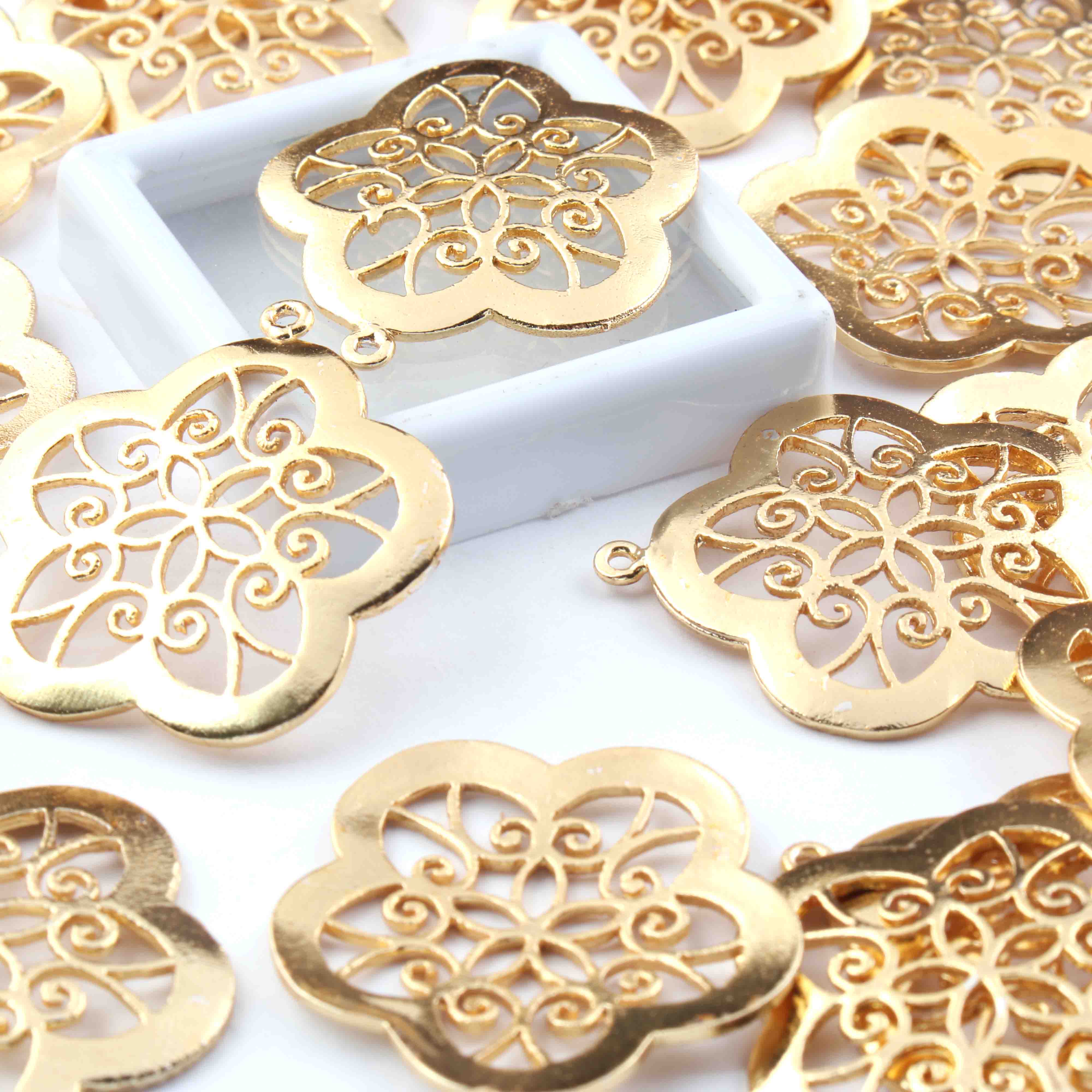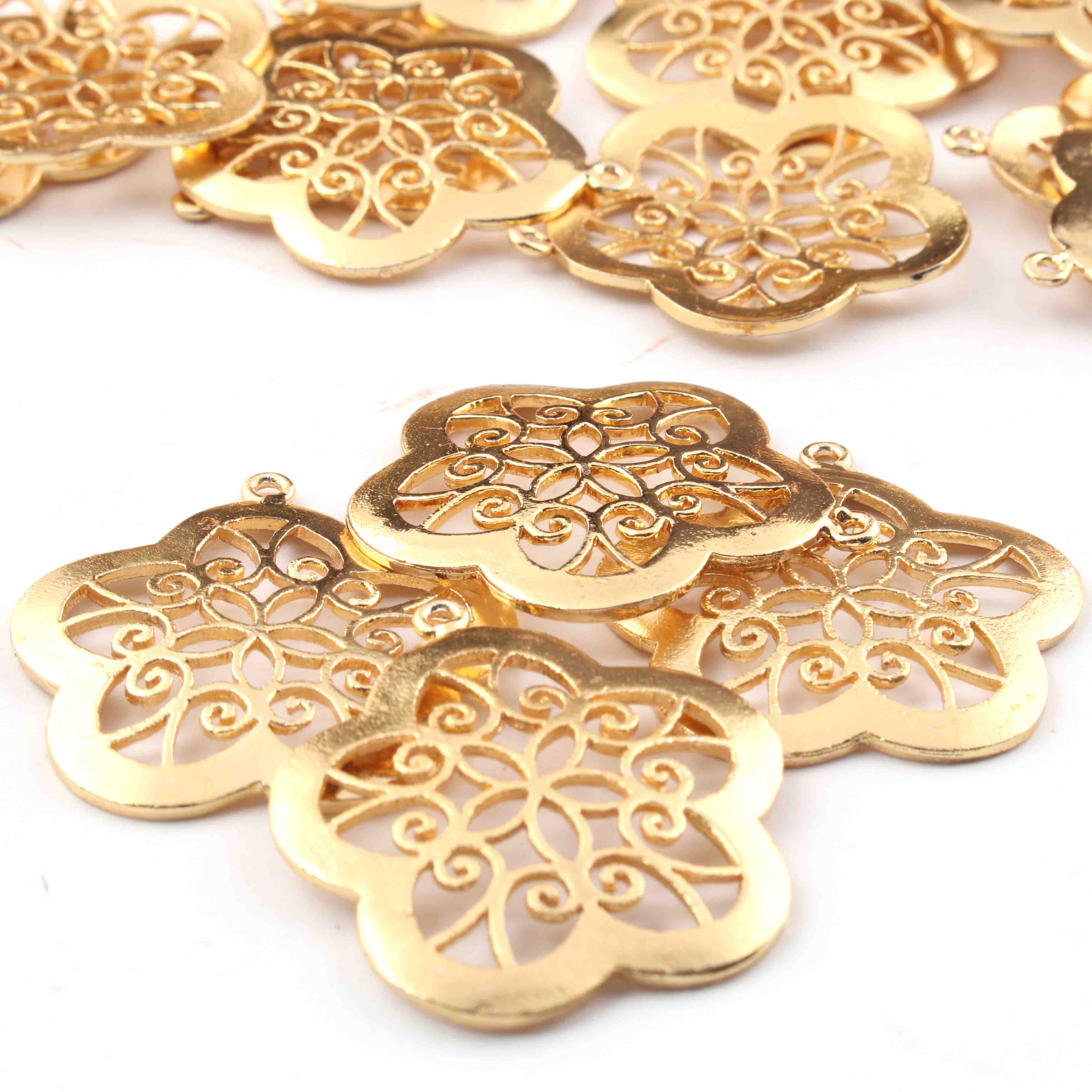 5 Pcs 24k Gold Plated Flower Copper Charm Pandent, Designer Flower Charm, Jewelry Making Tools, 34mmx31mm GPC1457