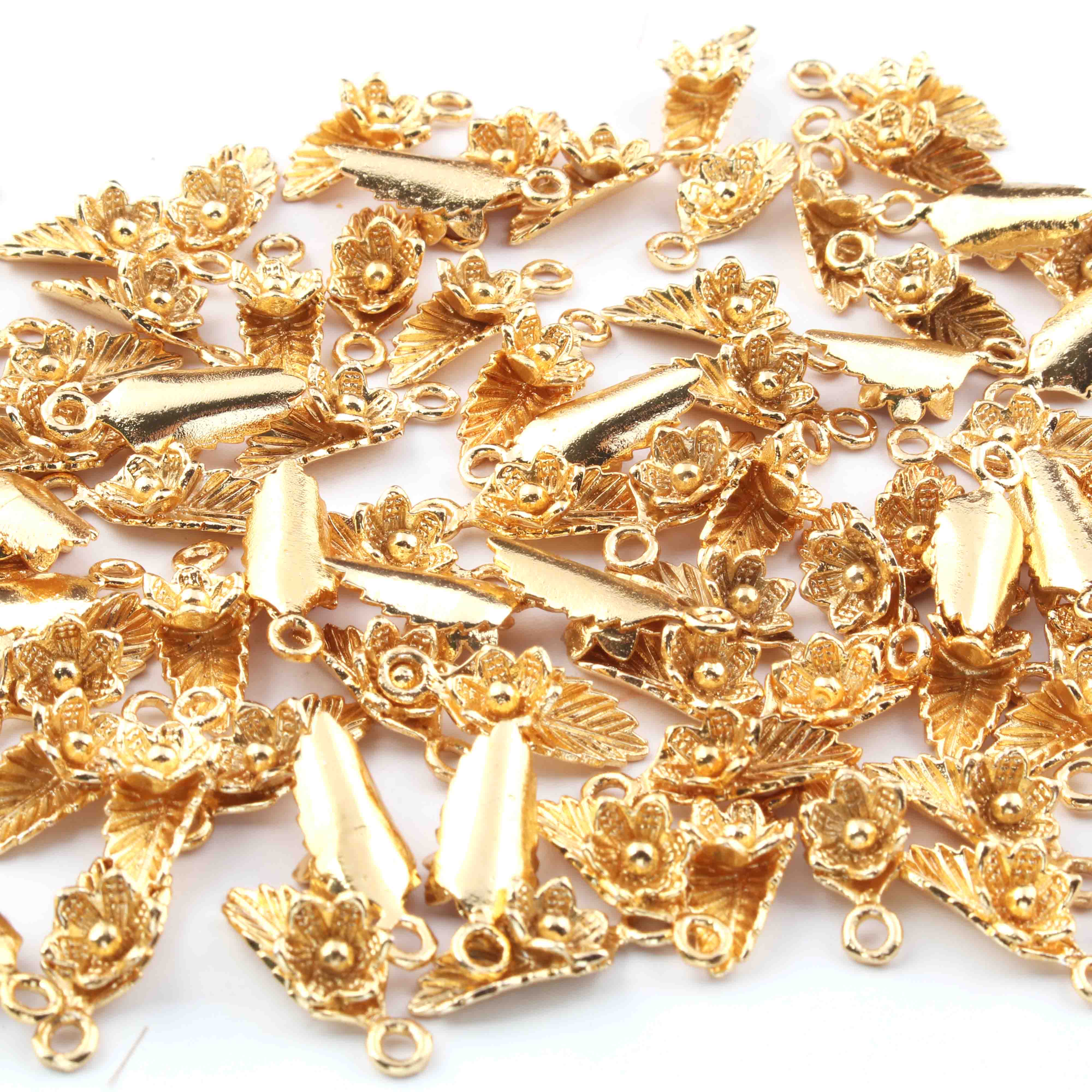 5 Pcs Gold Fancy Charm Pendant - 24k Gold Plated Leaf - Brass Gold Fancy Pendant 23mmx9mm GPC1454