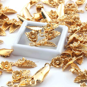 5 Pcs Gold Fancy Charm Pendant - 24k  Gold Plated Leaf  - Brass Gold Fancy Pendant 23mmx9mm GPC1454