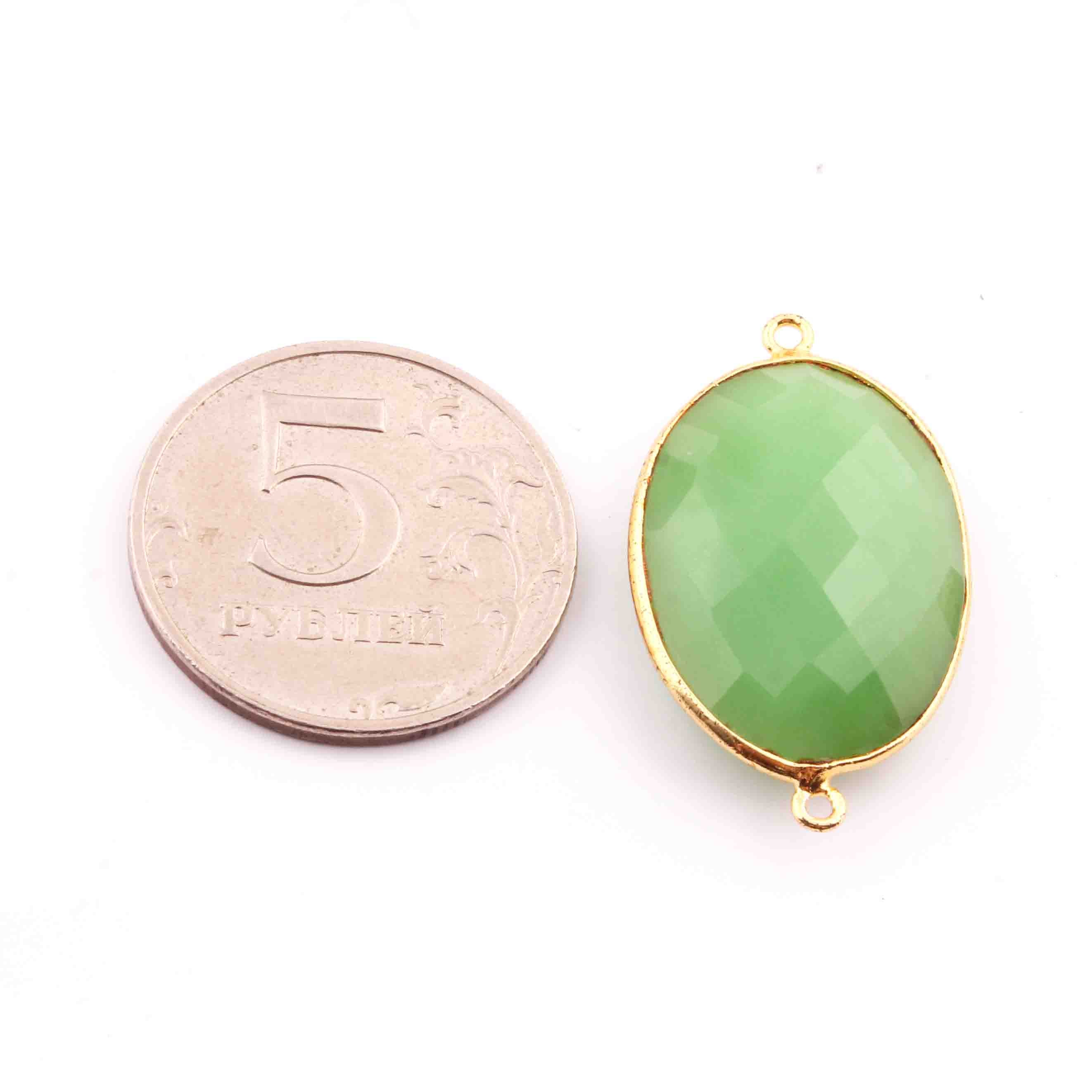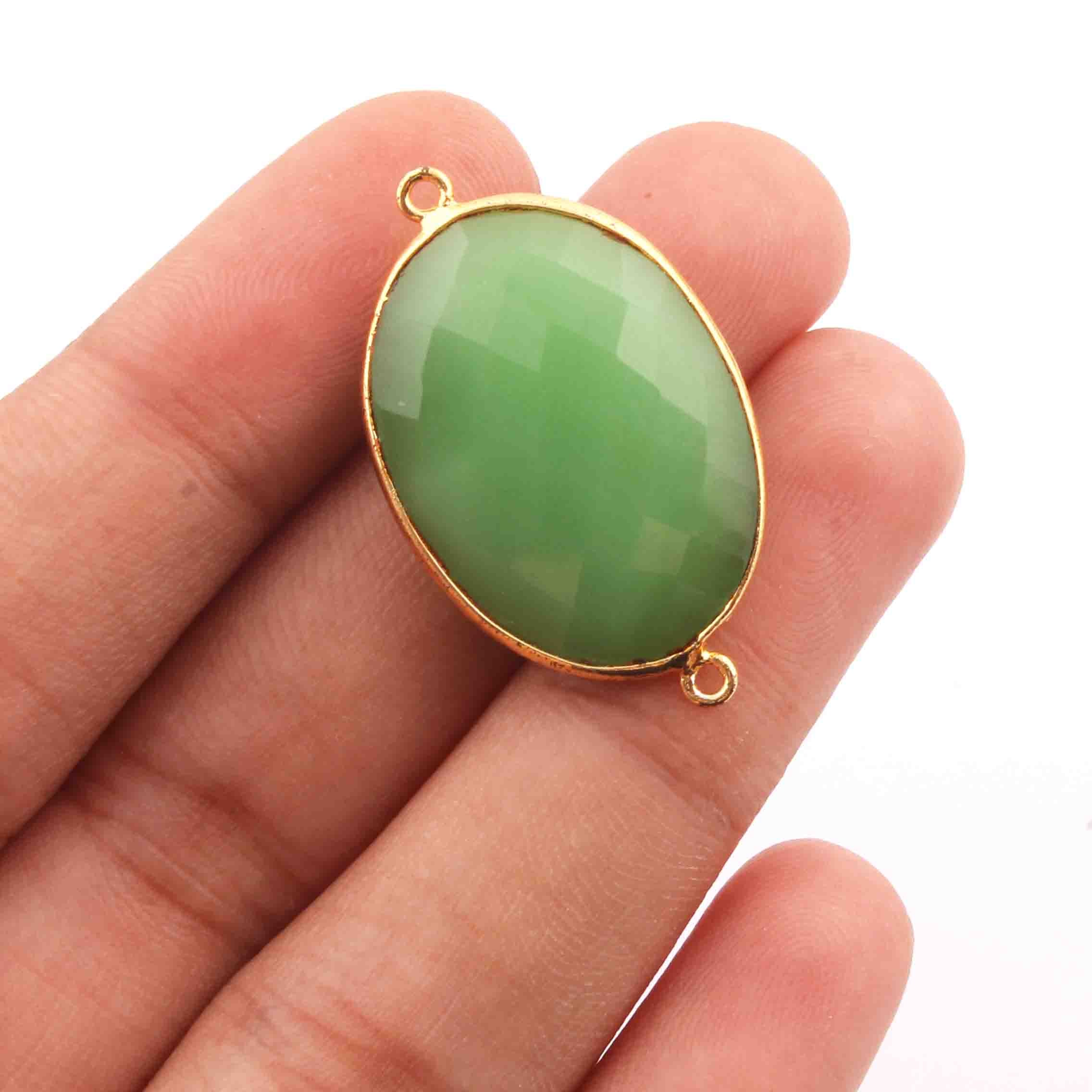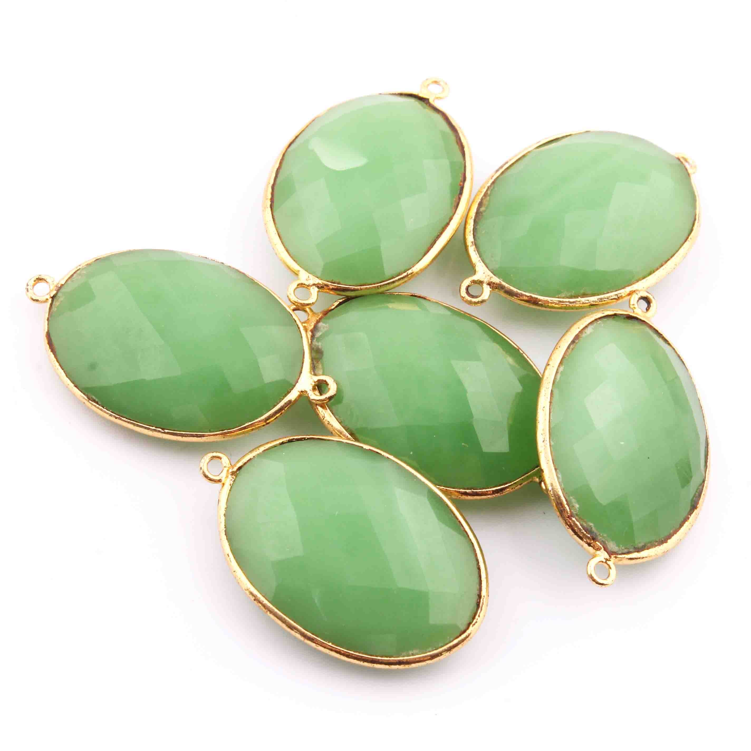6 Pcs Green Chalcedony Oval Shape 24k Gold Plated Connecter& Pendant,- 32mmx19mm PC330