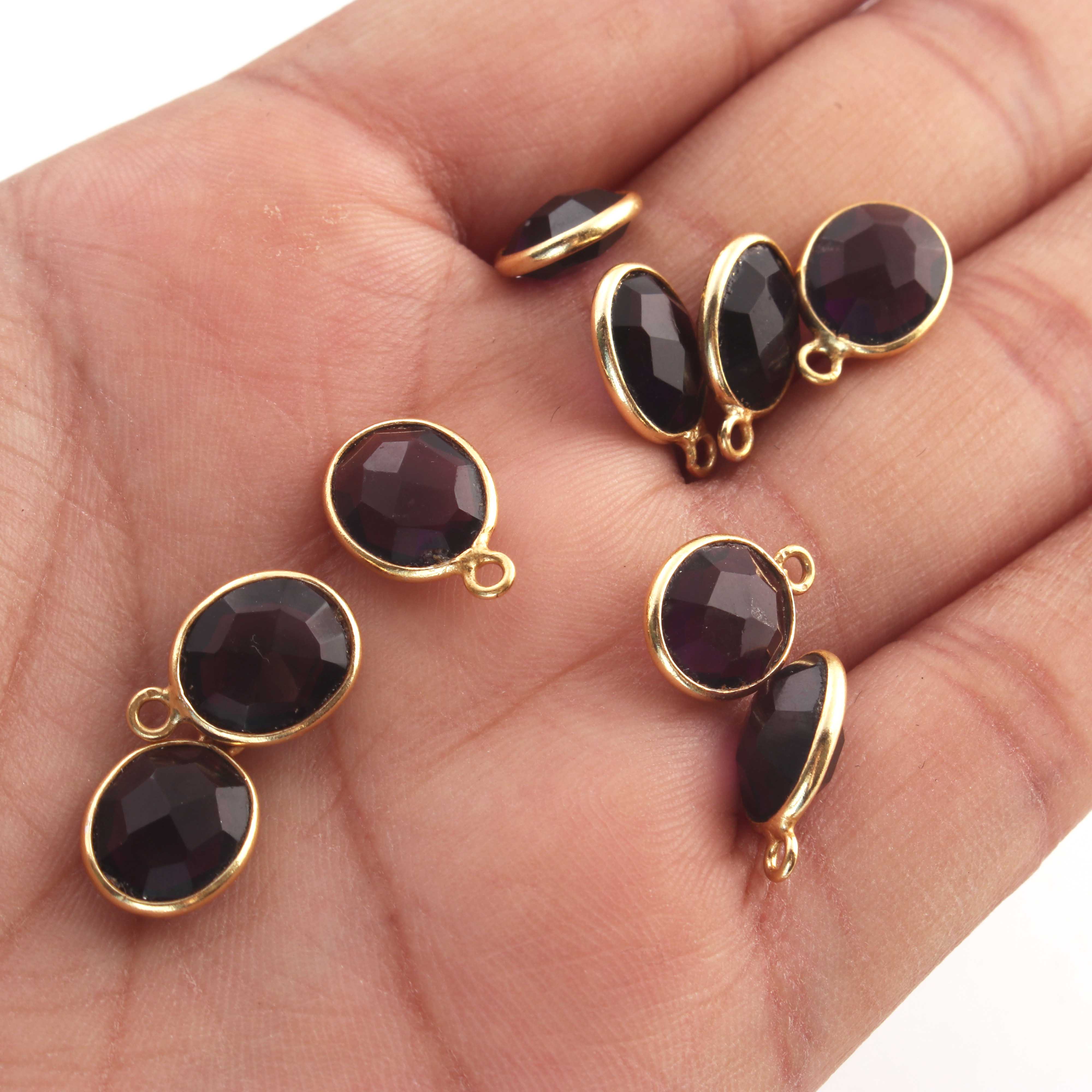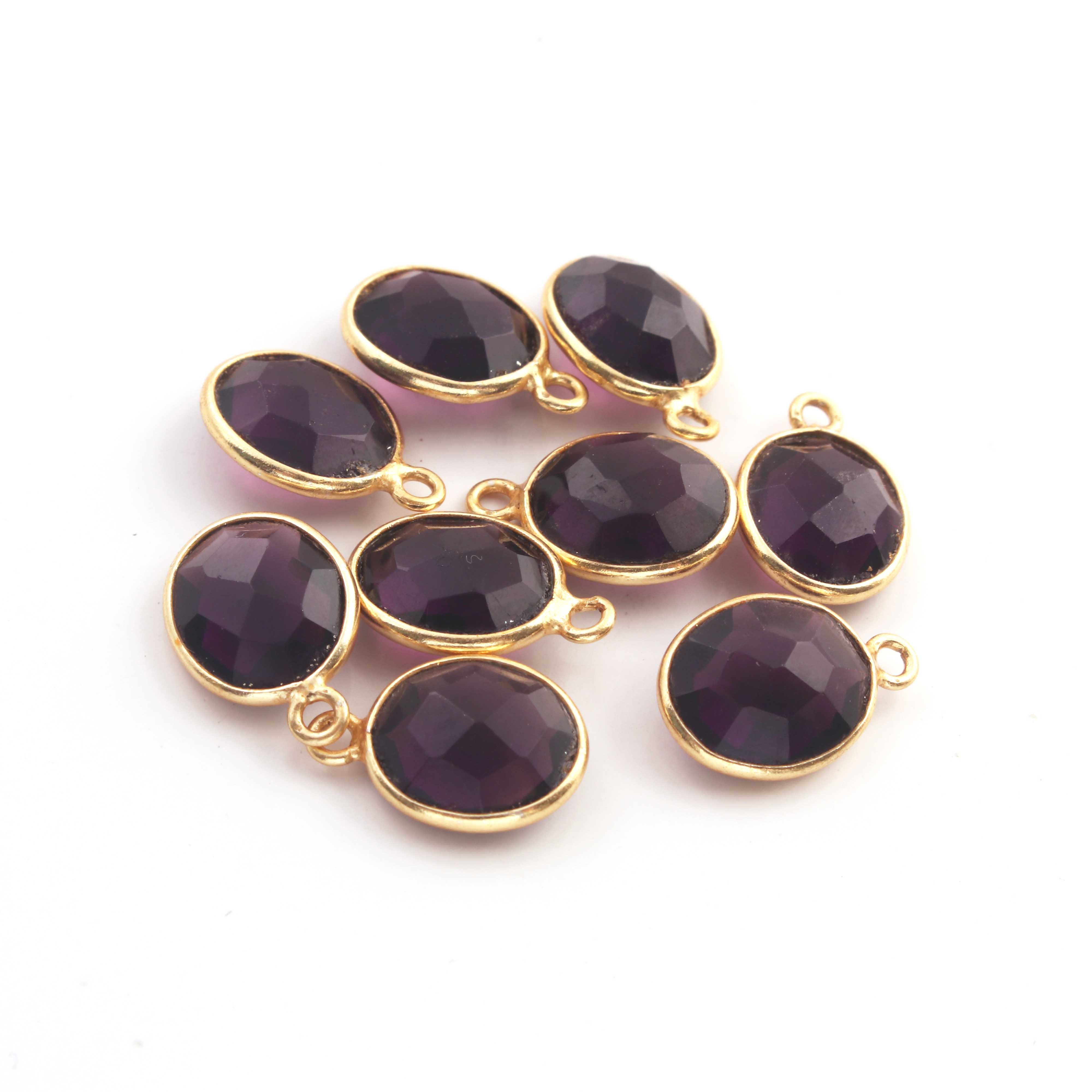 9 Pcs Amethyst Birth Stone Faceted 925 Sterling Vermeil Oval Shape Pendant , 14mmx10mm SS168
