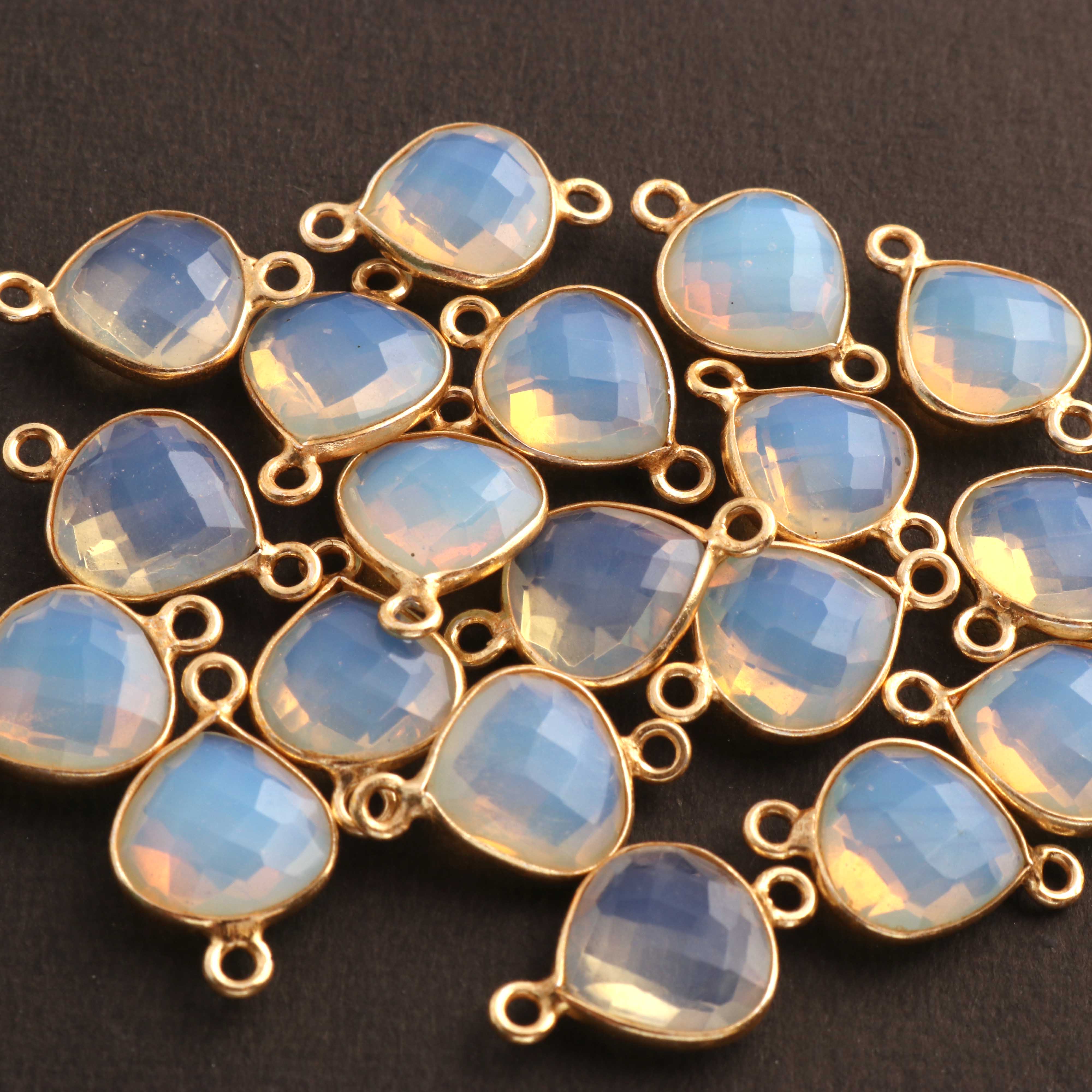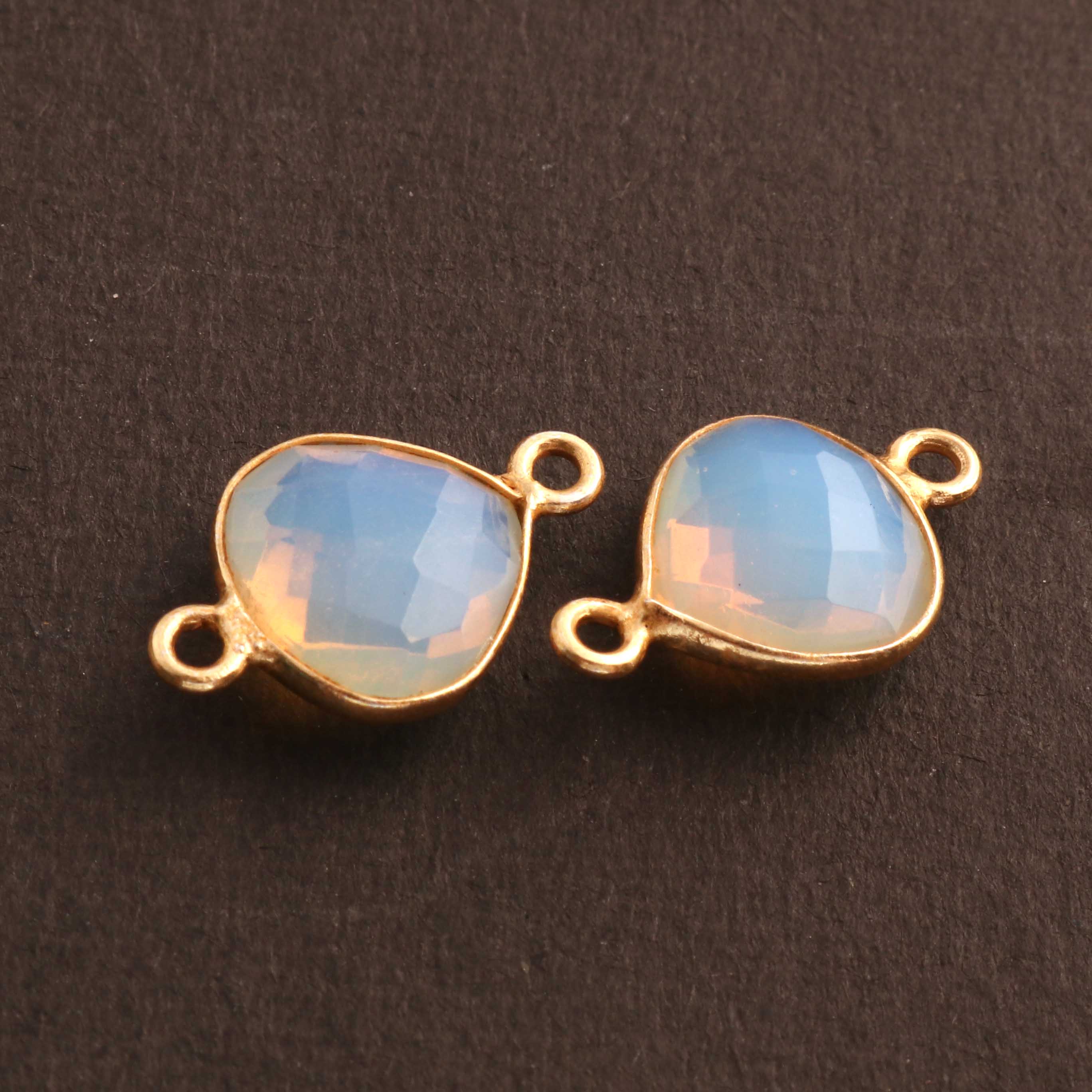 9 Pcs Ice Quartz 925 Sterling Vermeil Gemstone Faceted Heart Shape Double Bail Connector -17mmx11mm  SS812
