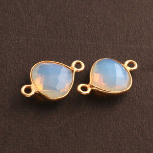 9 Pcs Ice Quartz 925 Sterling Vermeil Gemstone Faceted Heart Shape Double Bail Connector -17mmx11mm SS812