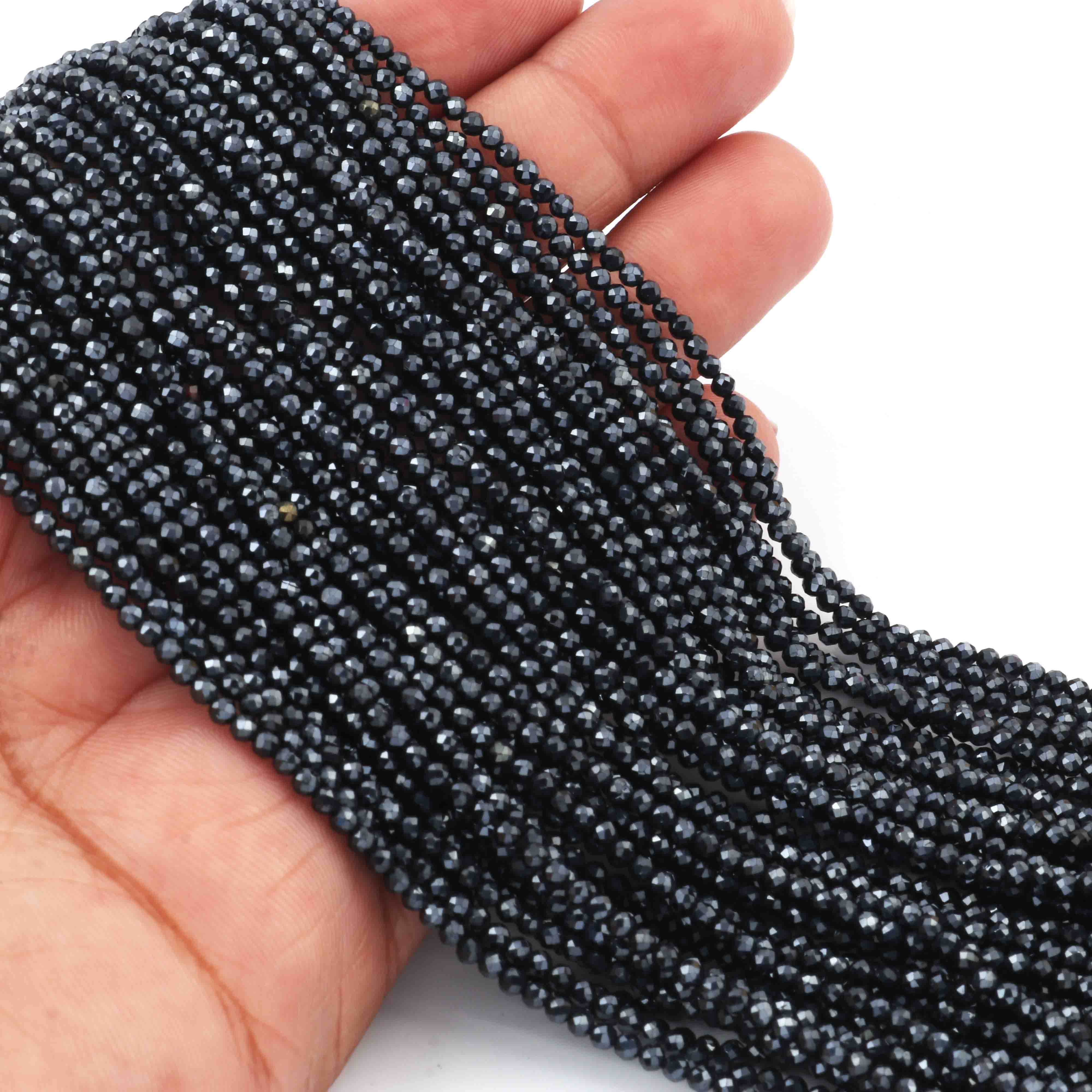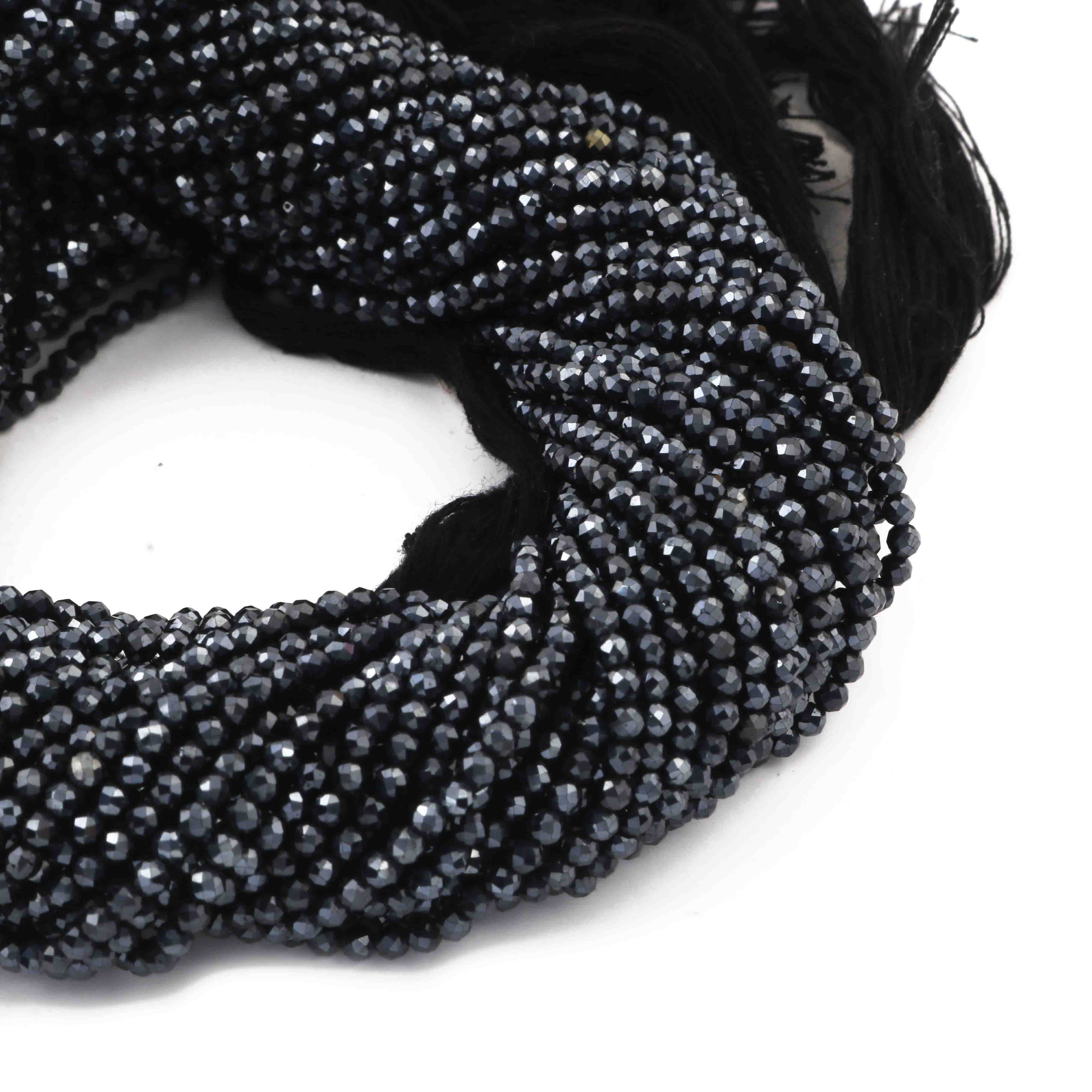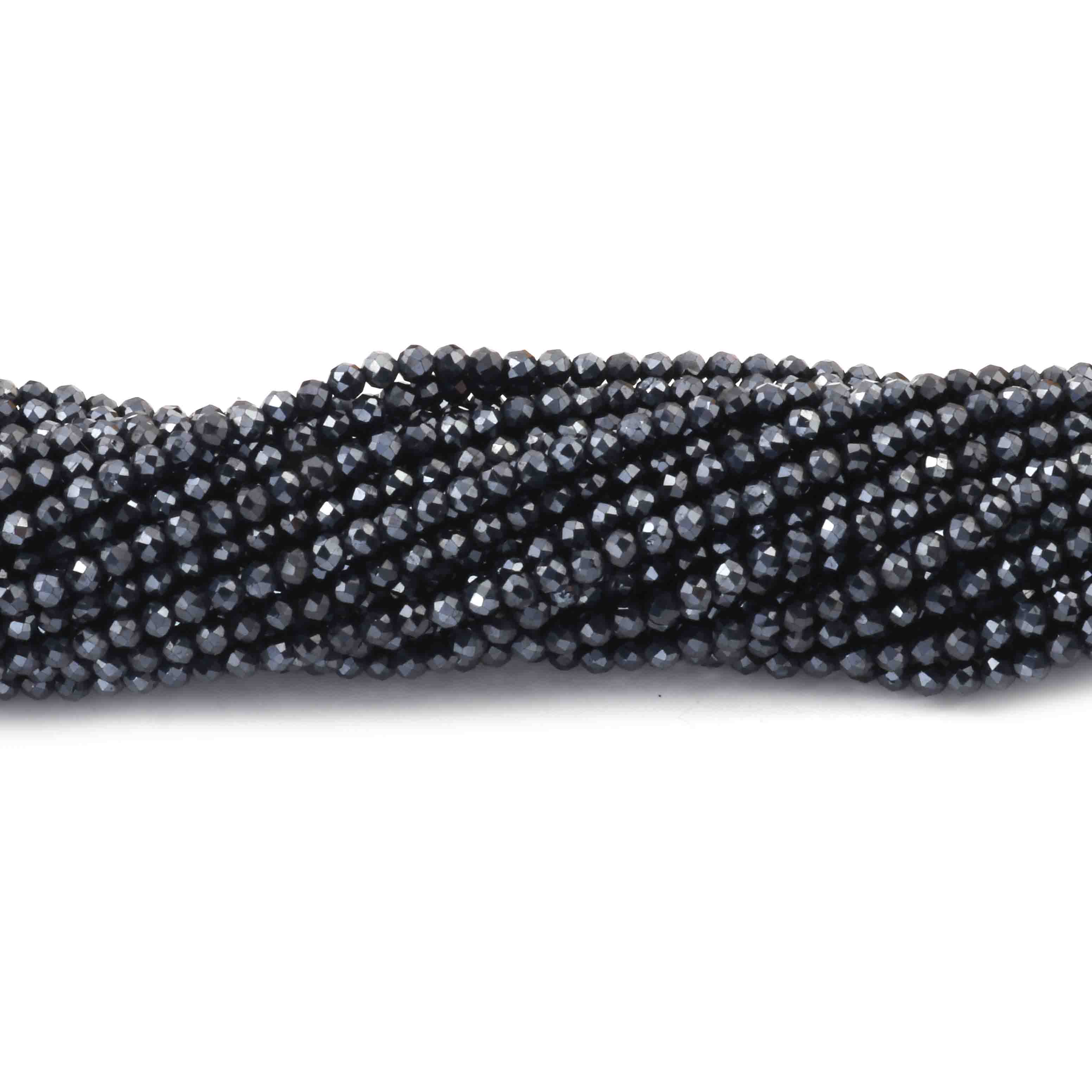 AAA Black Spinel Silver Coated Micro Faceted 2mm 13 inch Beads - RB419