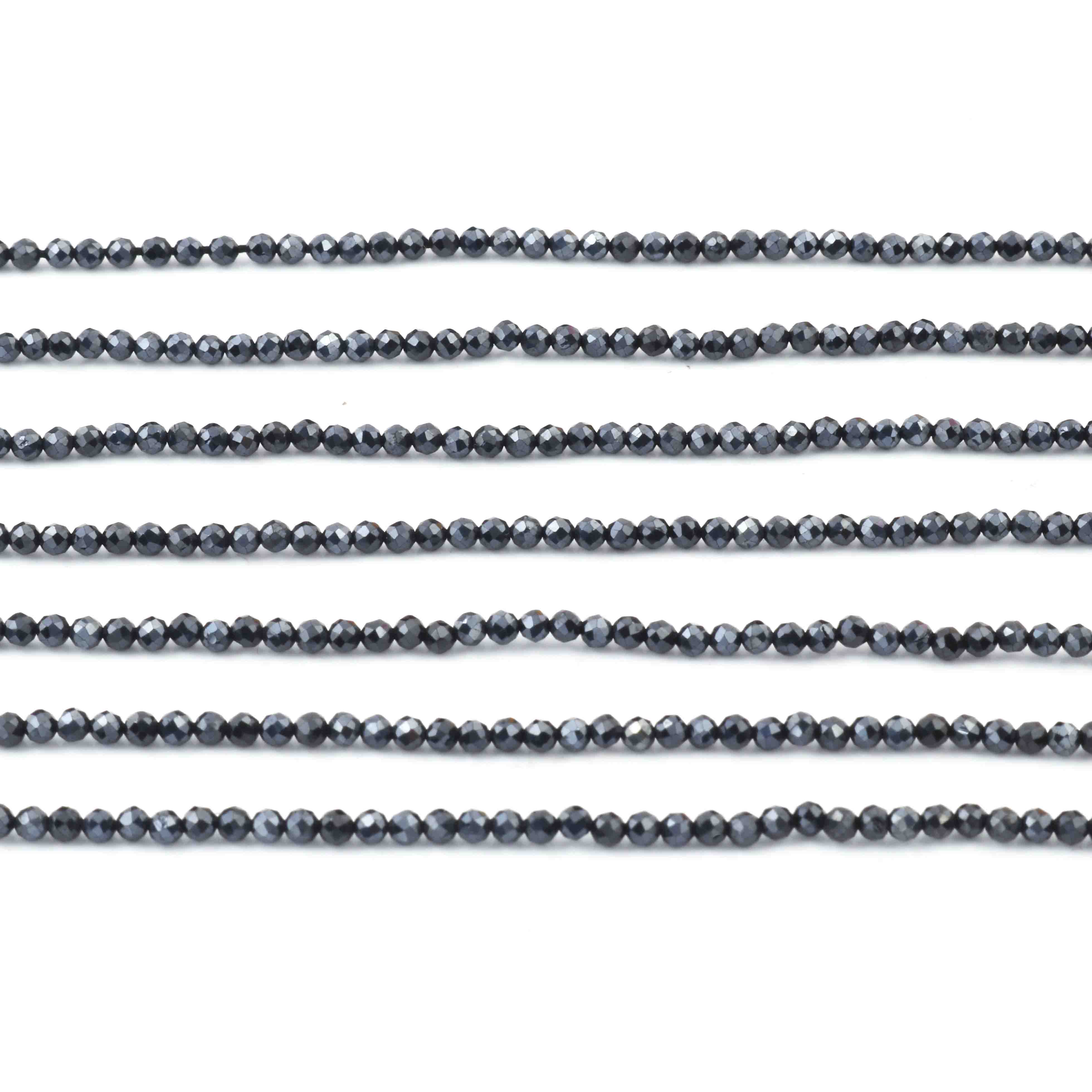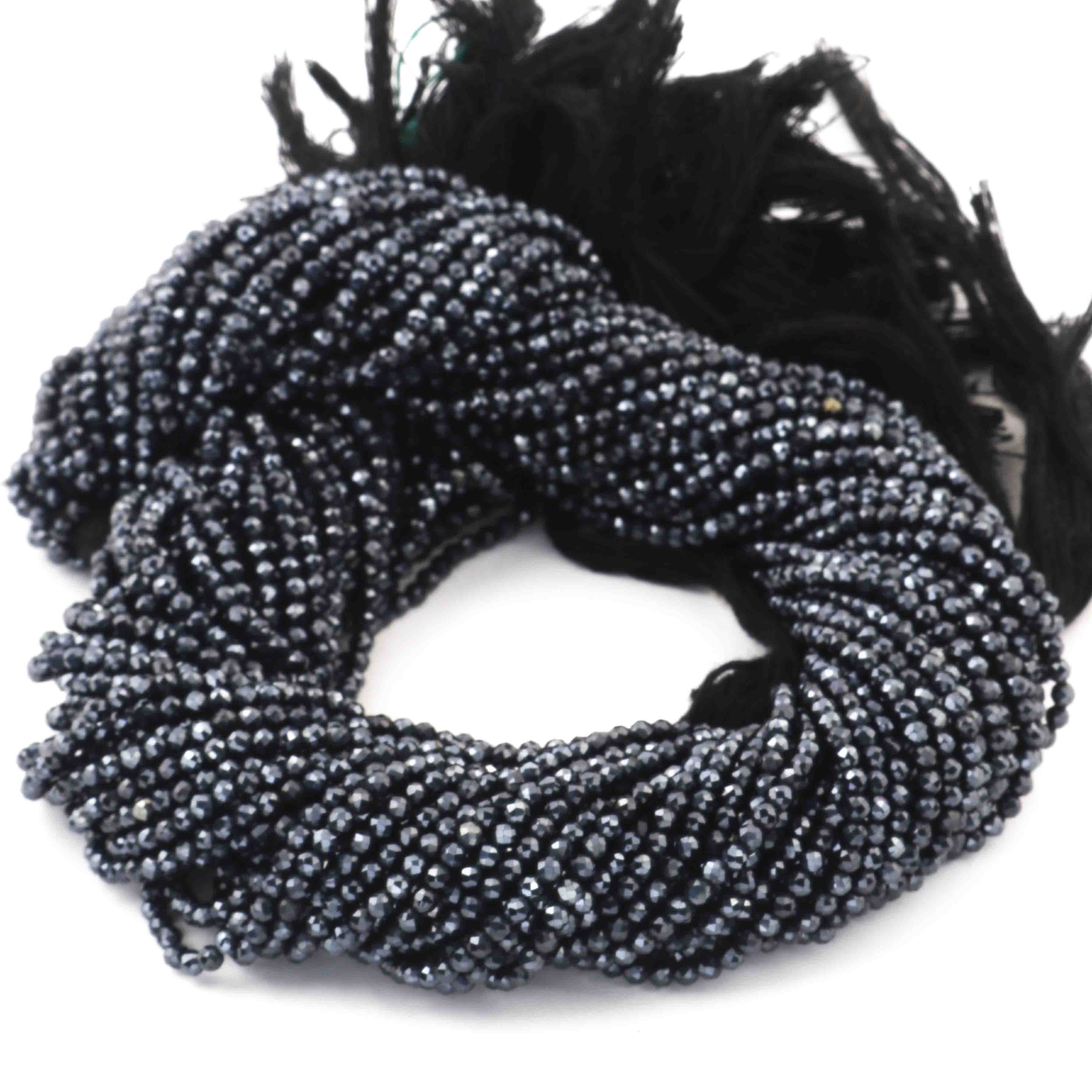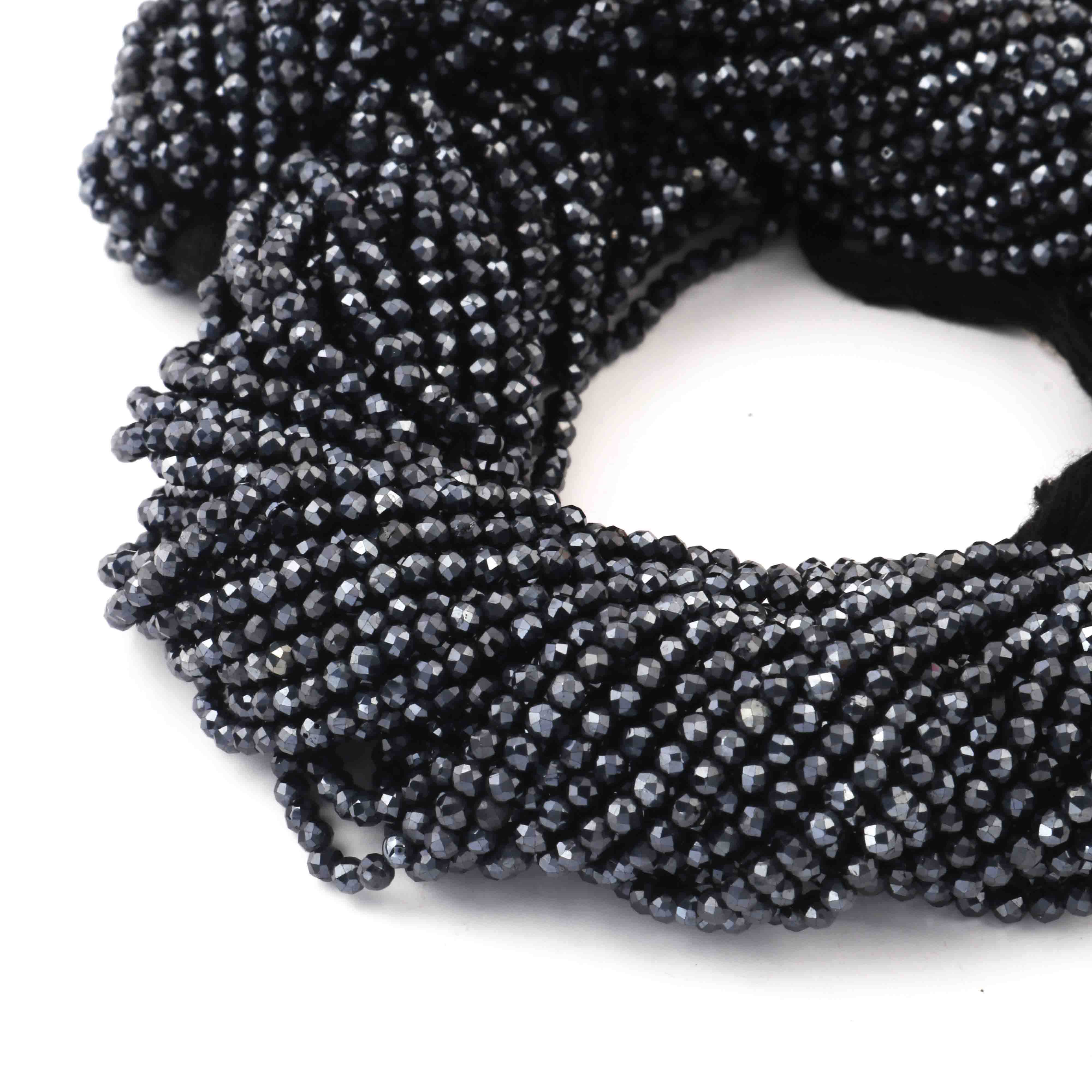 AAA Black Spinel Silver Coated Micro Faceted 2mm 13 inch Beads - RB419