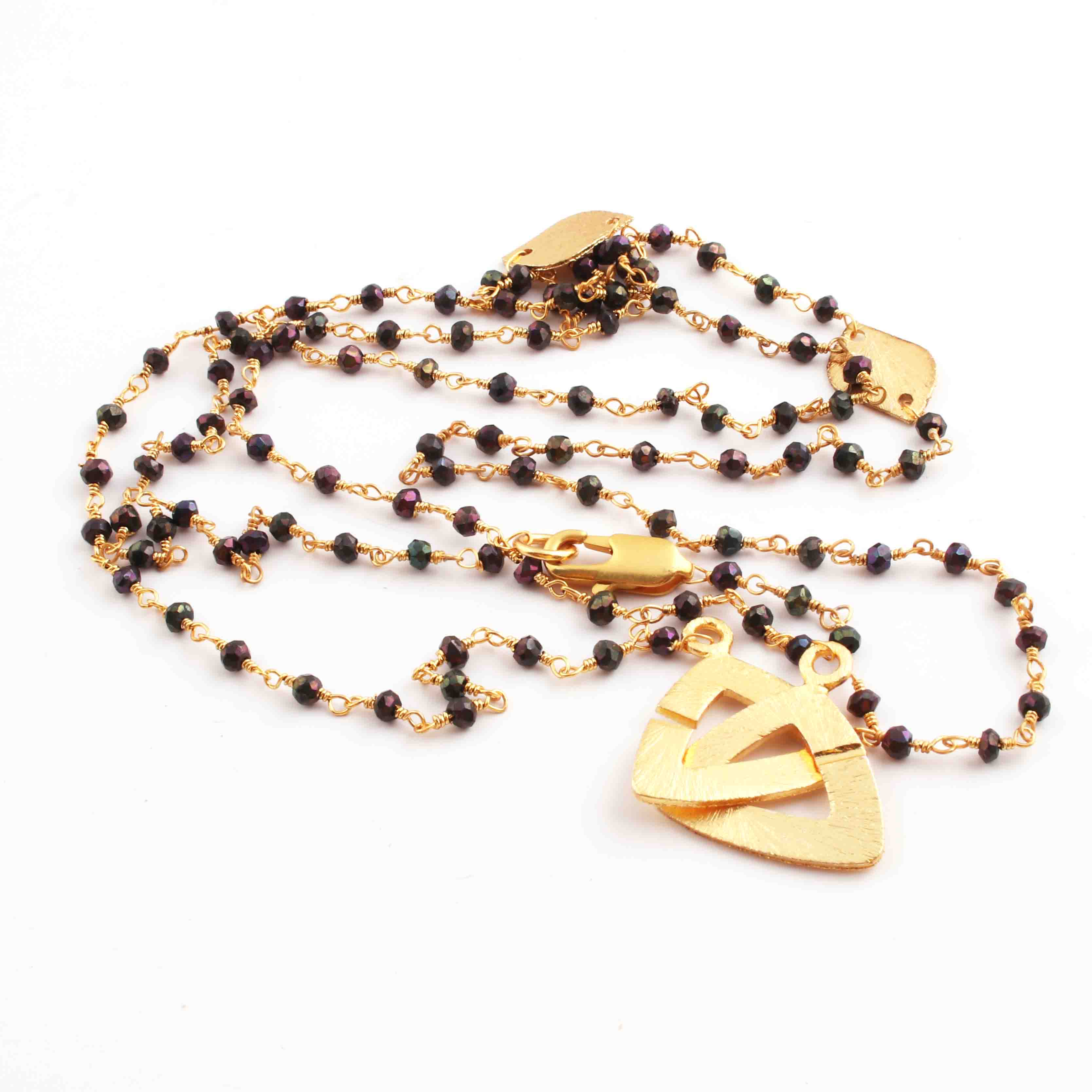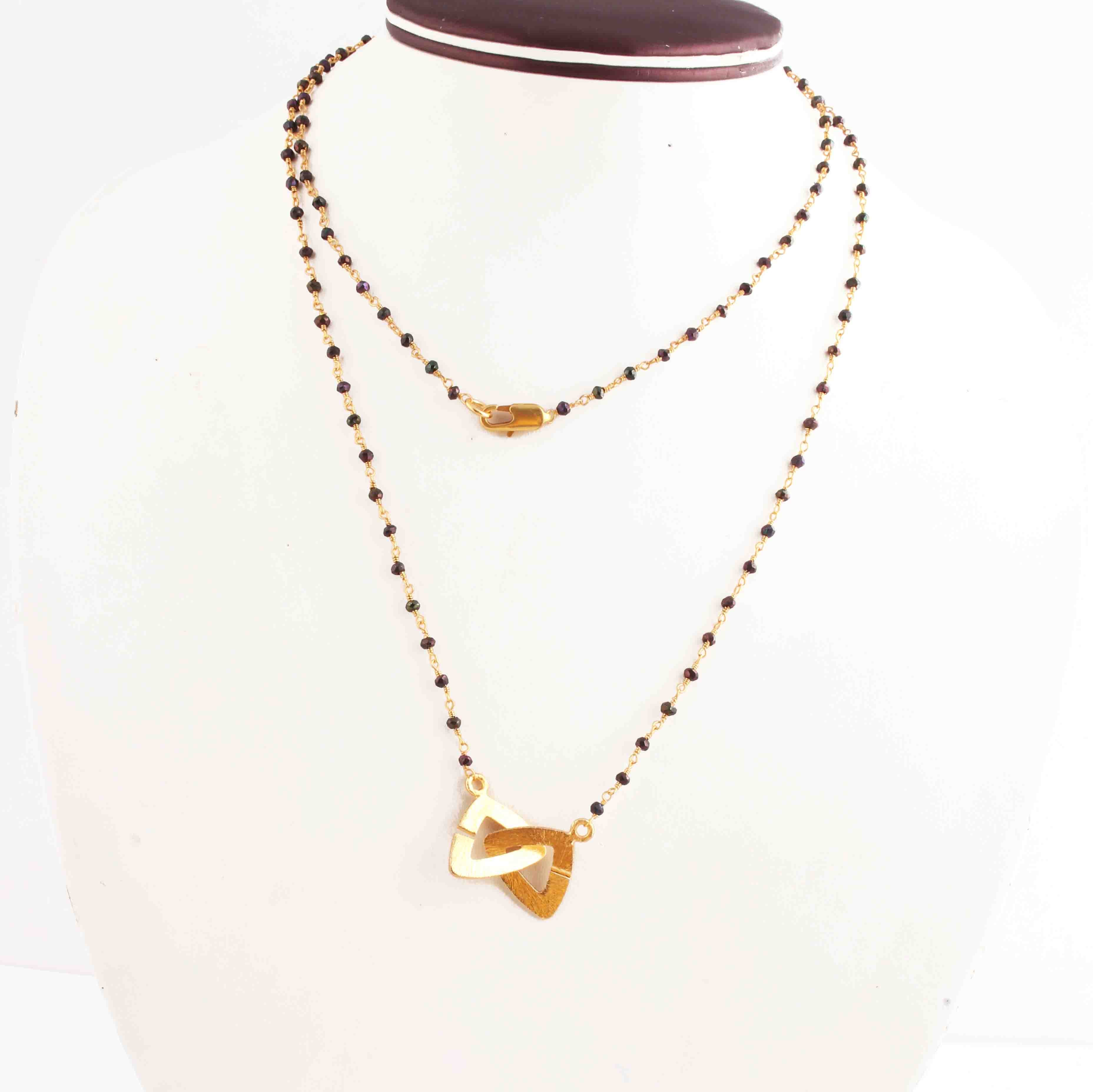 Black Spinal Brown Coated Chain Necklace - Faceted Sparkly 24K Gold Plated Necklace ,Tiny Beaded 3mm, Necklace - 32"Long GPC1435