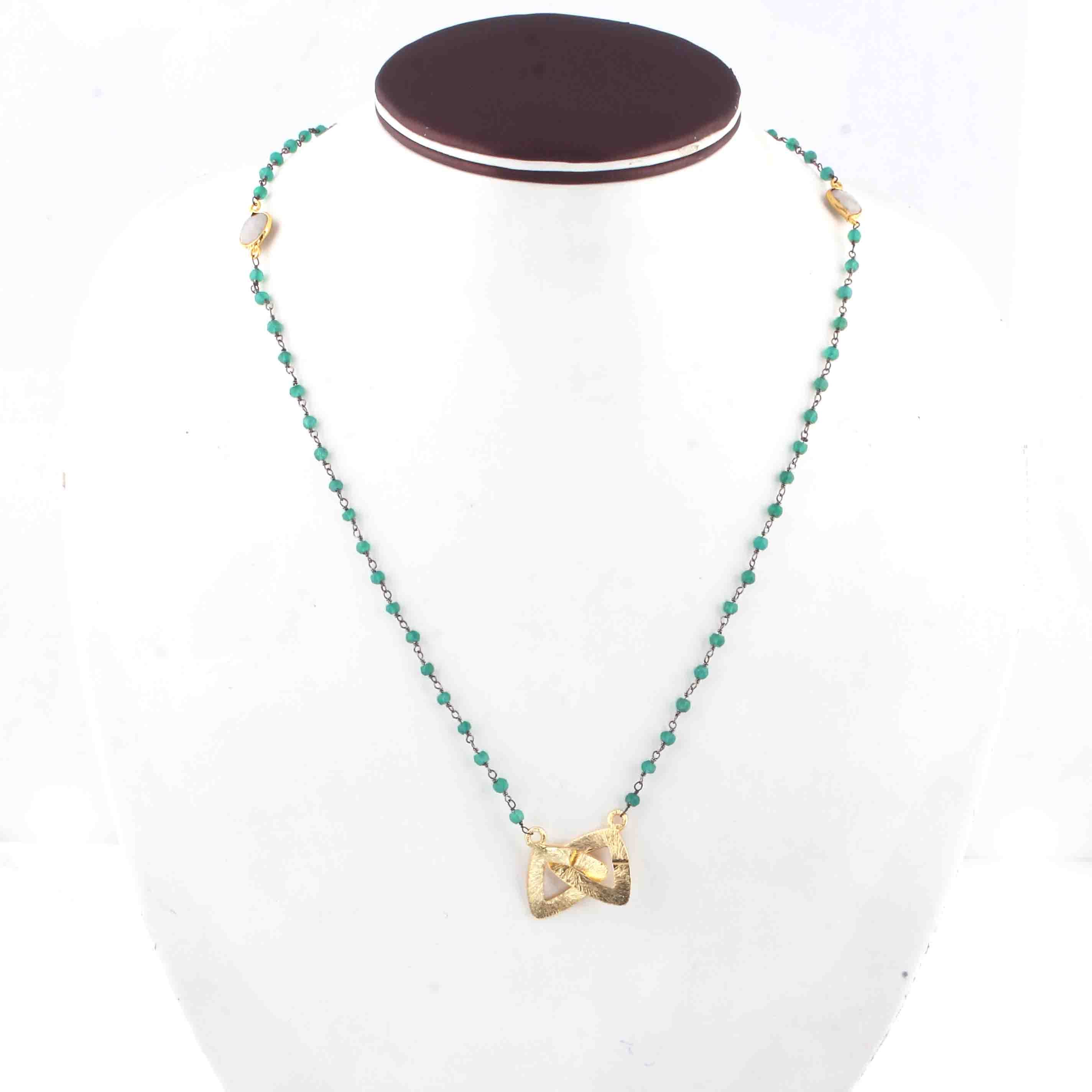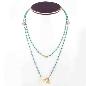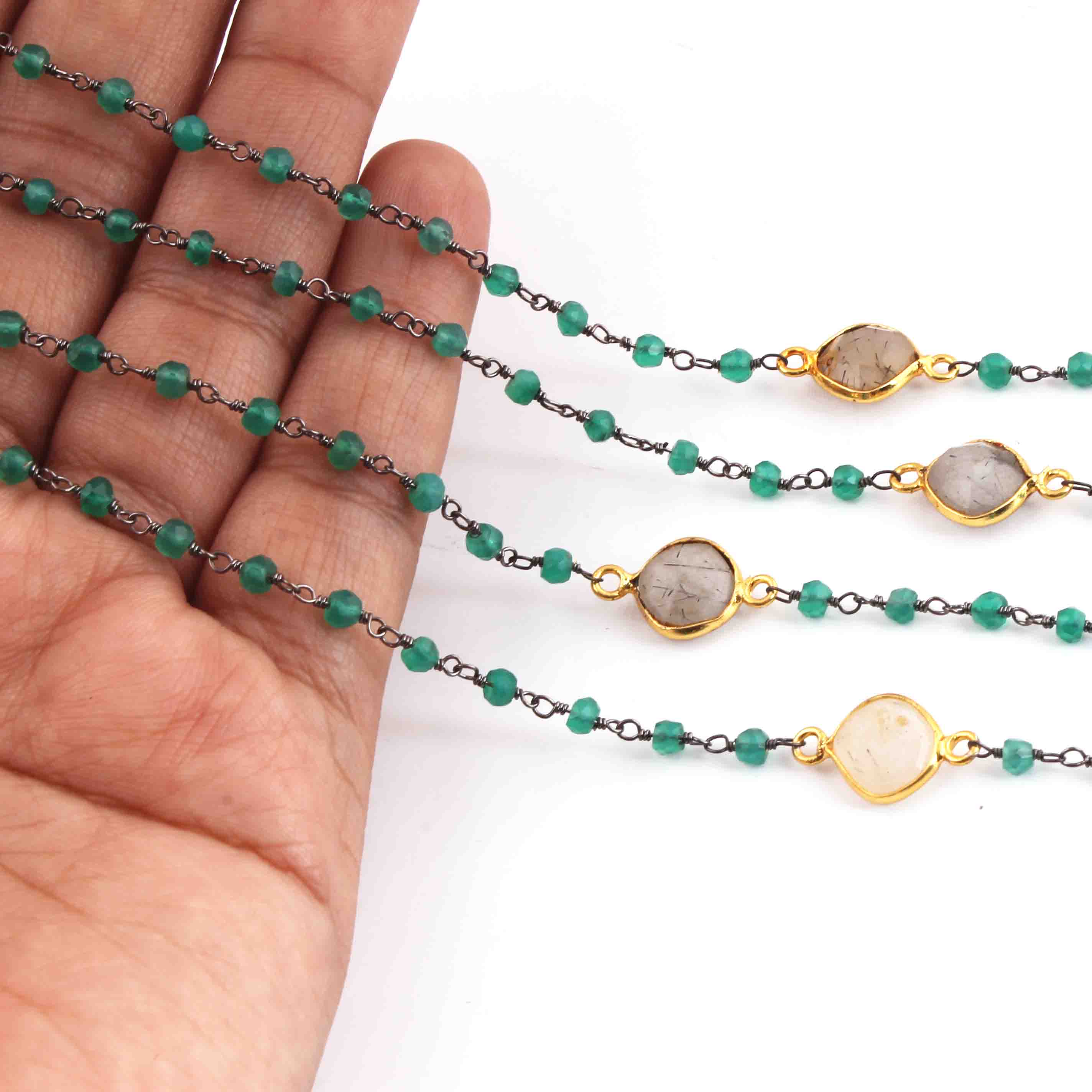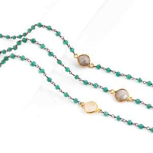 Green Onyx With Black Rutile Chain Necklace - Faceted Sparkly Necklace ,Tiny Beaded 2mm, Necklace -40"Long GPC1362