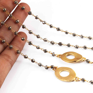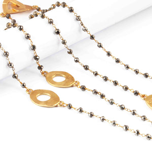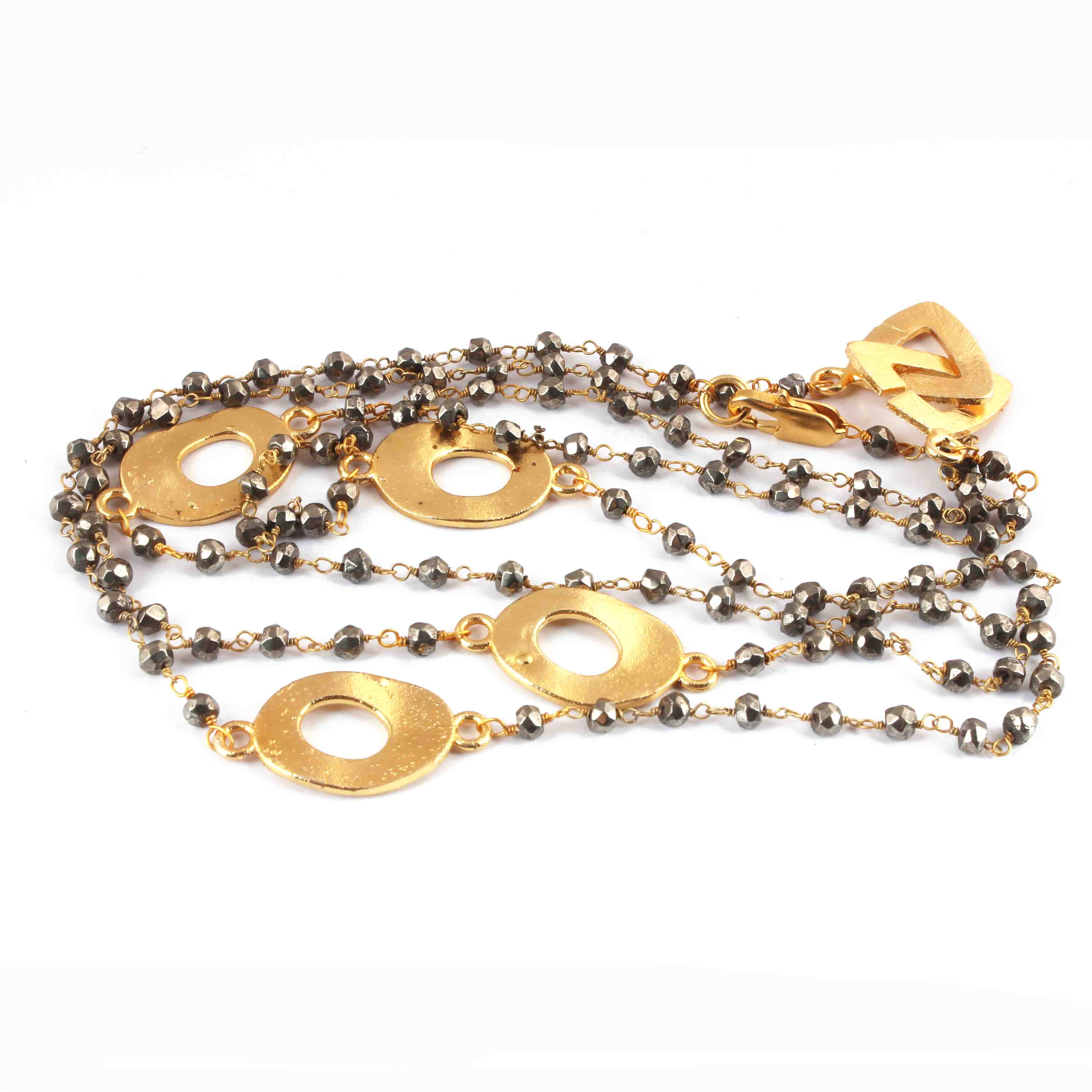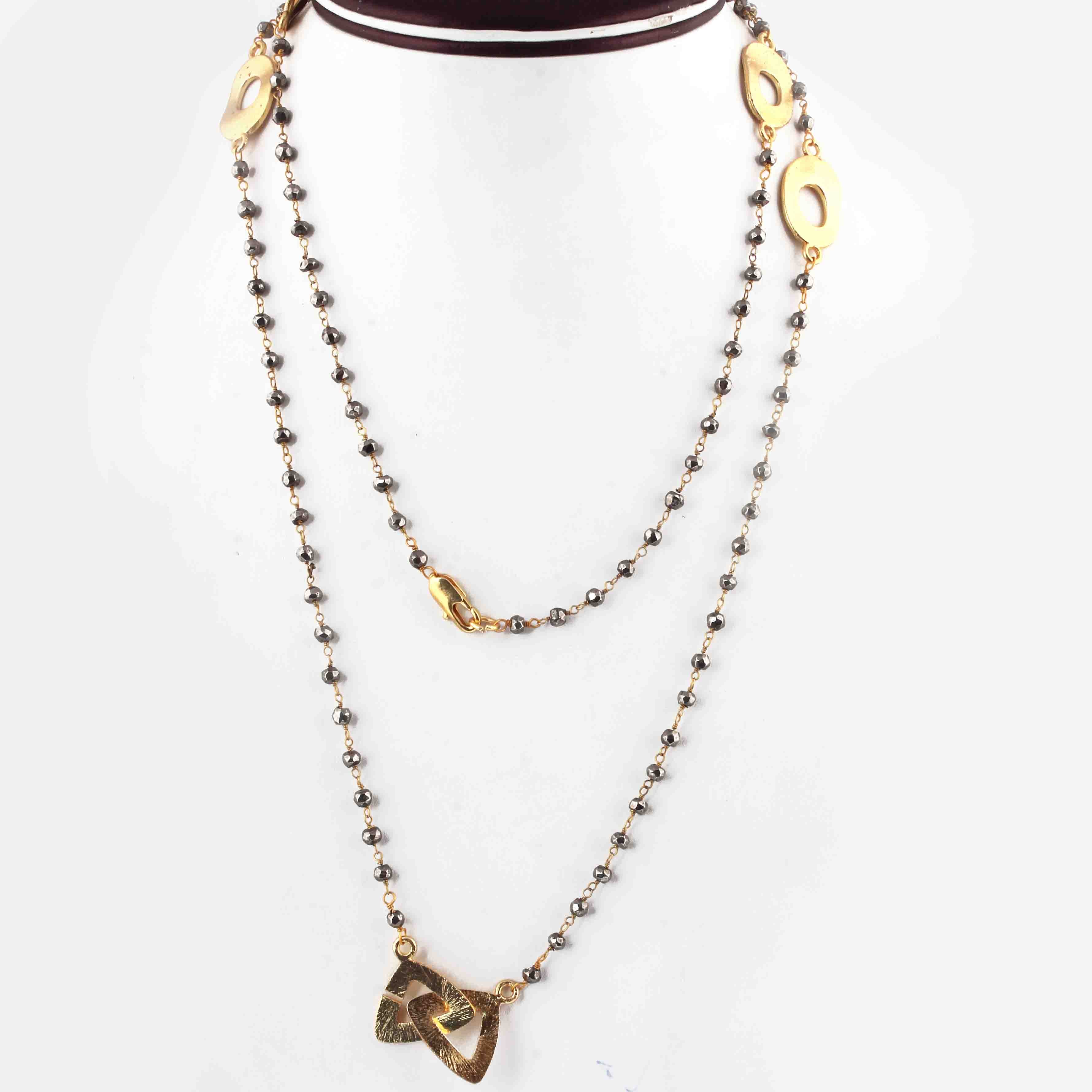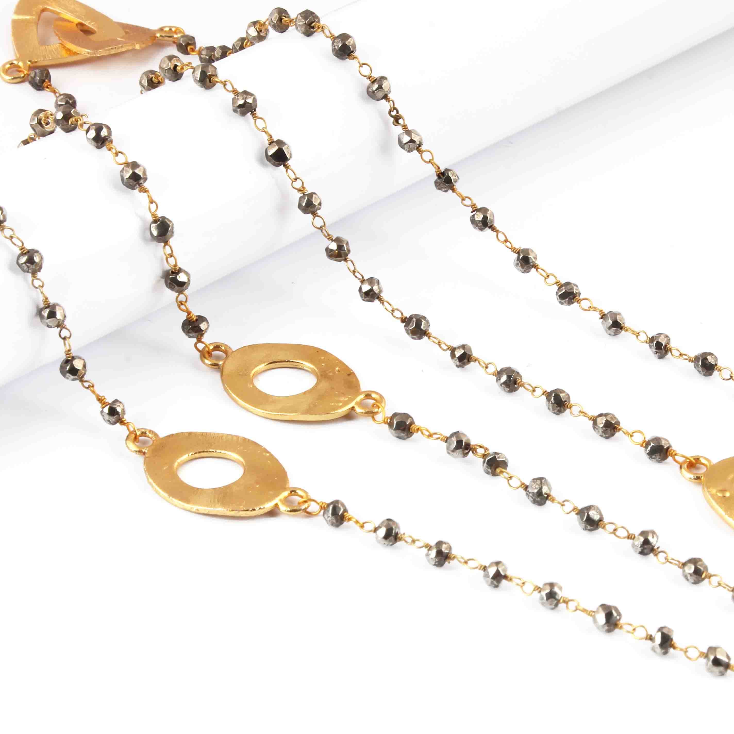 Natural Pyrite Chain Necklace - Faceted Sparkly Necklace ,Tiny Beaded 2mm, Necklace -39"Long GPC1347