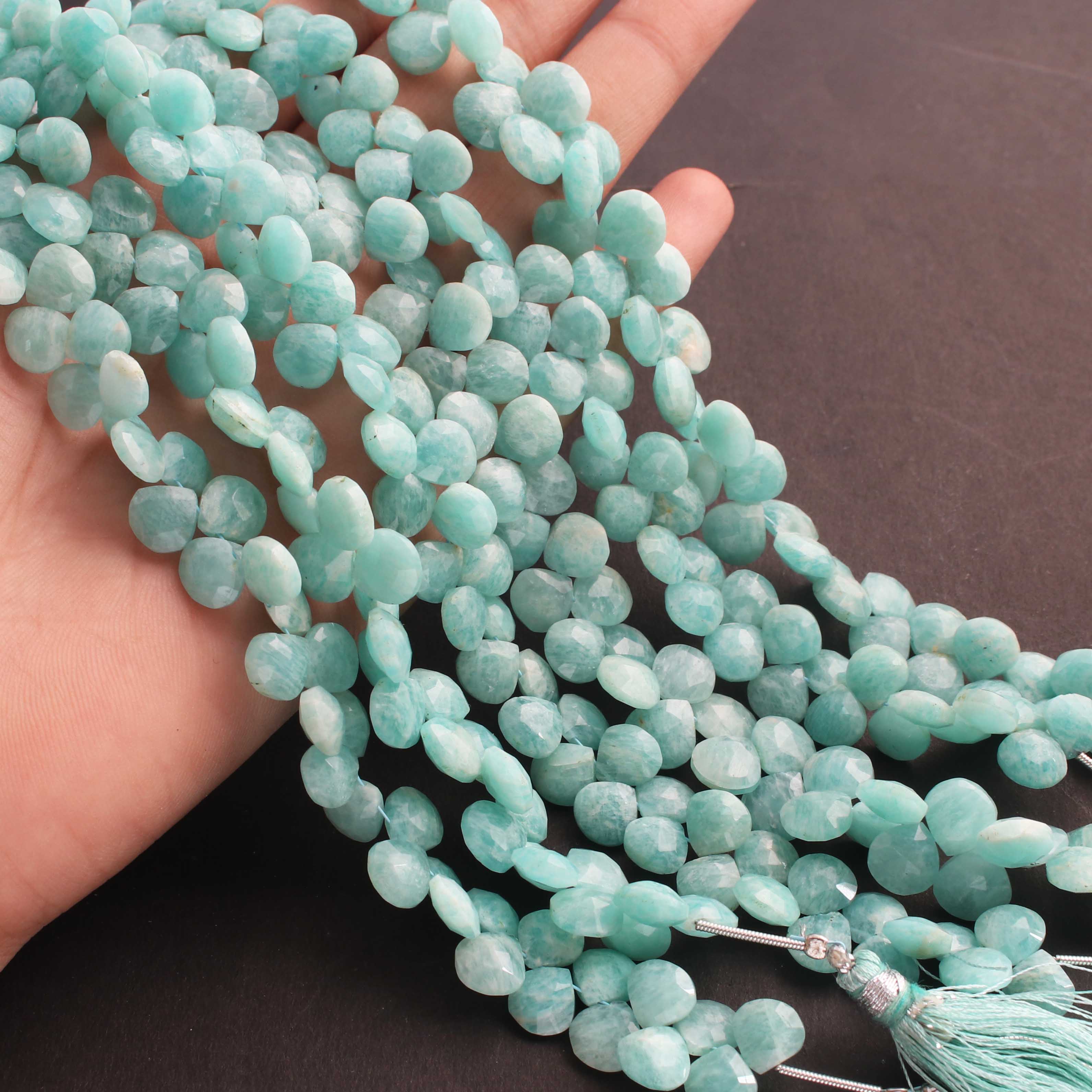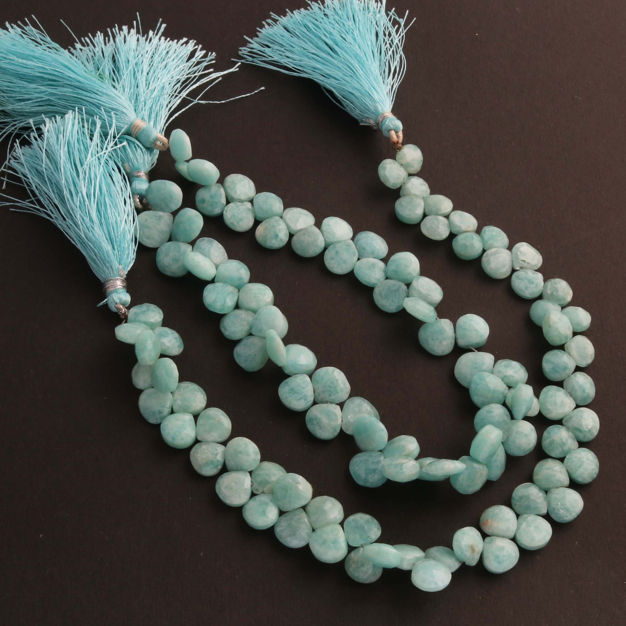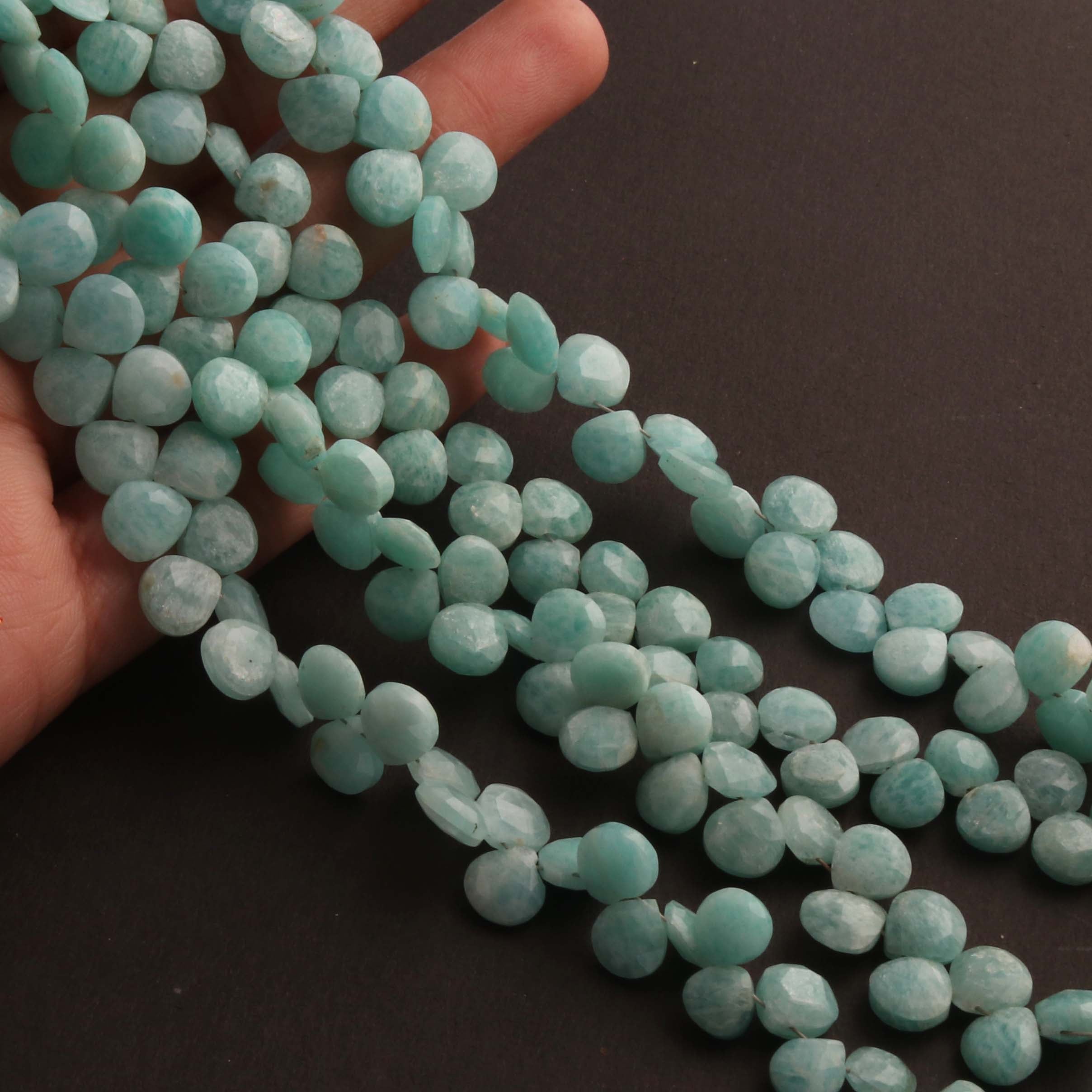 1 Long Strand Amazonite Faceted Briolettes - Heart Shape Briolettes 5mm-9mm 9 Inches BR02413