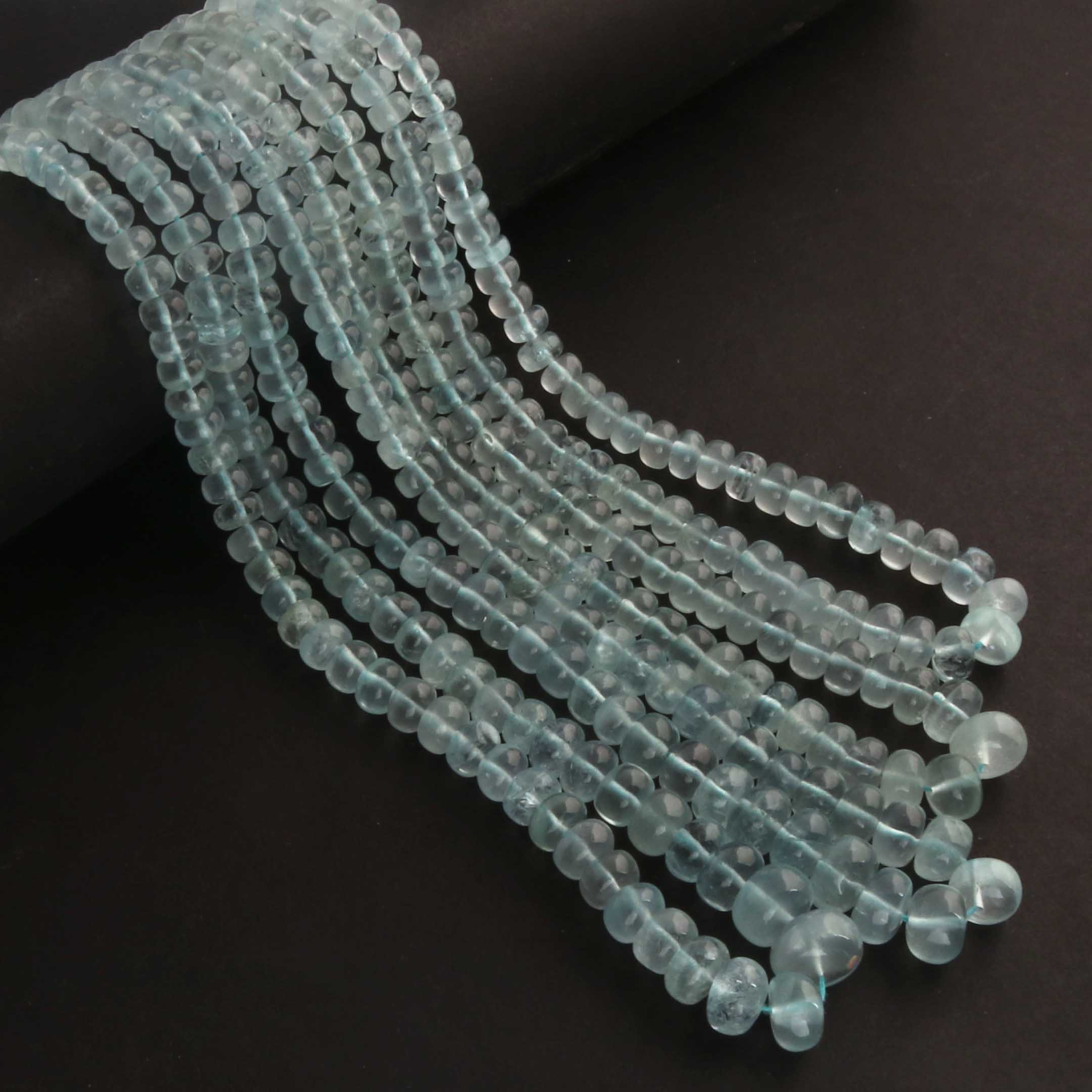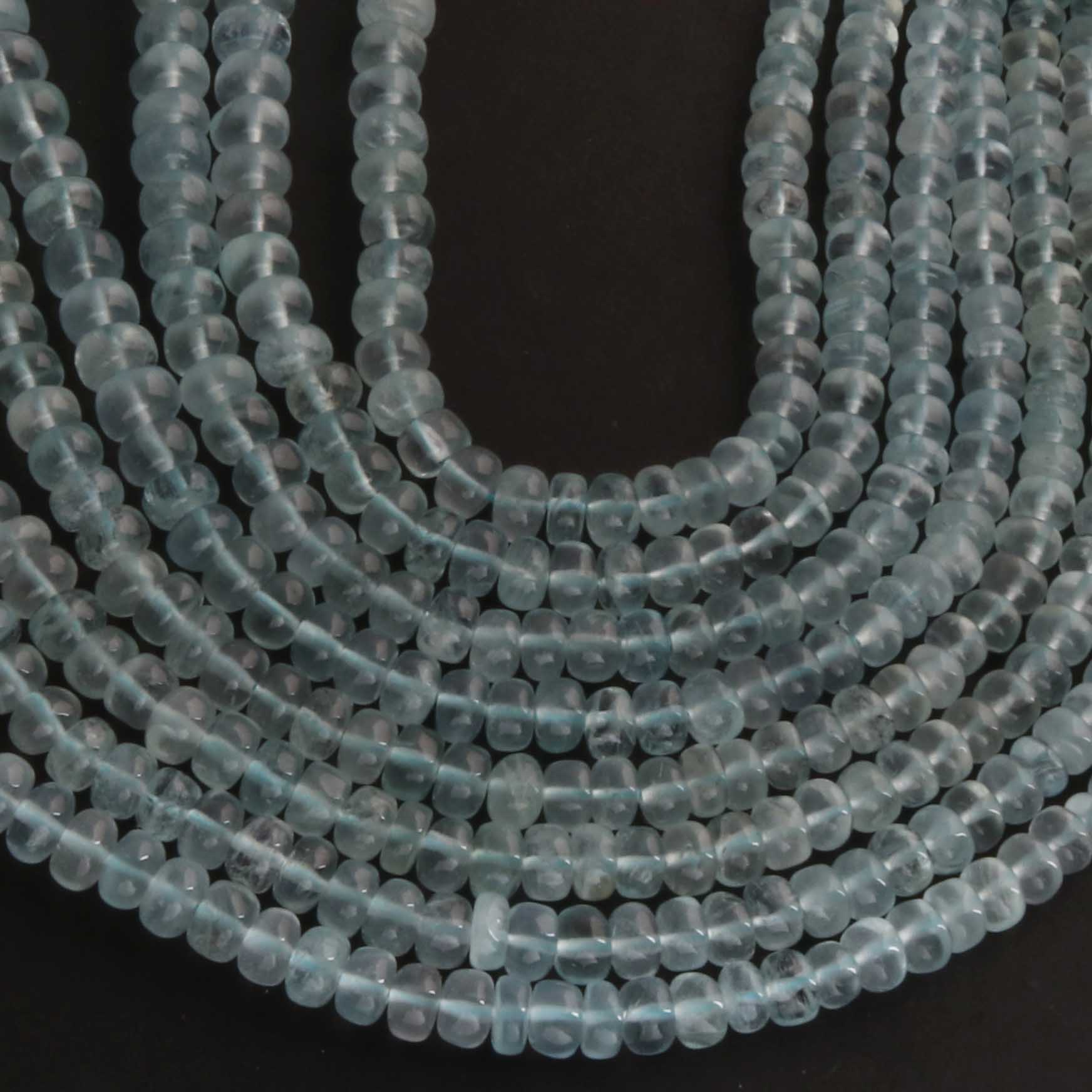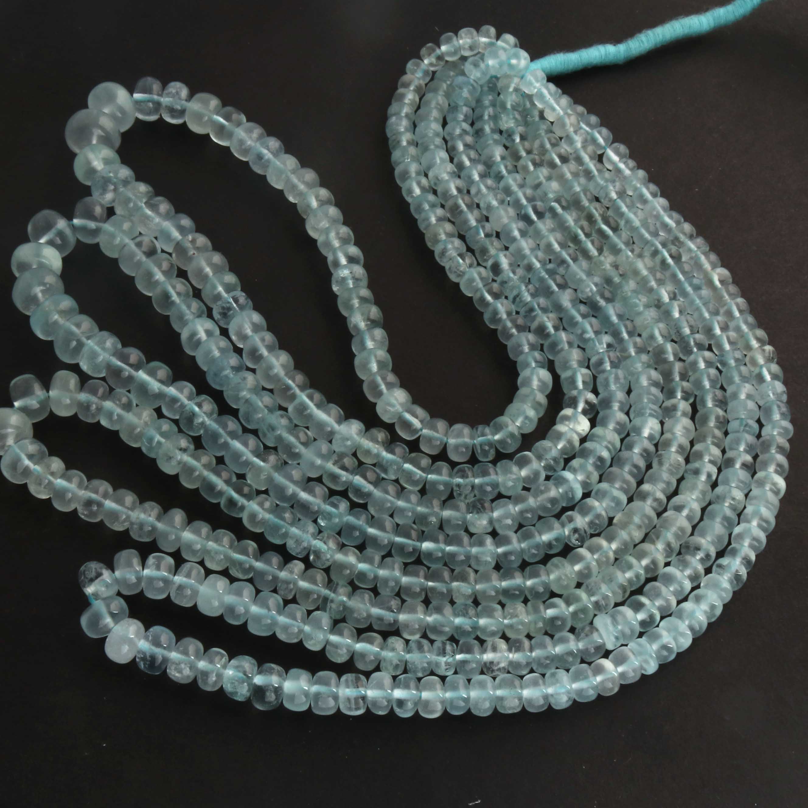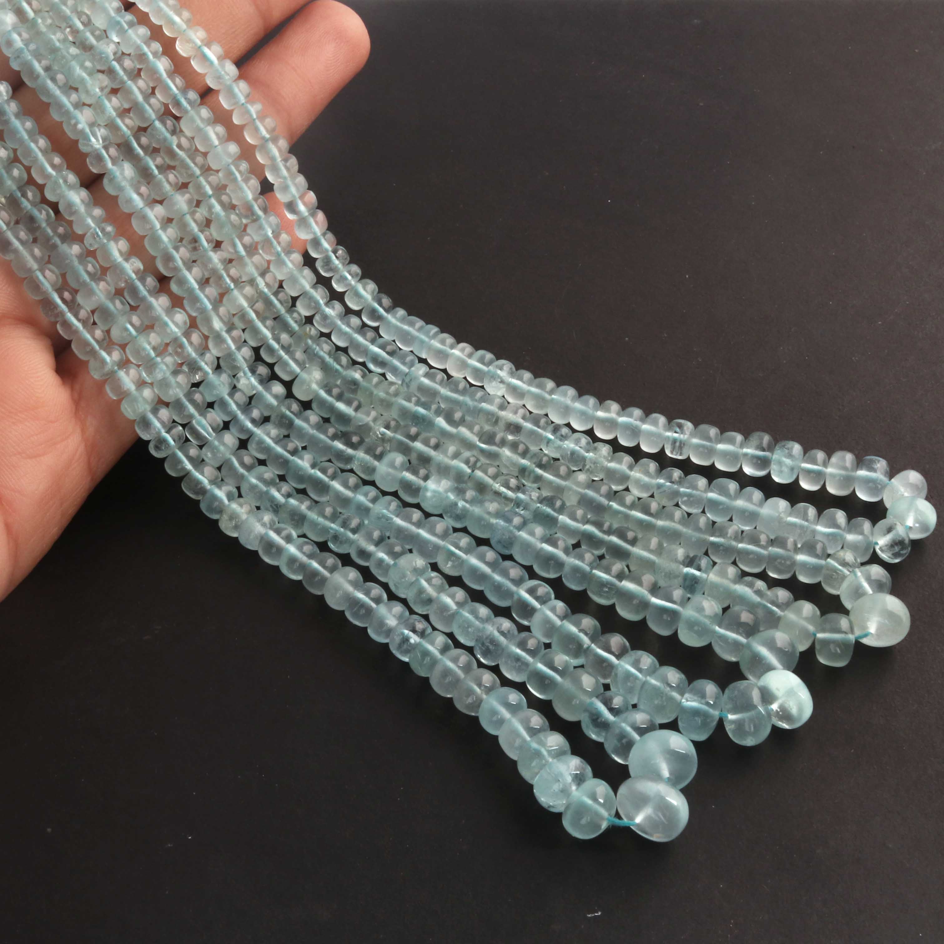 1 Long Strand Aquamarine Smooth Rondelles -Semi Precious Gemstone Aquamarine Rondelles Beads- 5mm-9mm 16 Inches BR03704