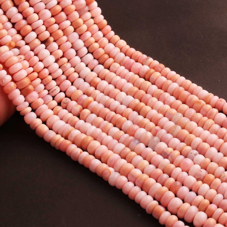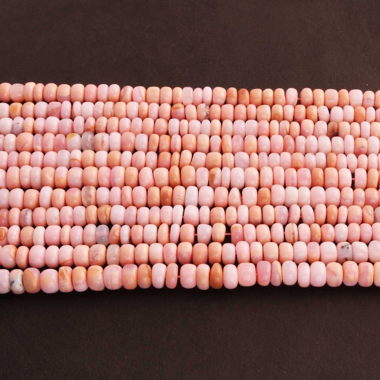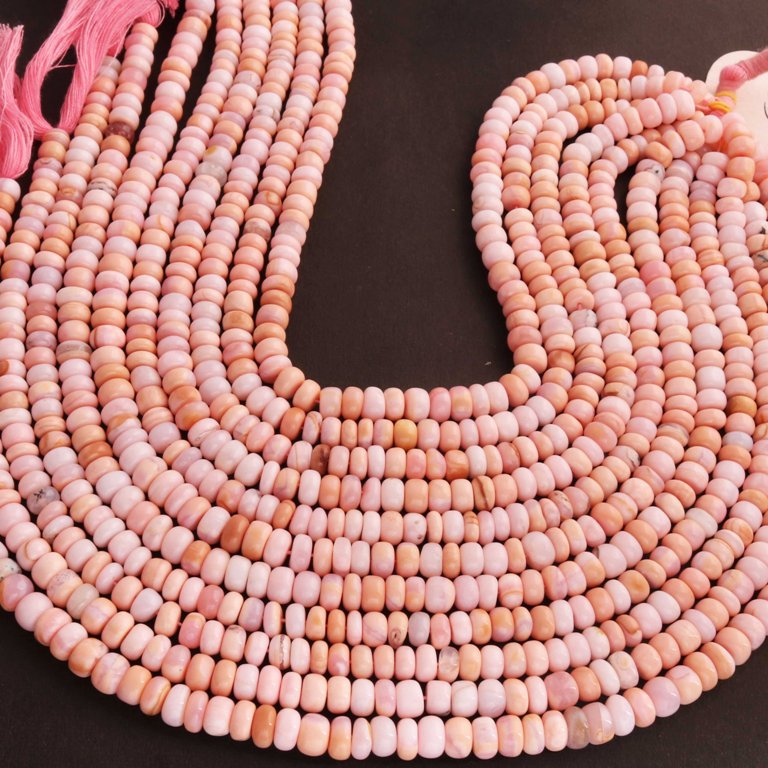 1 Long Strand Beautiful Pink Opal Smooth Roundelles -Semi Precious Gemstone Beads Plain Rondelles Beads- 4mm-7mm -13 Inches BR02851