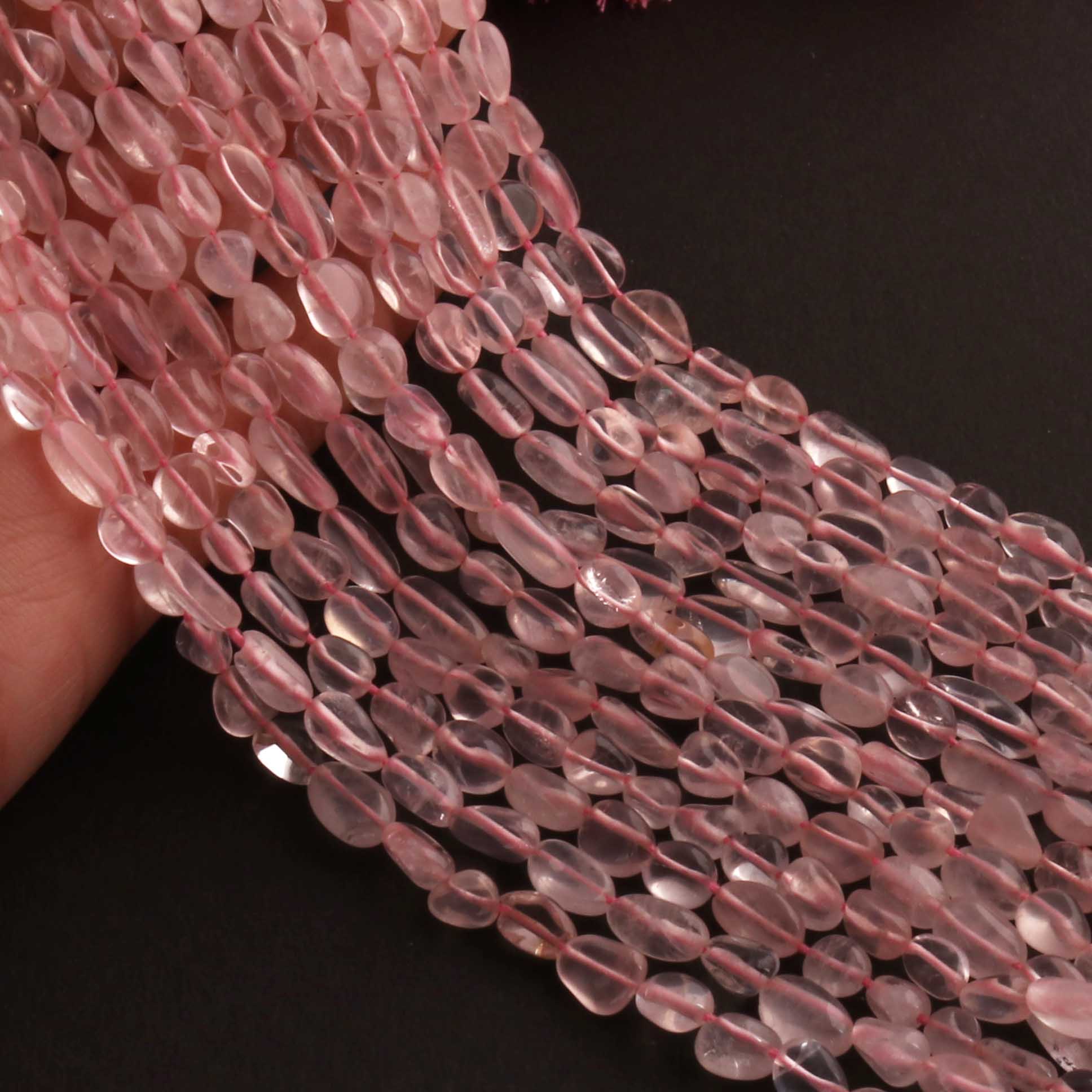1 Long Strand Rose Quartz Smooth Oval Briolettes -Semi Precious Gemstone Smooth Briolettes Beads -5mmx5mm-12mmx6mm - 12 Inches BR01661