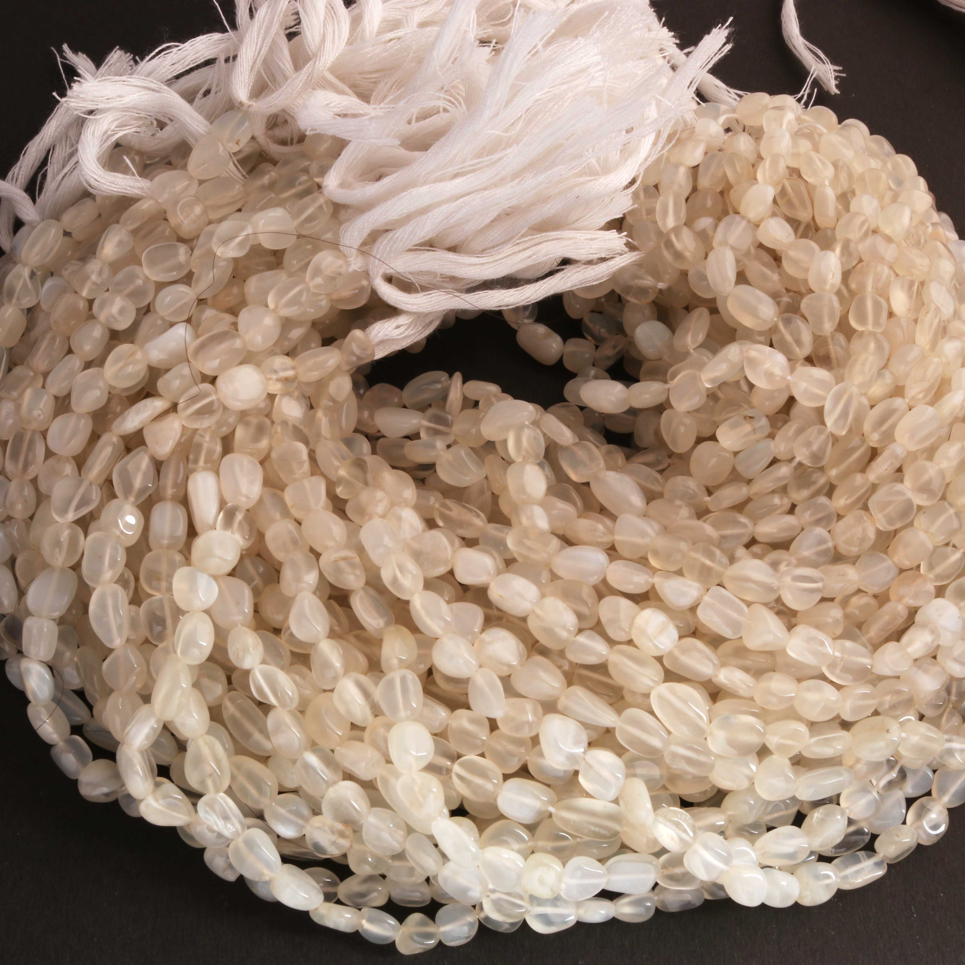 1 Long Strand White Moonstone Smooth Oval Briolettes -Semi Precious Gemstone Smooth Briolettes Beads -6mmx6mm-12mmx5mm - 12 Inches BR01680