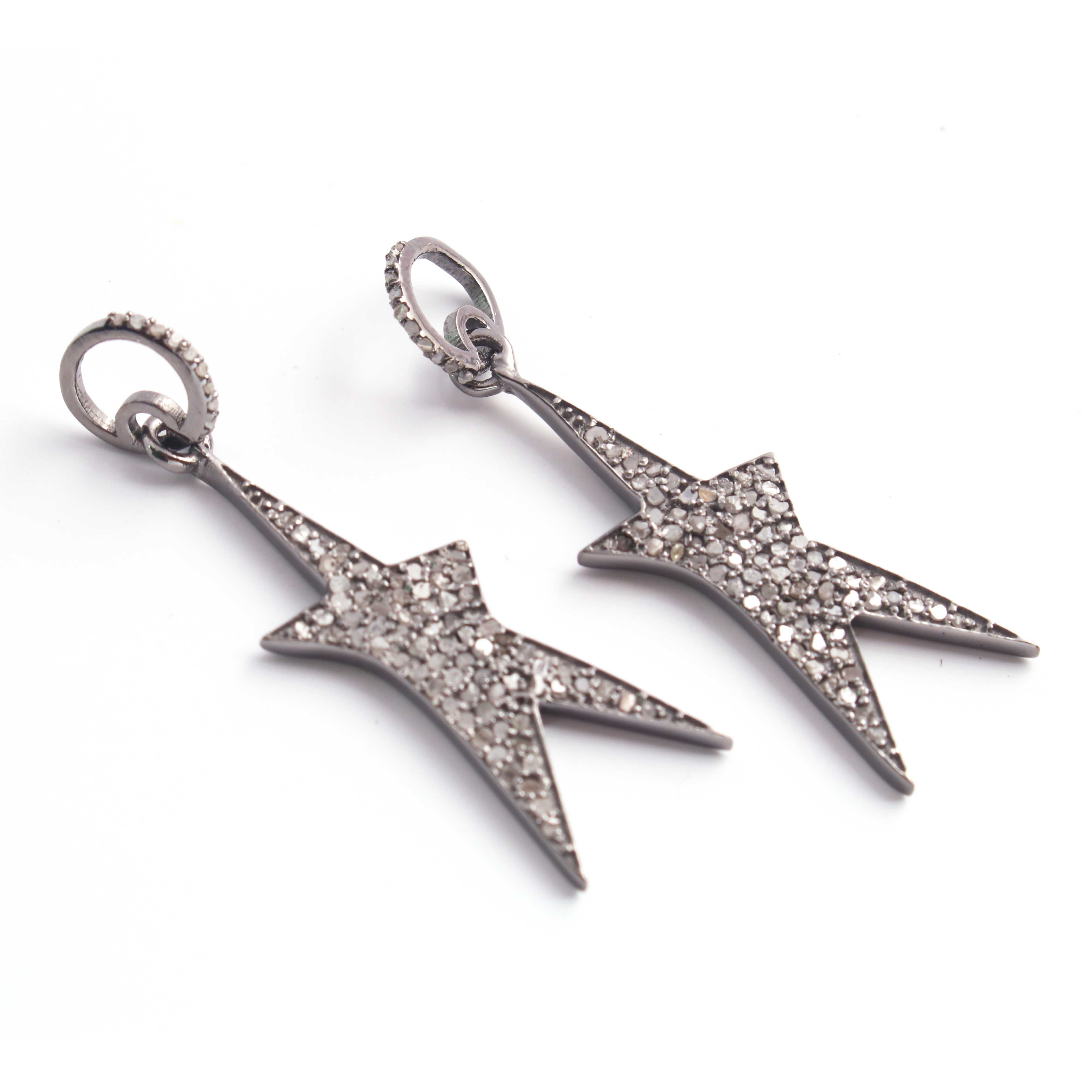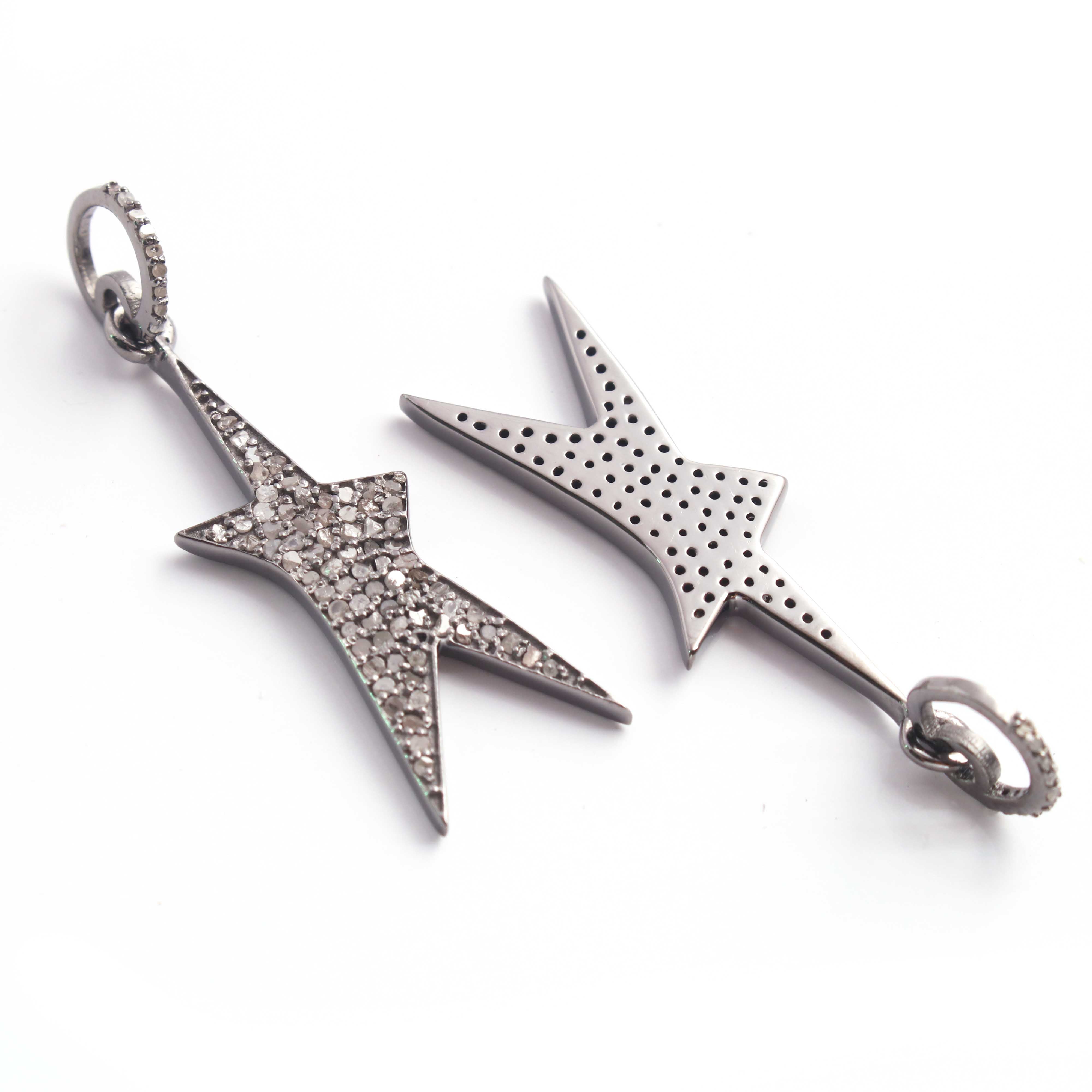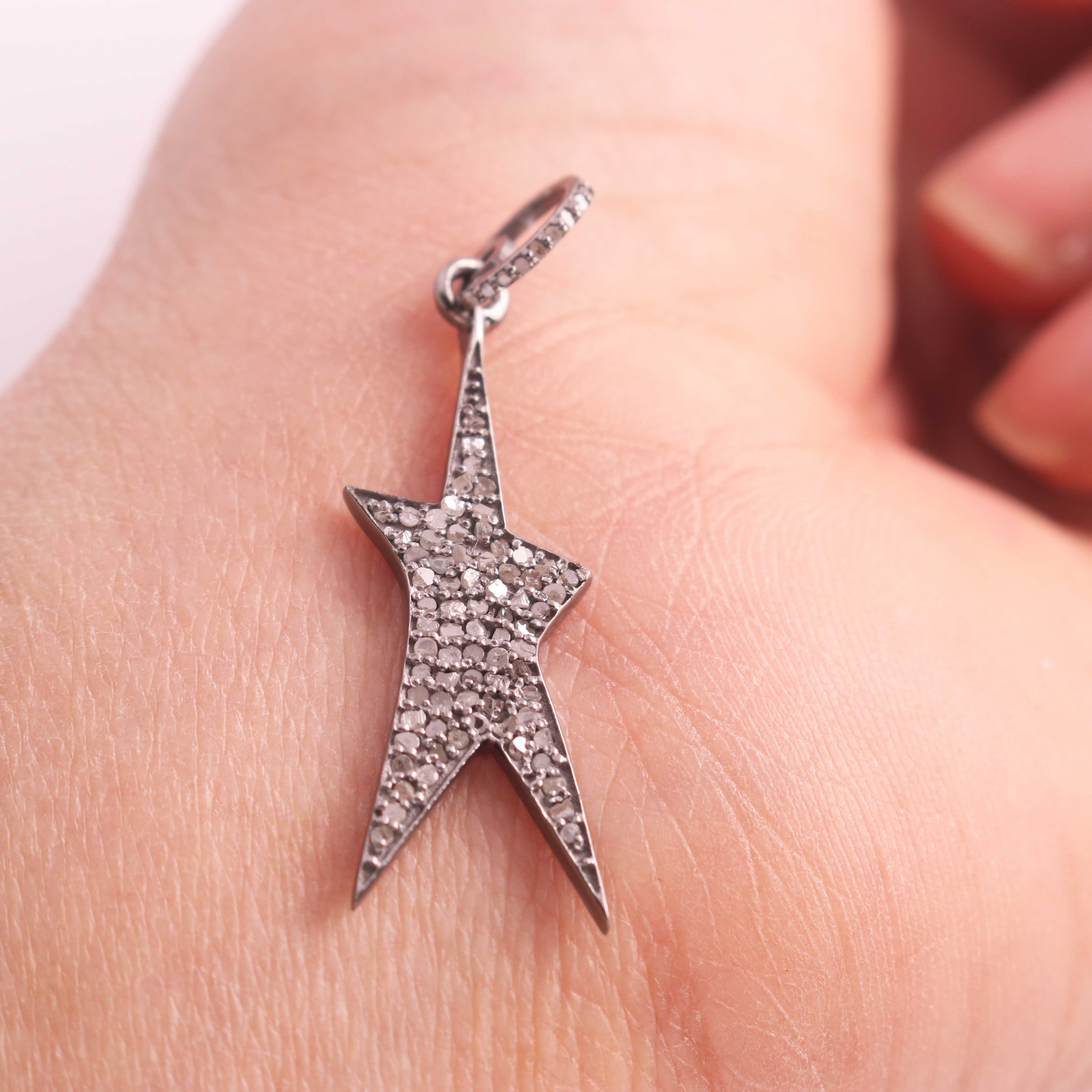 1 PC Antique Finish Pave Diamond Designer Star Pendant - 925 Sterling Silver - Diamond Pendant 33mmx9mm PD1868