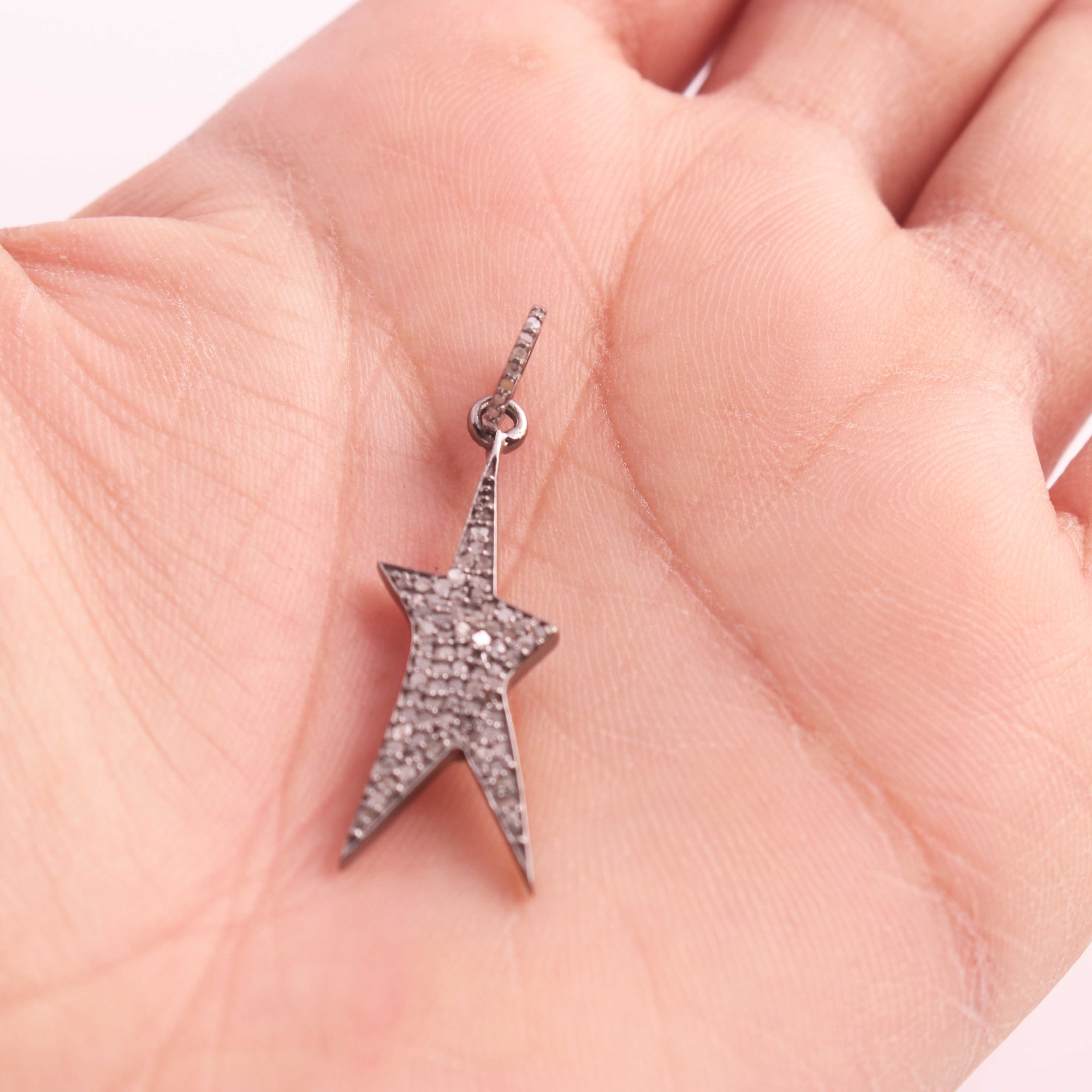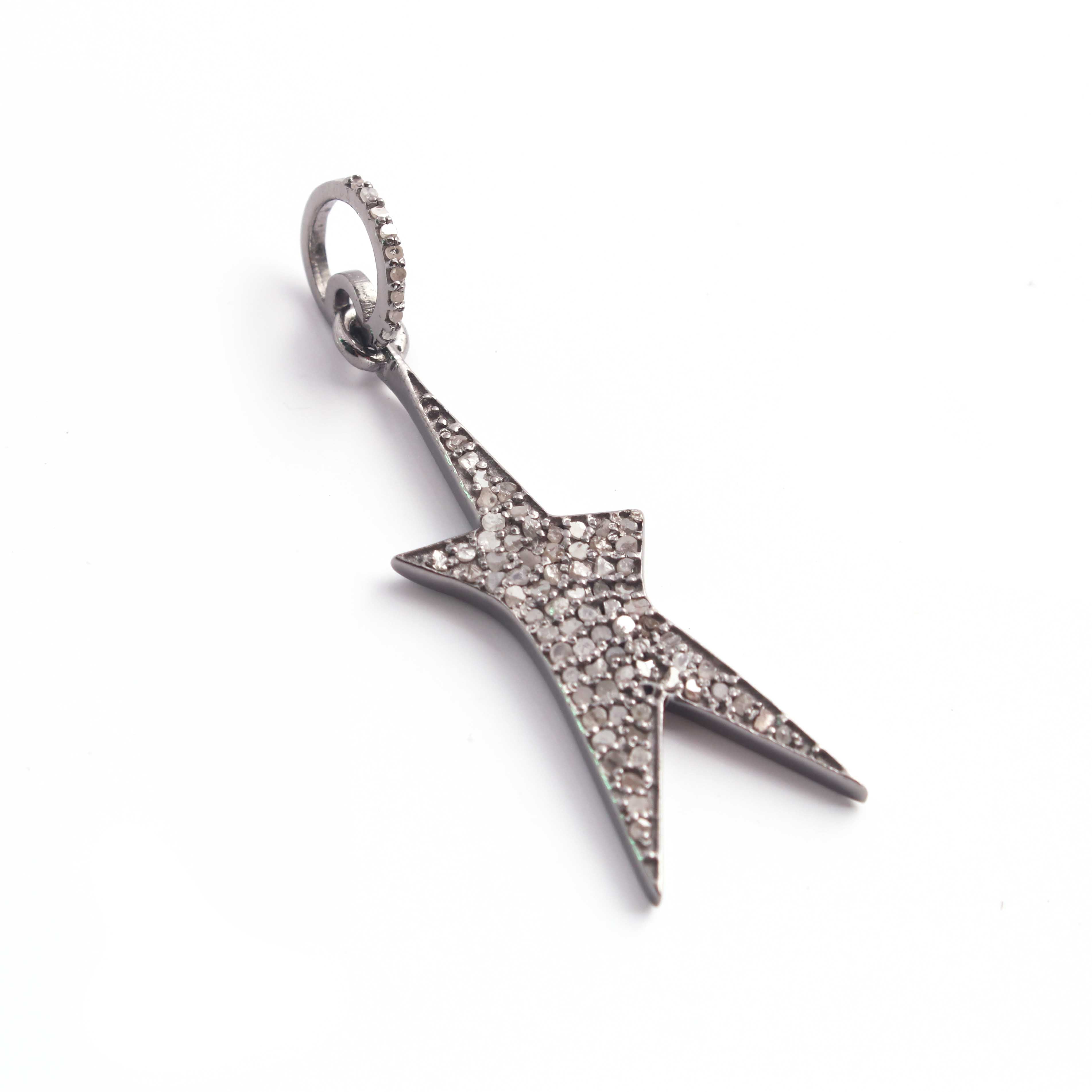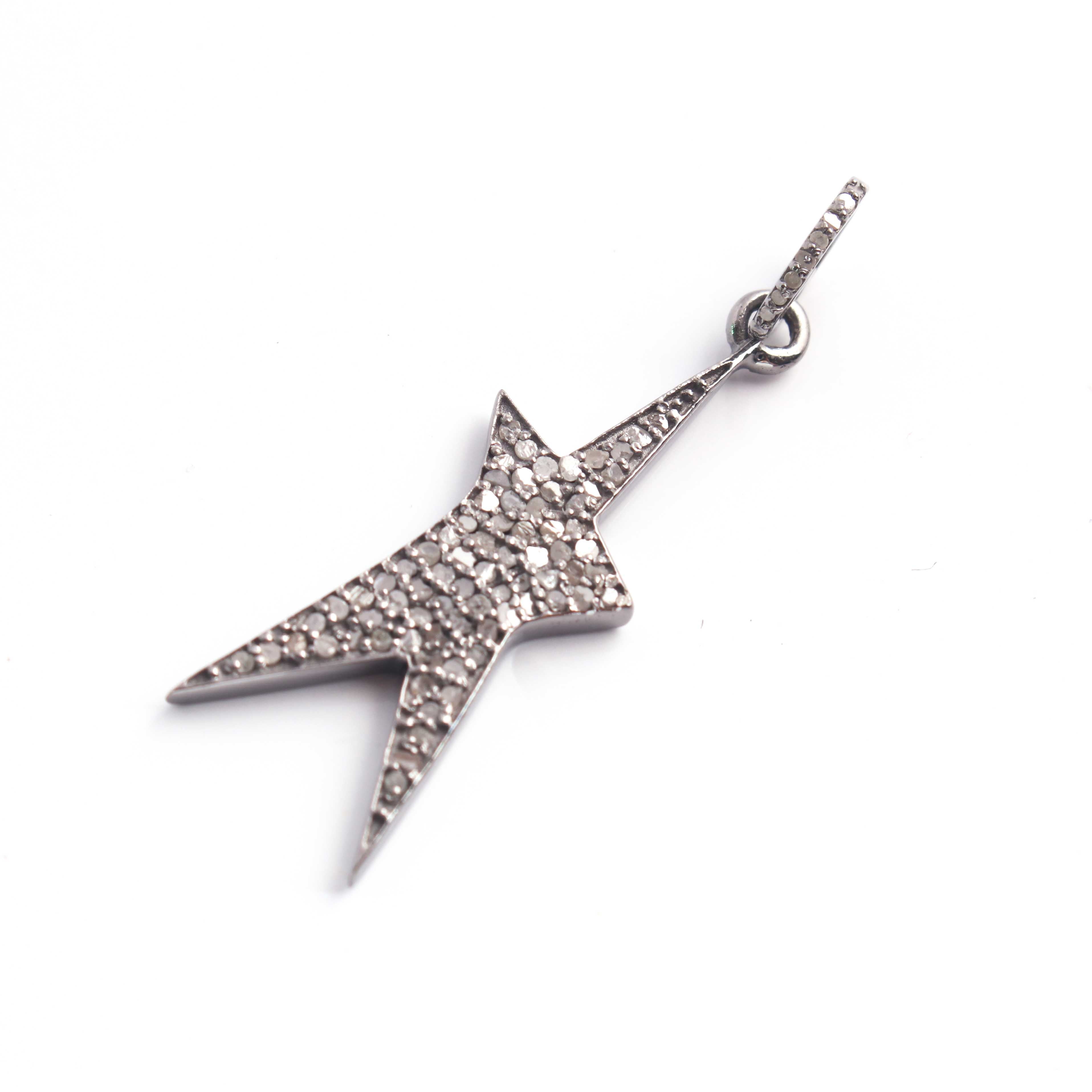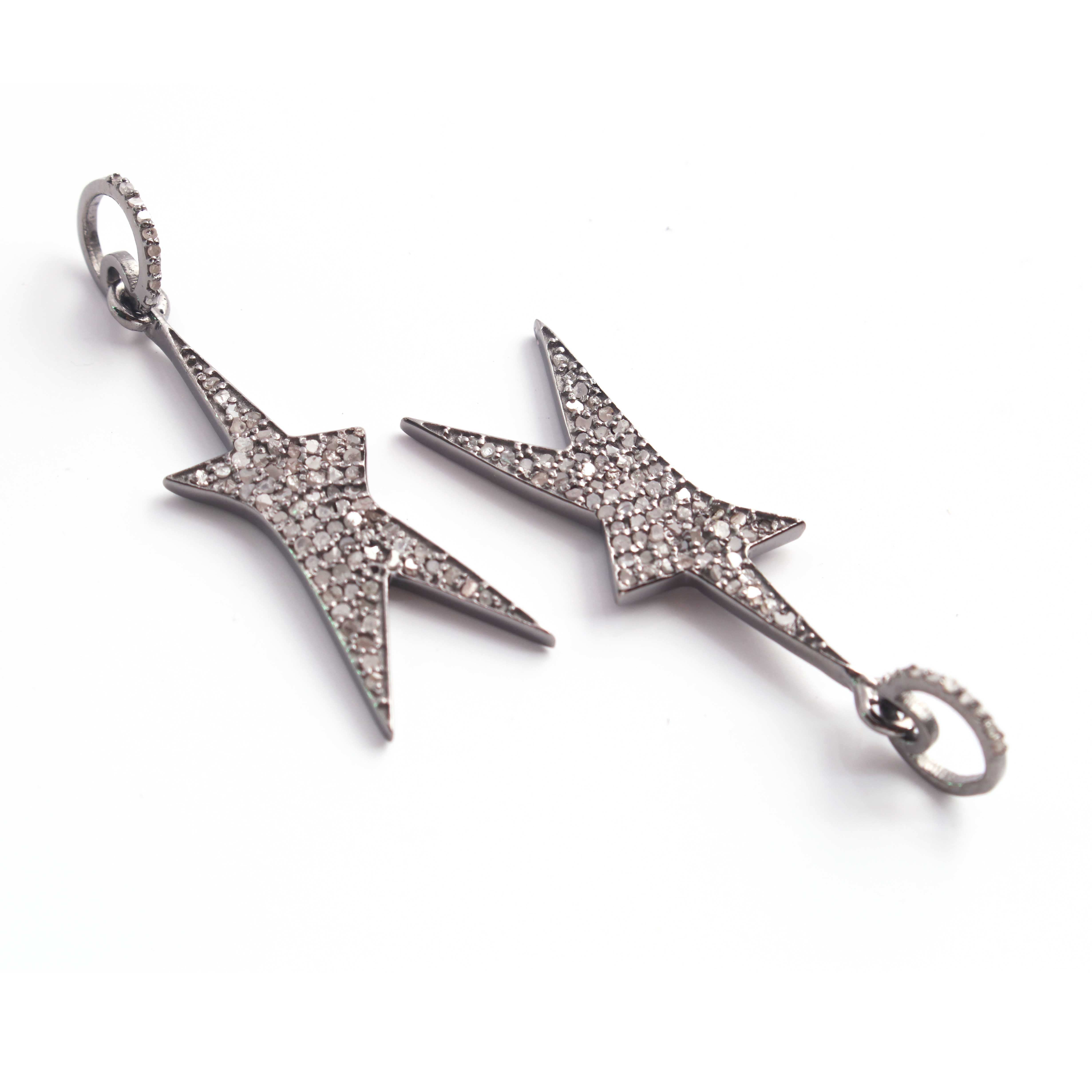 1 PC Antique Finish Pave Diamond Designer Star Pendant - 925 Sterling Silver - Diamond Pendant 33mmx9mm PD1868