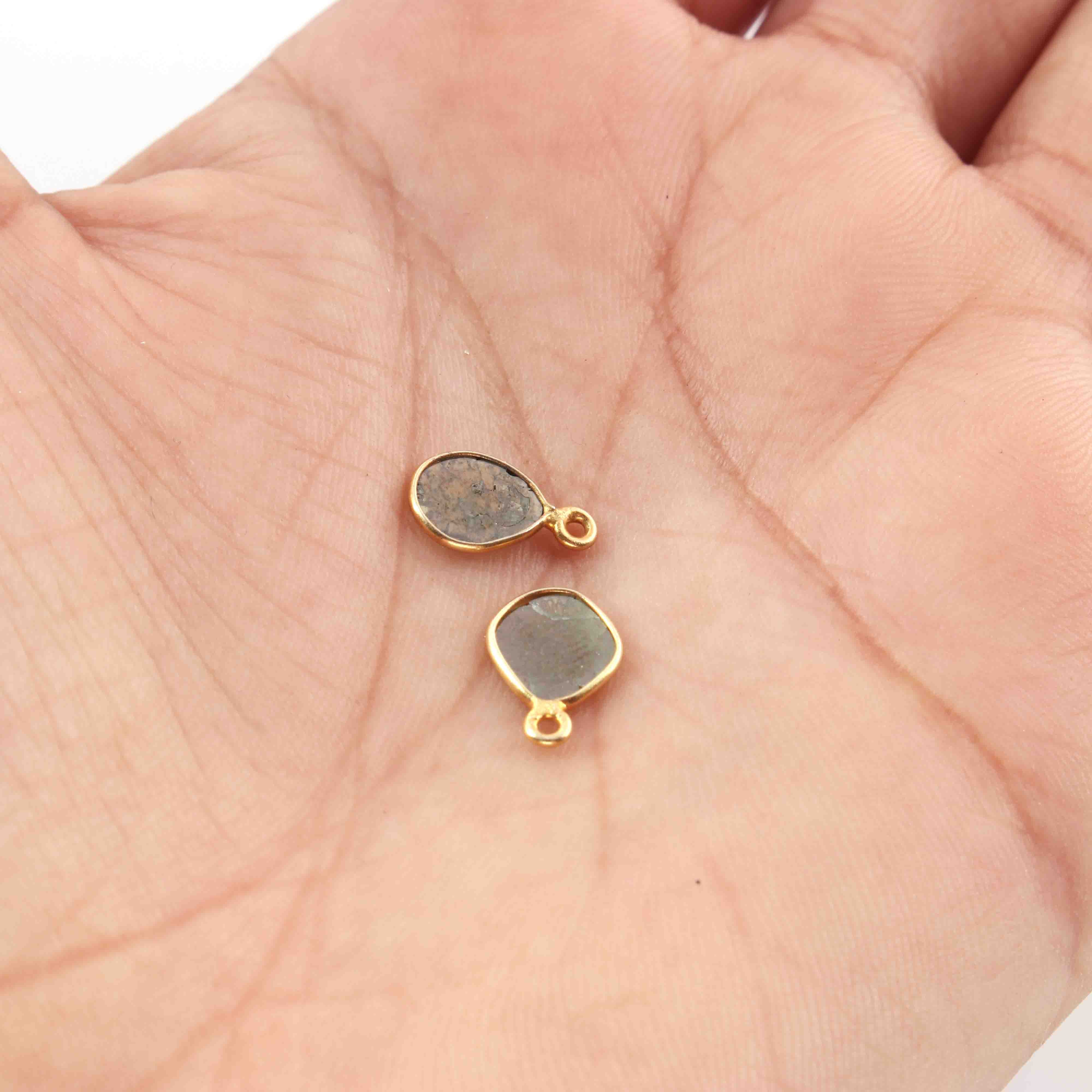 1 Pc Natural Green Slice Raw Diamond 925 Sterling Vermeil Pendant- Diamond Slice Connectors, Uncut Diamond, -10mm BDU098