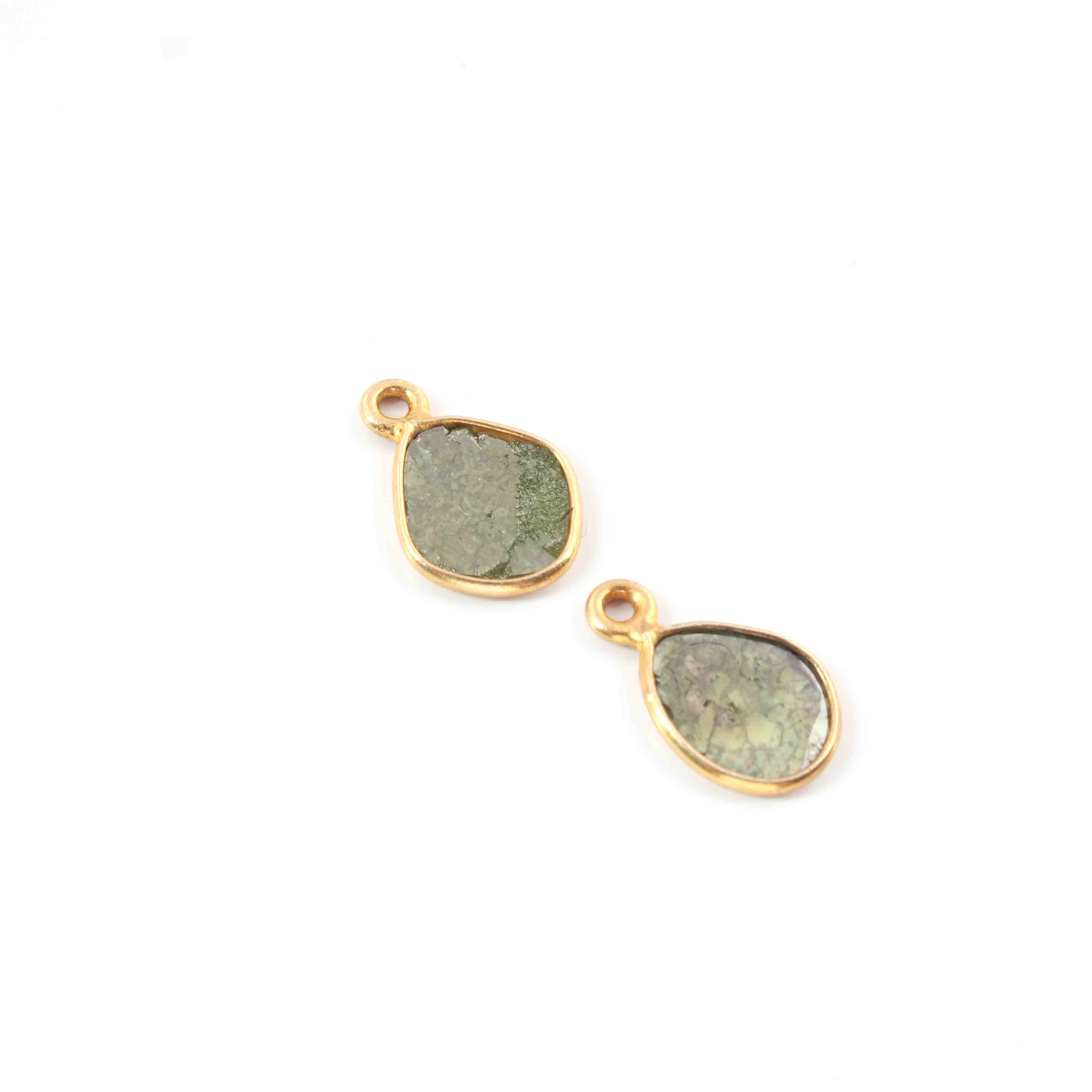 1 Pc Natural Green Slice Raw Diamond 925 Sterling Vermeil Pendant- Diamond Slice Pendant, Uncut Diamond, - 8mmx11mm BDU099