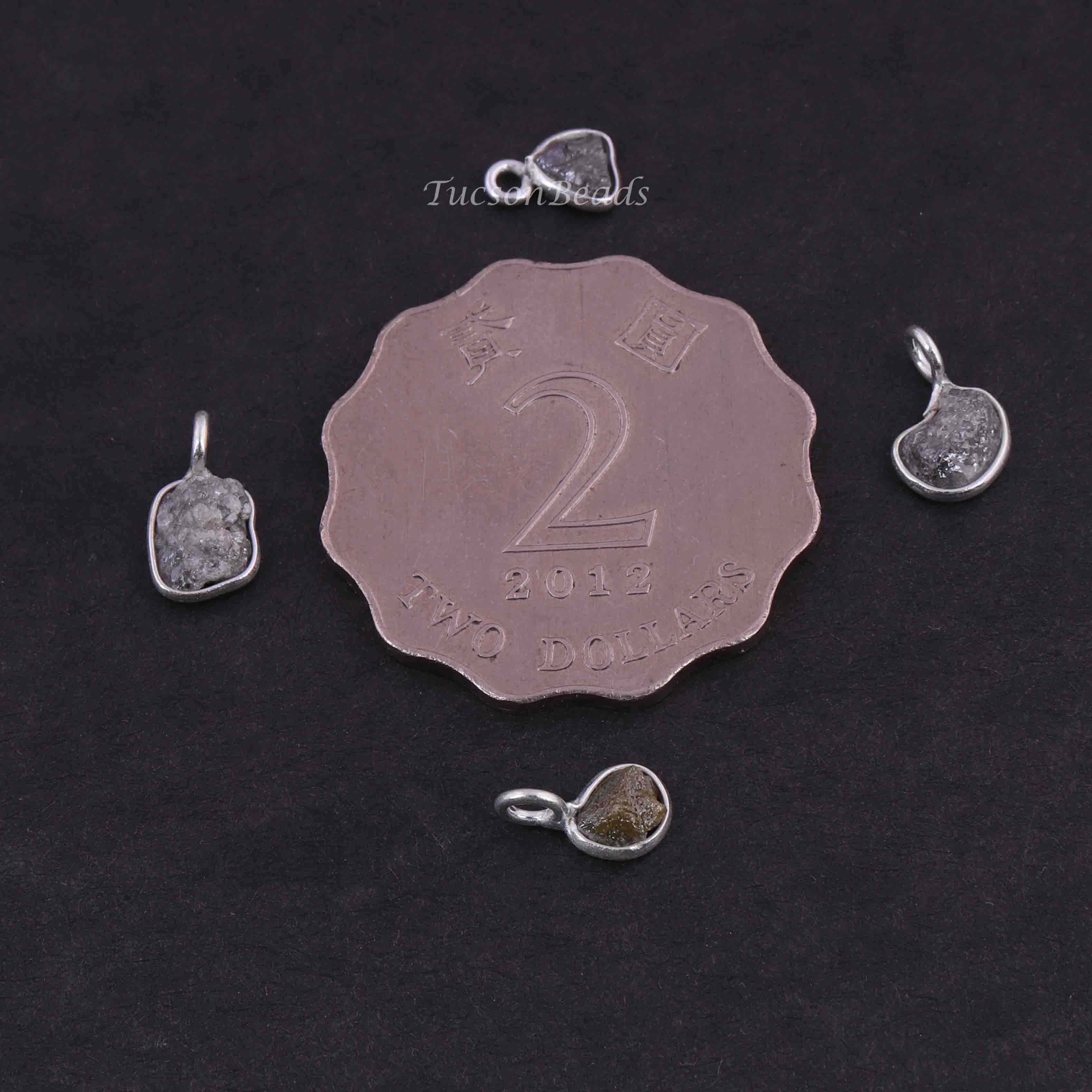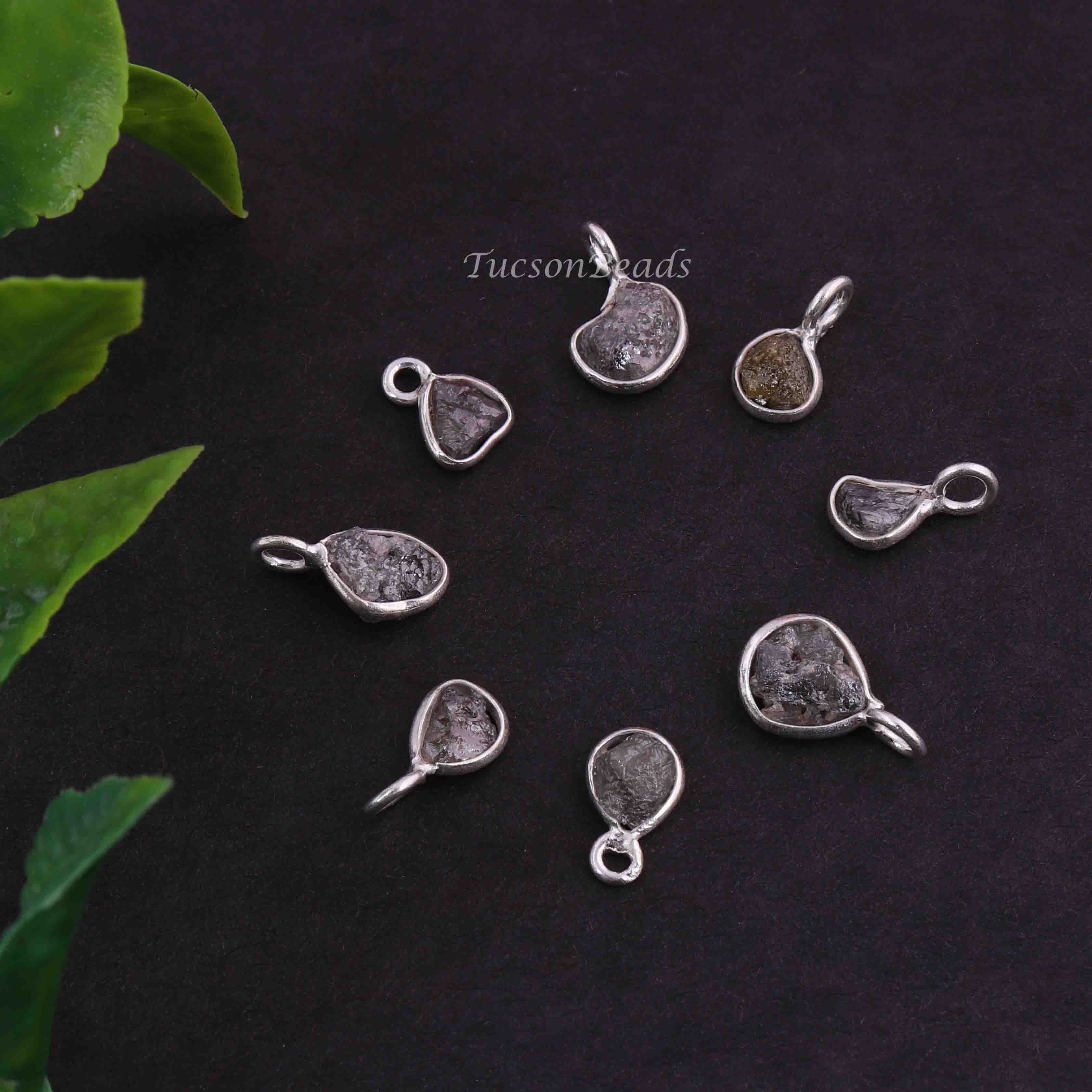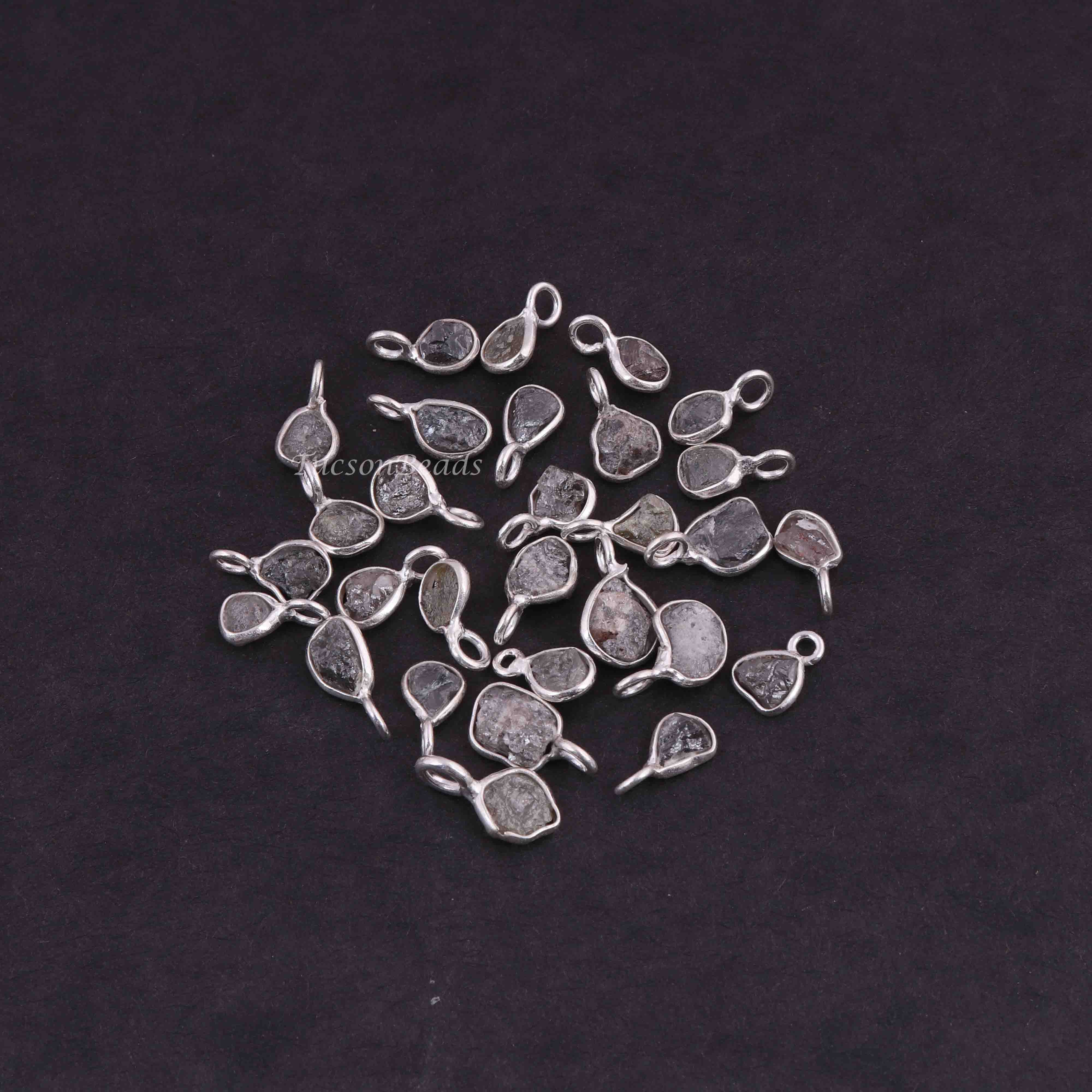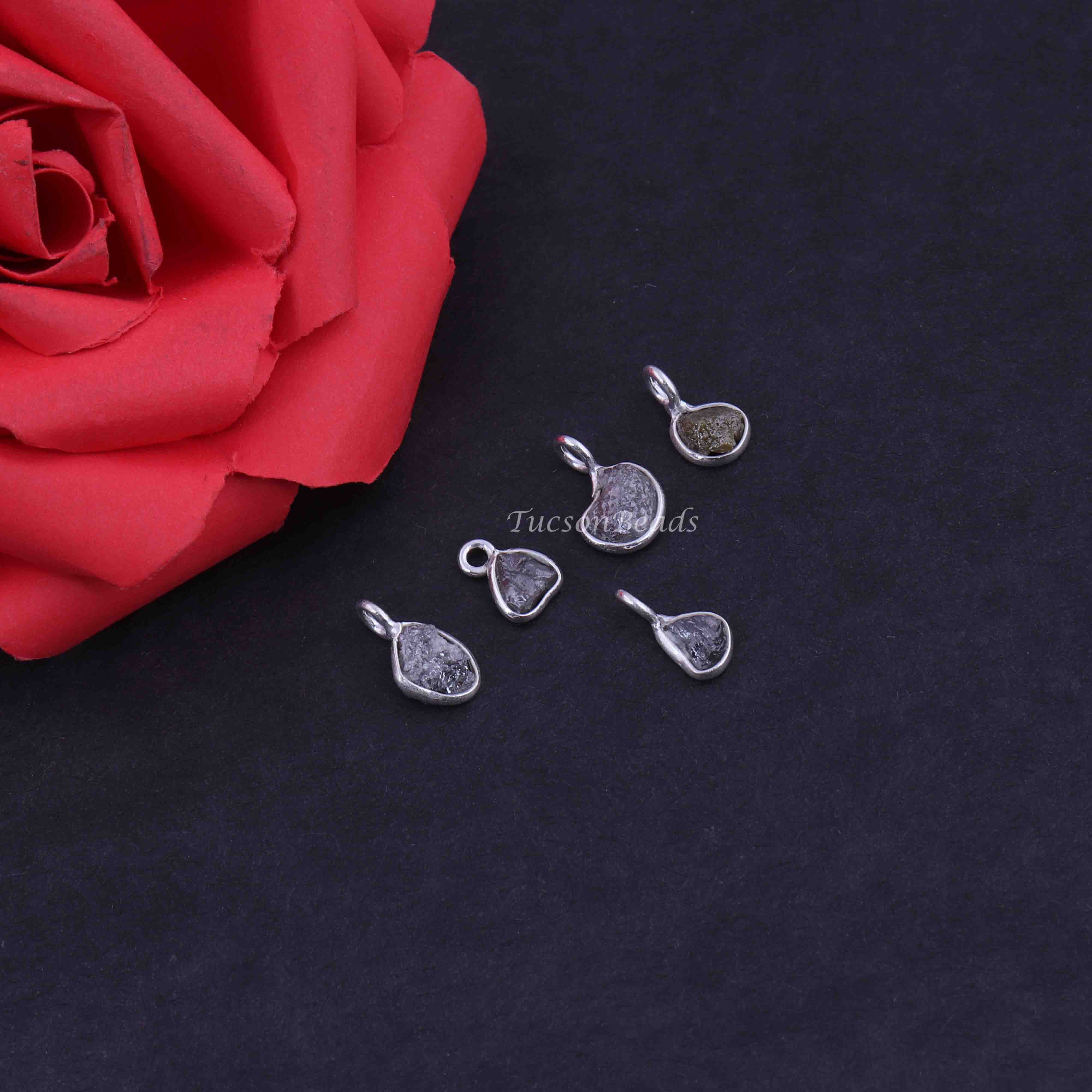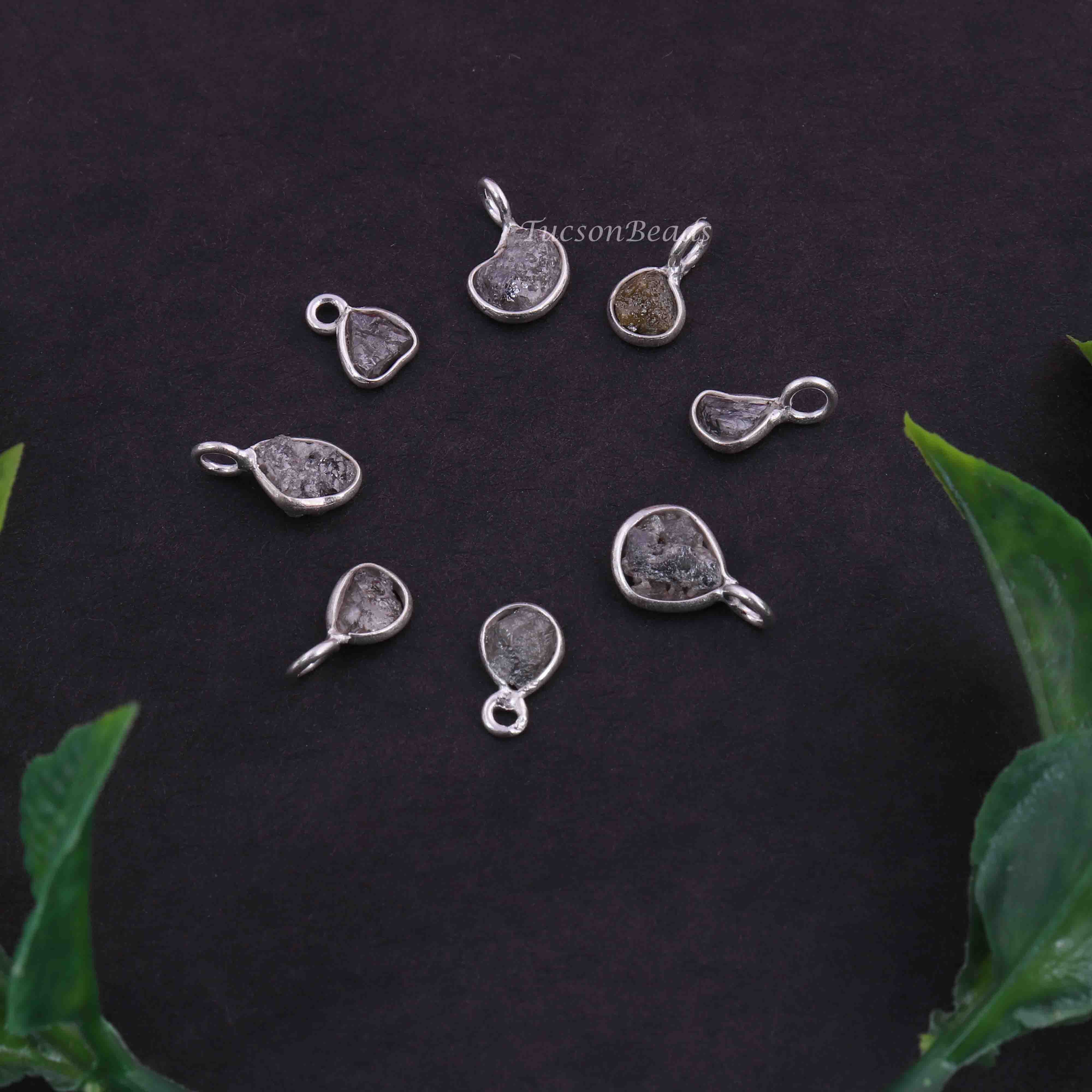 1 Pc Natural Rough Grey Diamond 925 Sterling Silver Pendant- Raw Uncut Diamond -11mmx7mm BDU064
