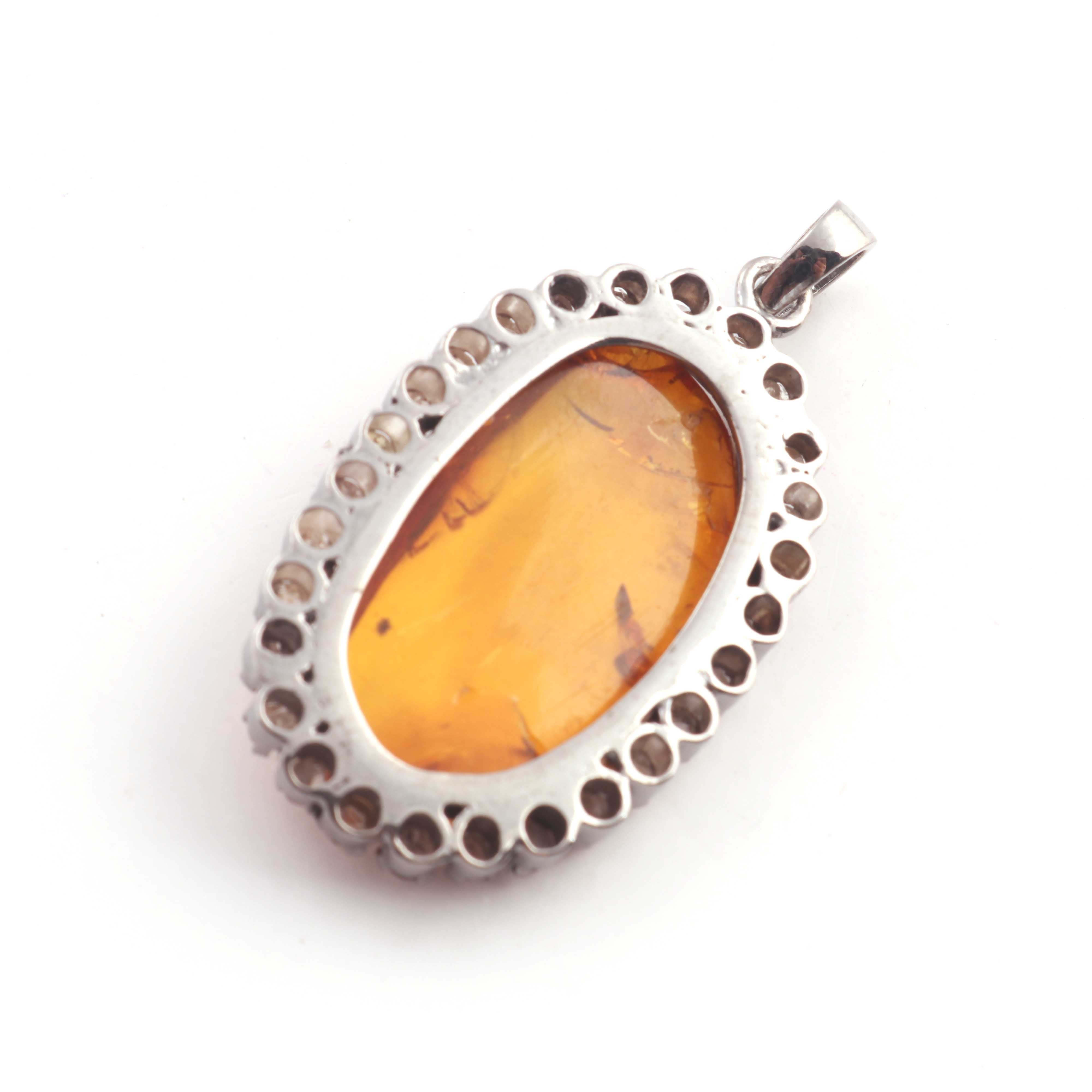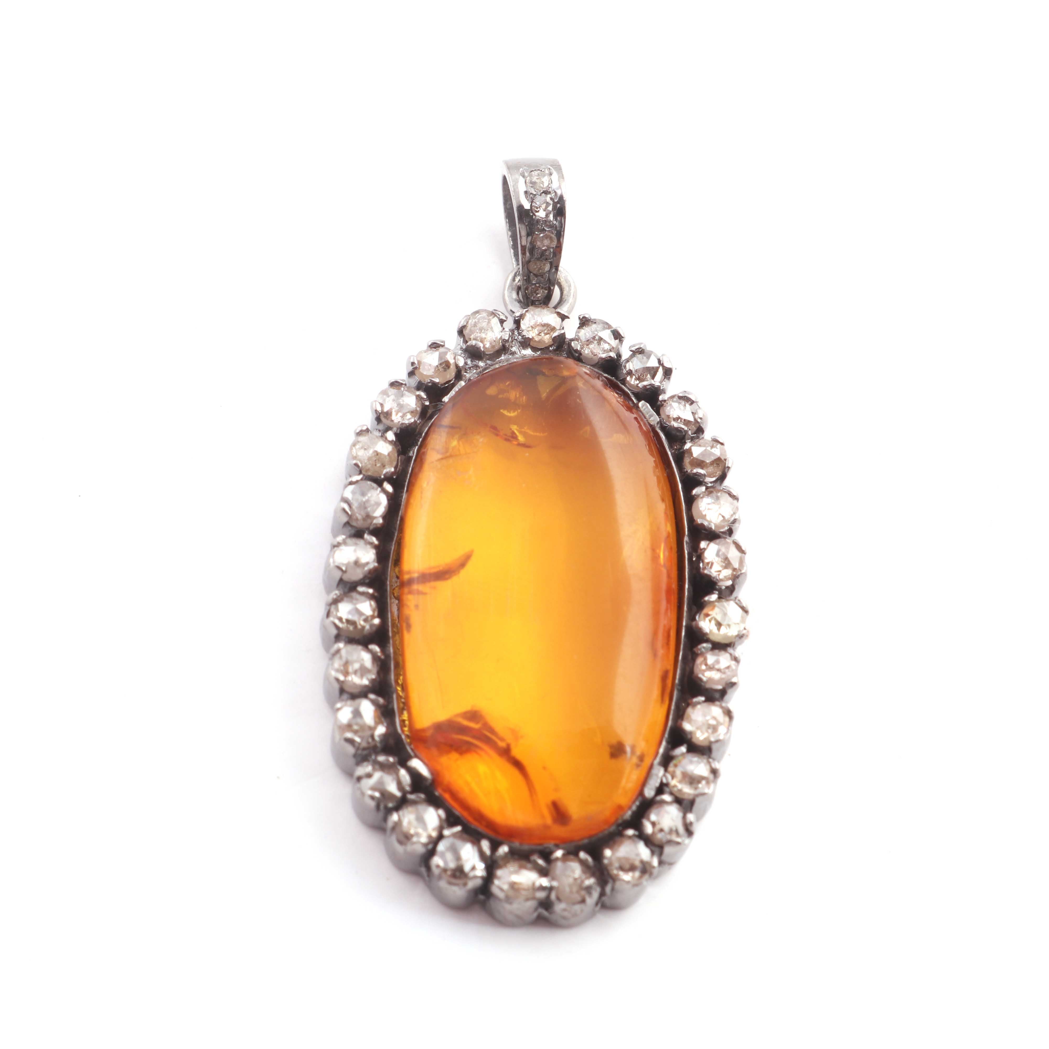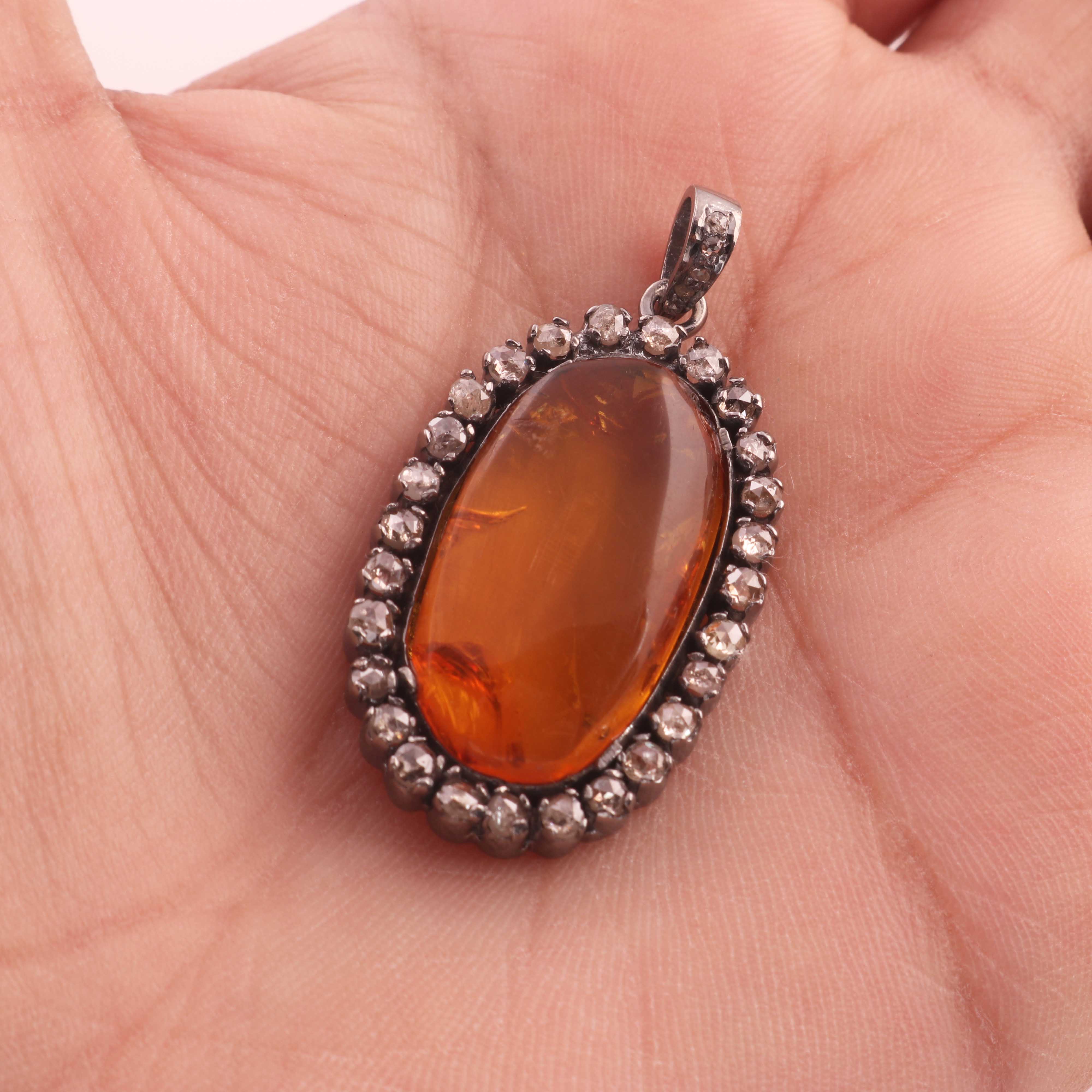 Listing Is For One (1) Pc Pave Diamond Amber Oval Pendant Over 925 Sterling Silver - Gemstone Pendant 36mmx21mm PD1899