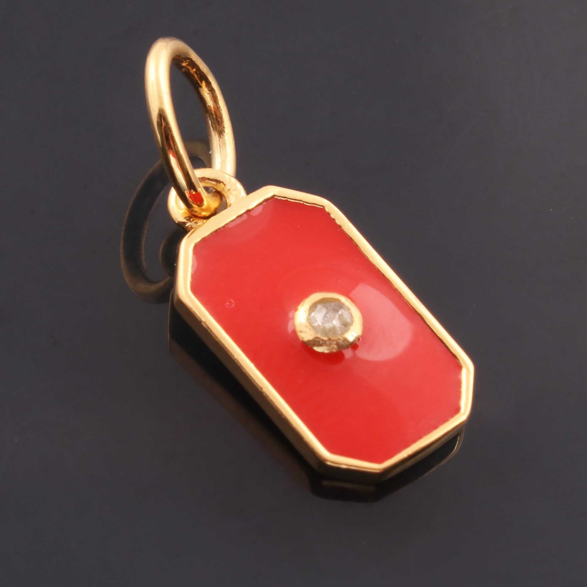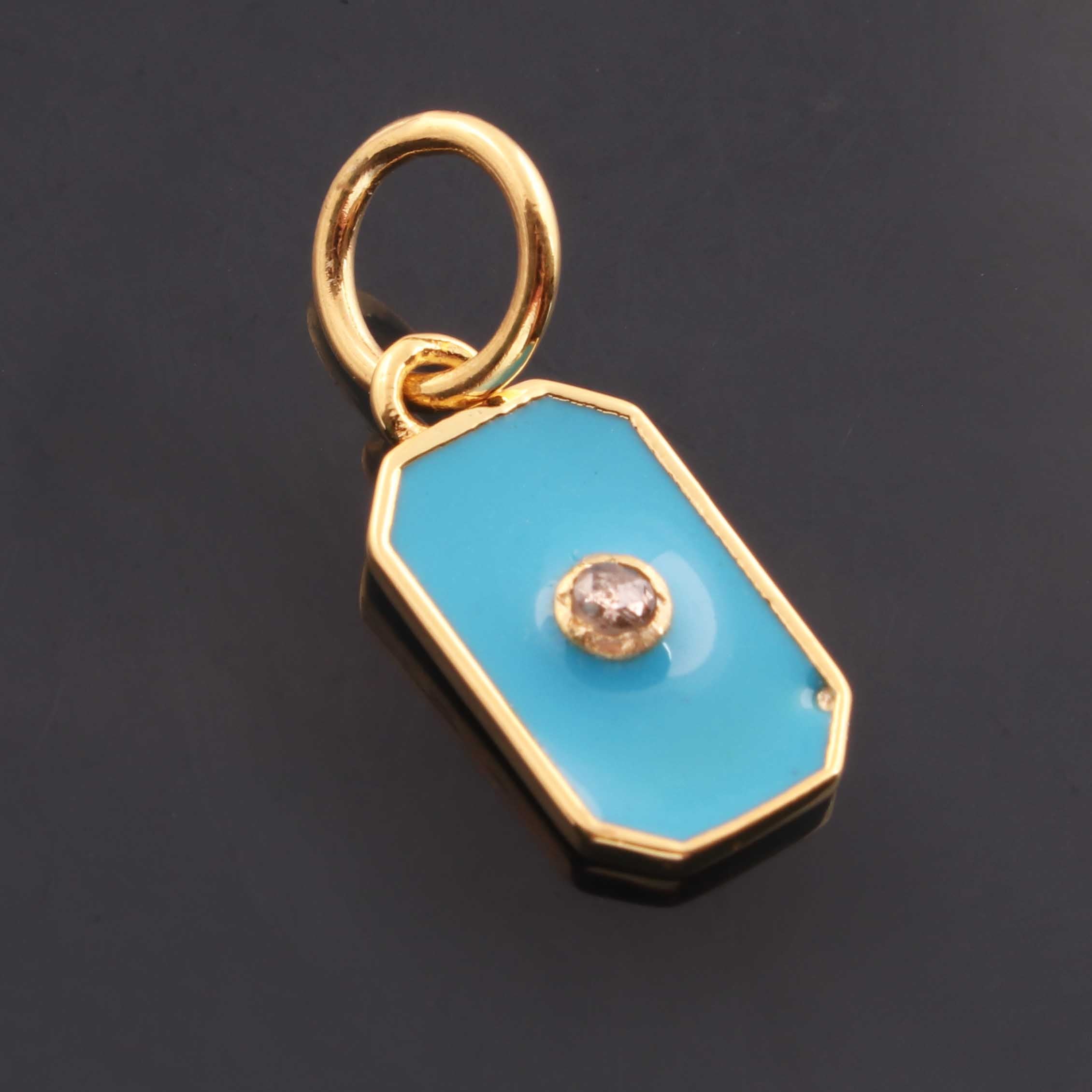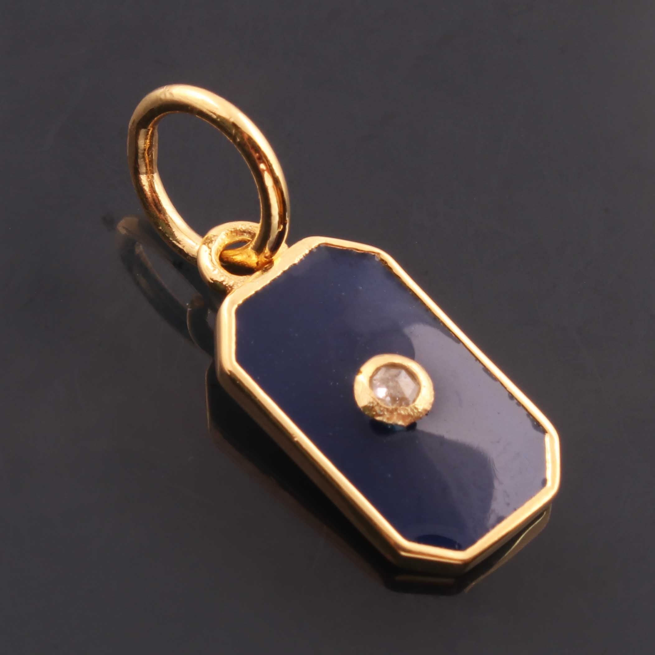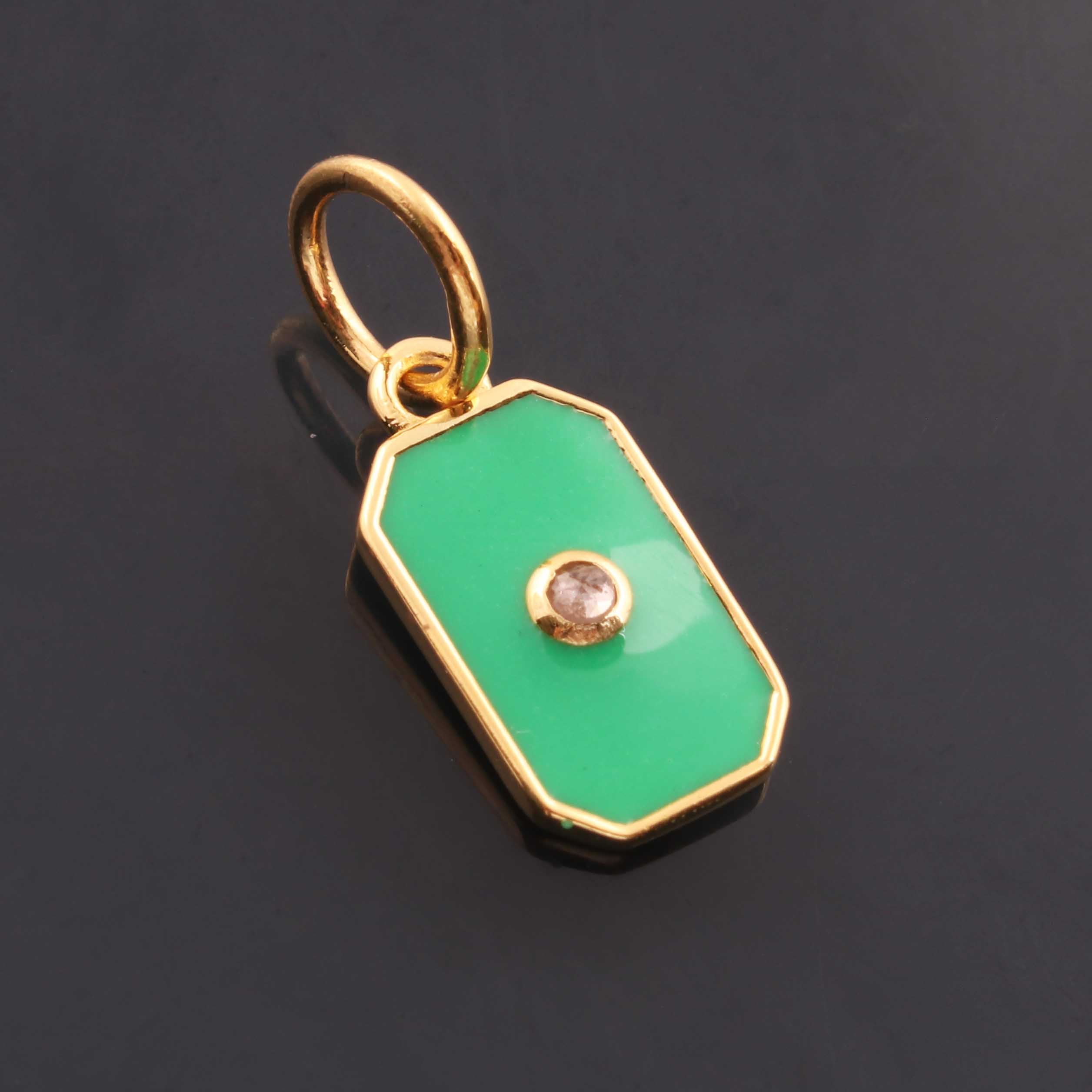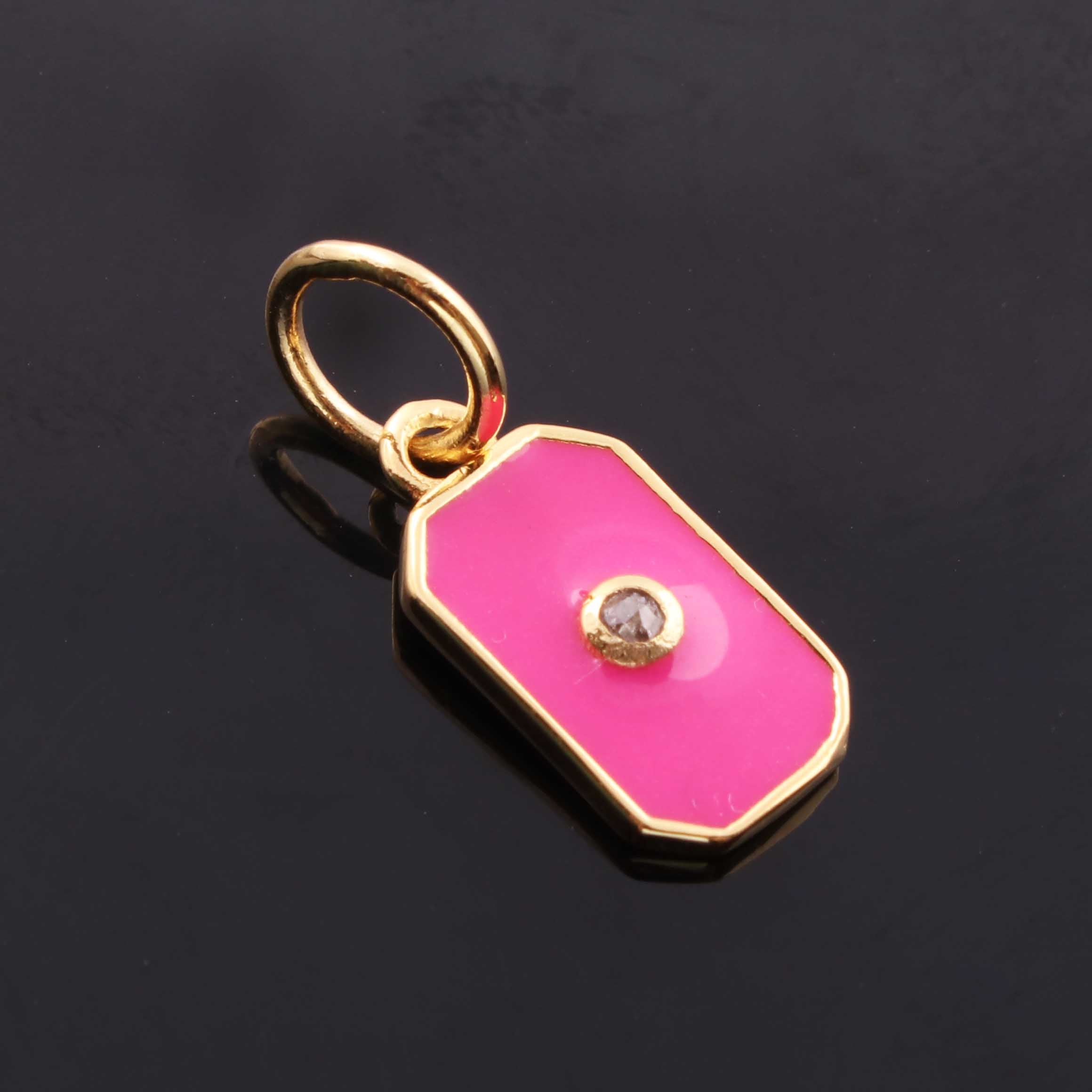 1 Pc Pave Diamond Enamel Pendant, Yellow Gold Vermeil, 17mmx8mm Bakelite Pendant in 10 Colors, You Choose PDC00169