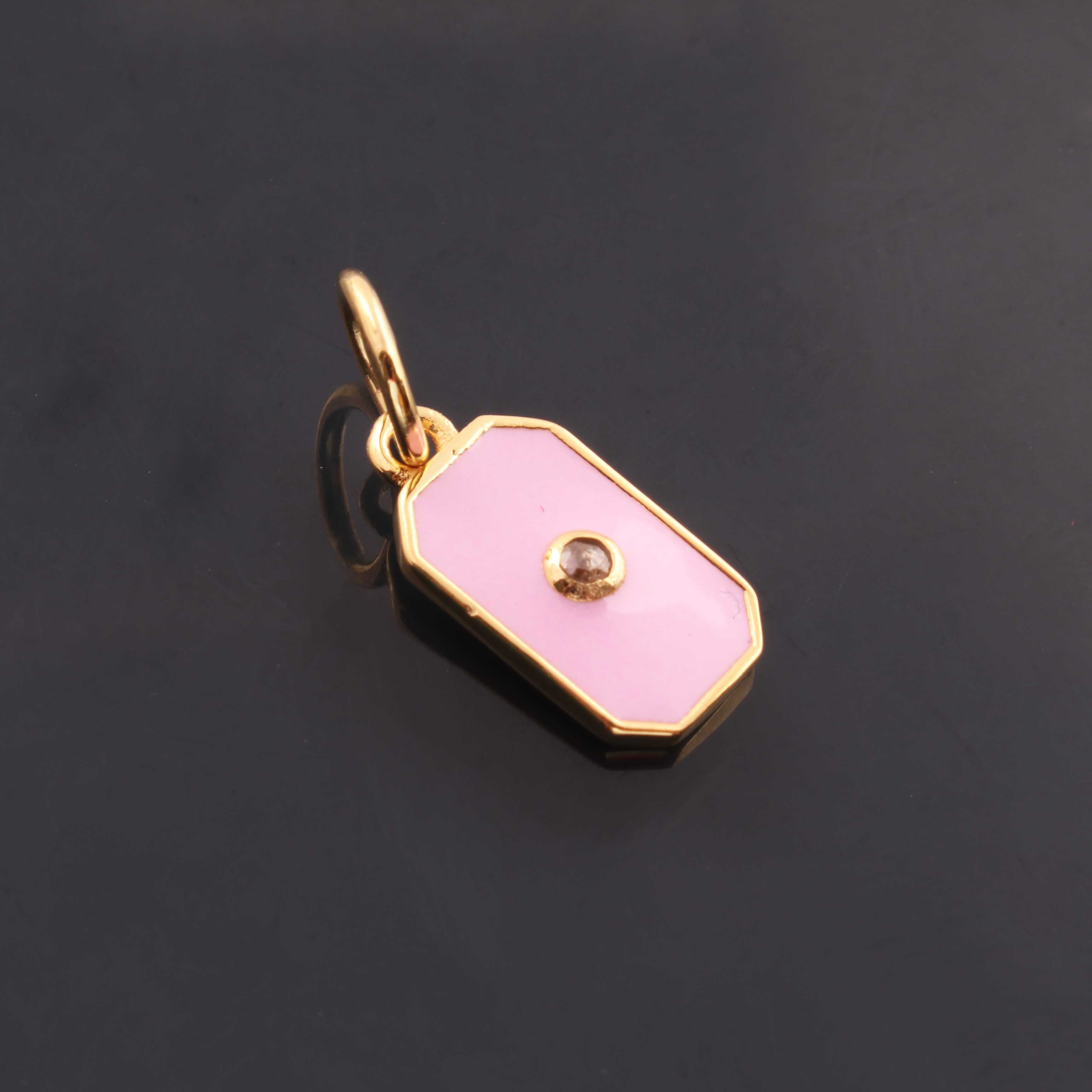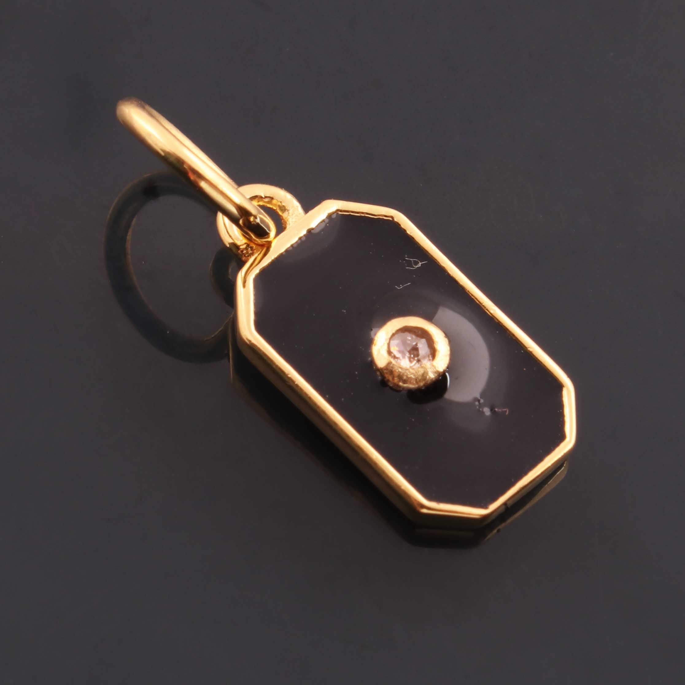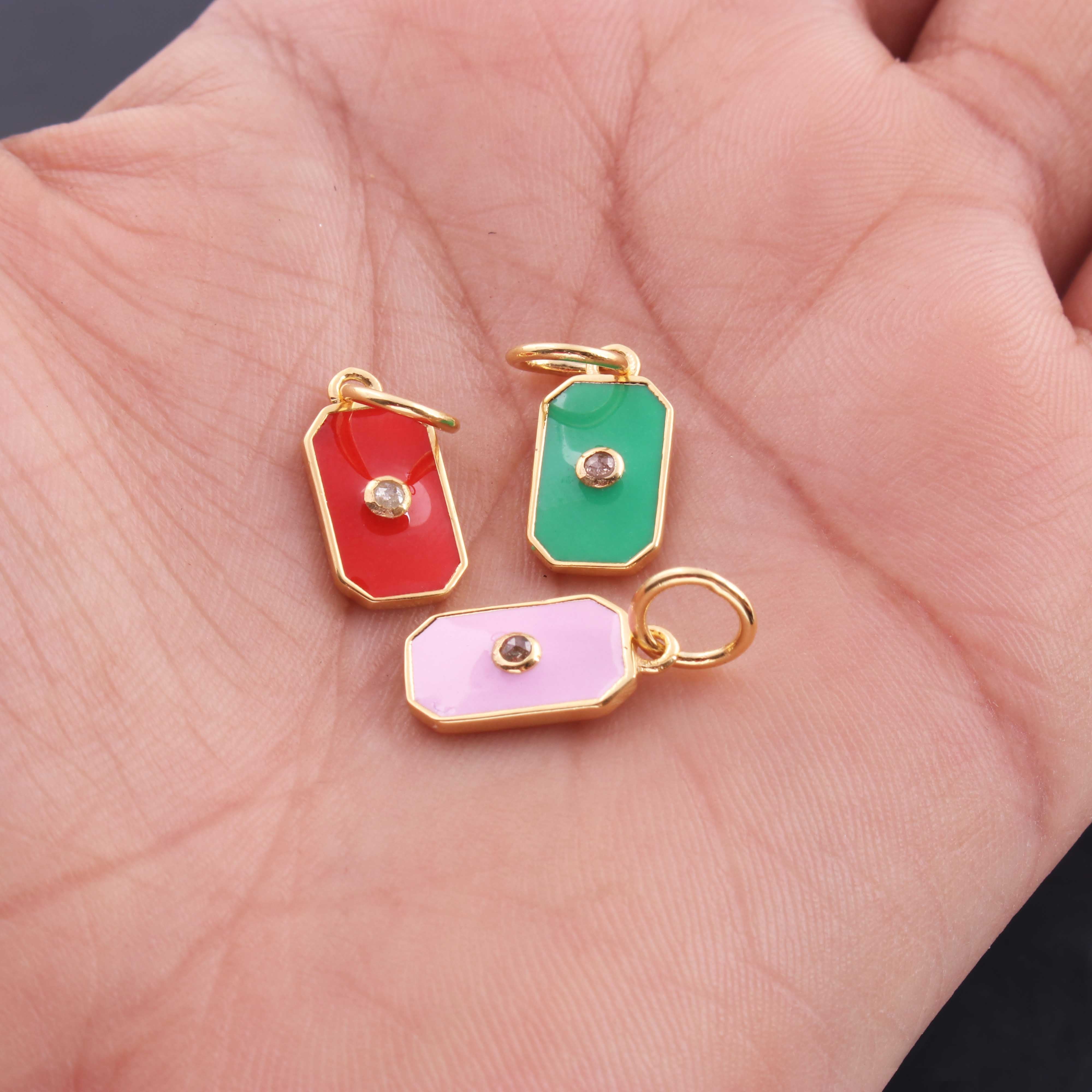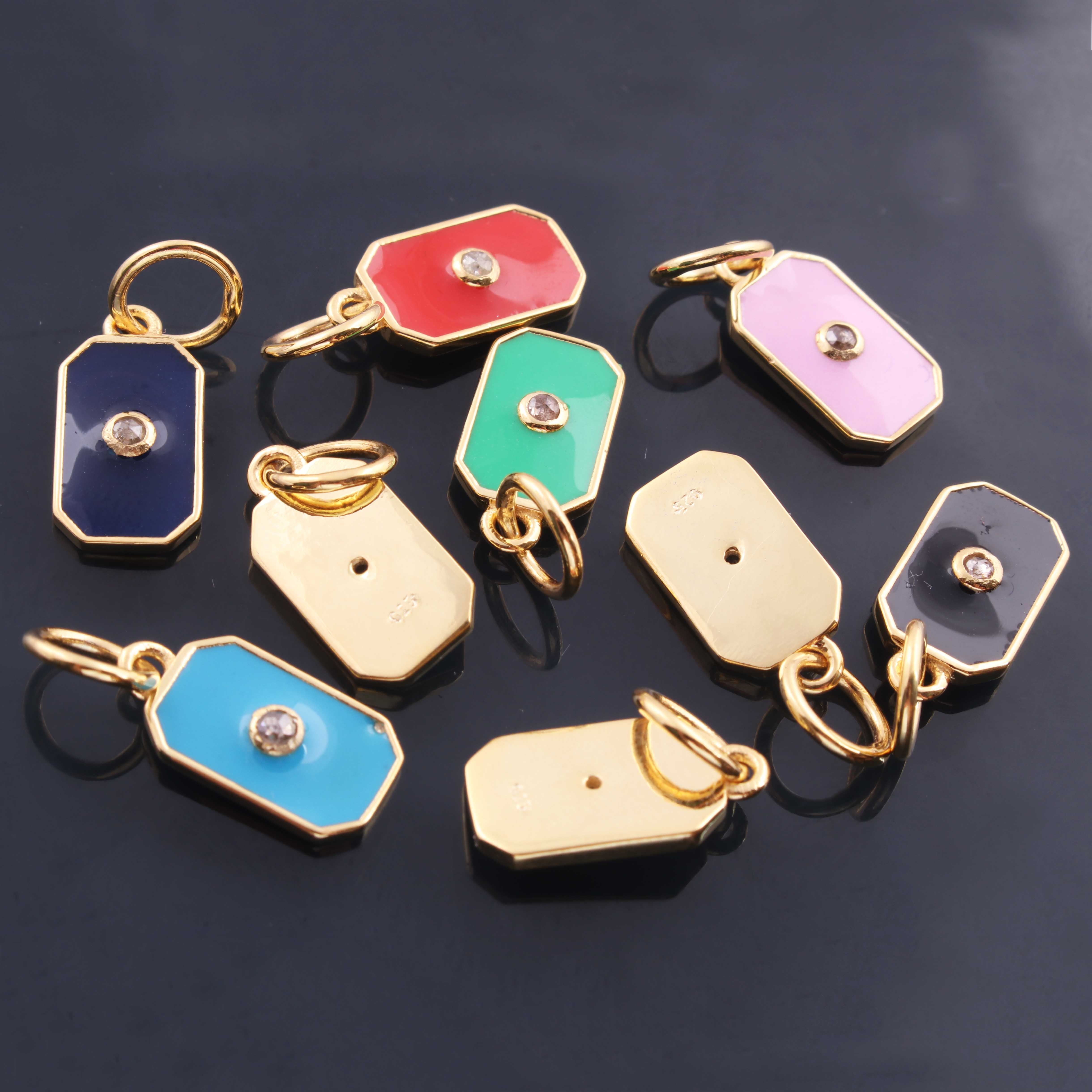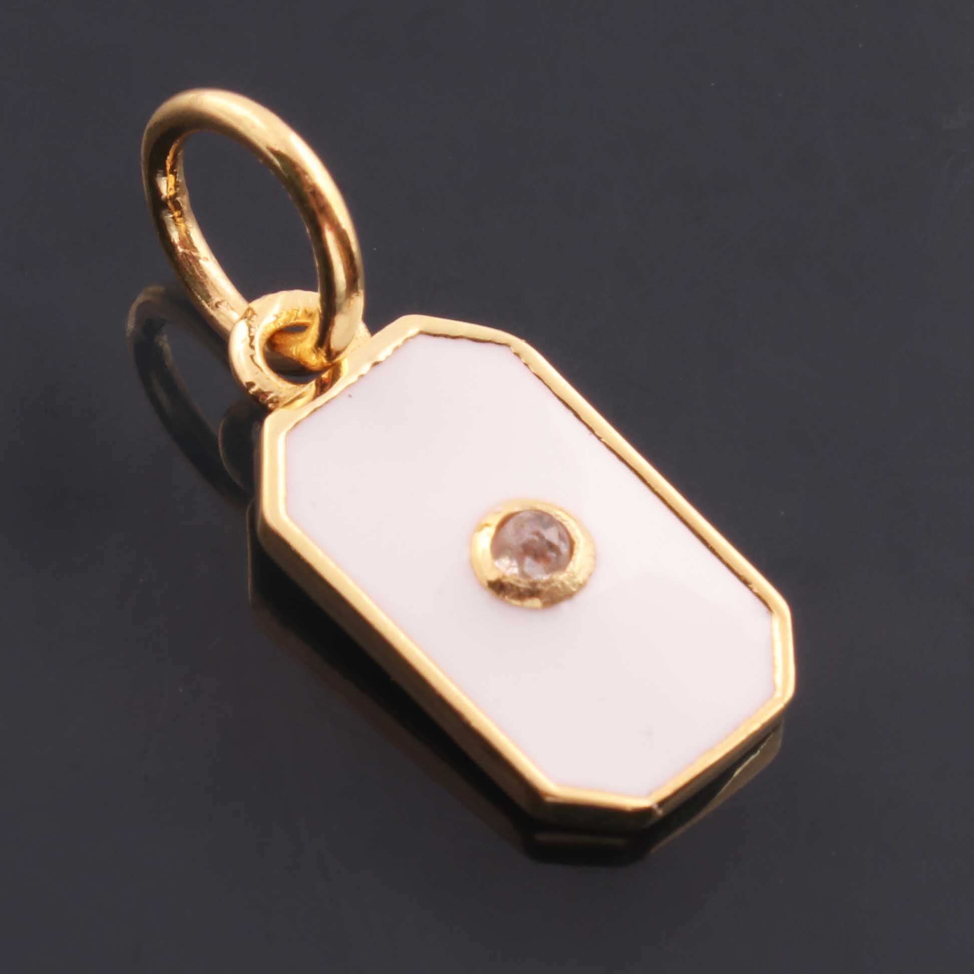 1 Pc Pave Diamond Enamel Pendant, Yellow Gold Vermeil, 17mmx8mm Bakelite Pendant in 10 Colors, You Choose PDC00169