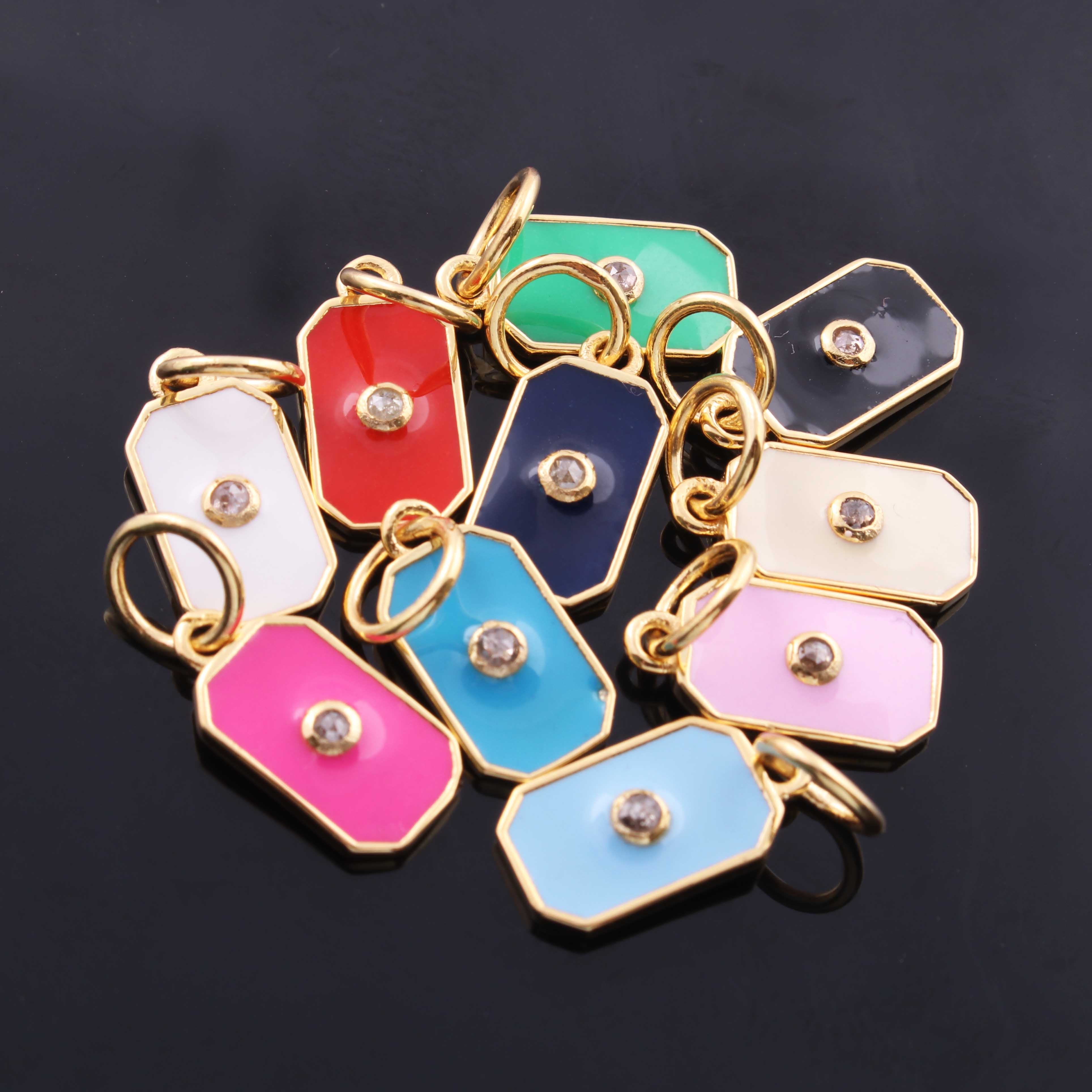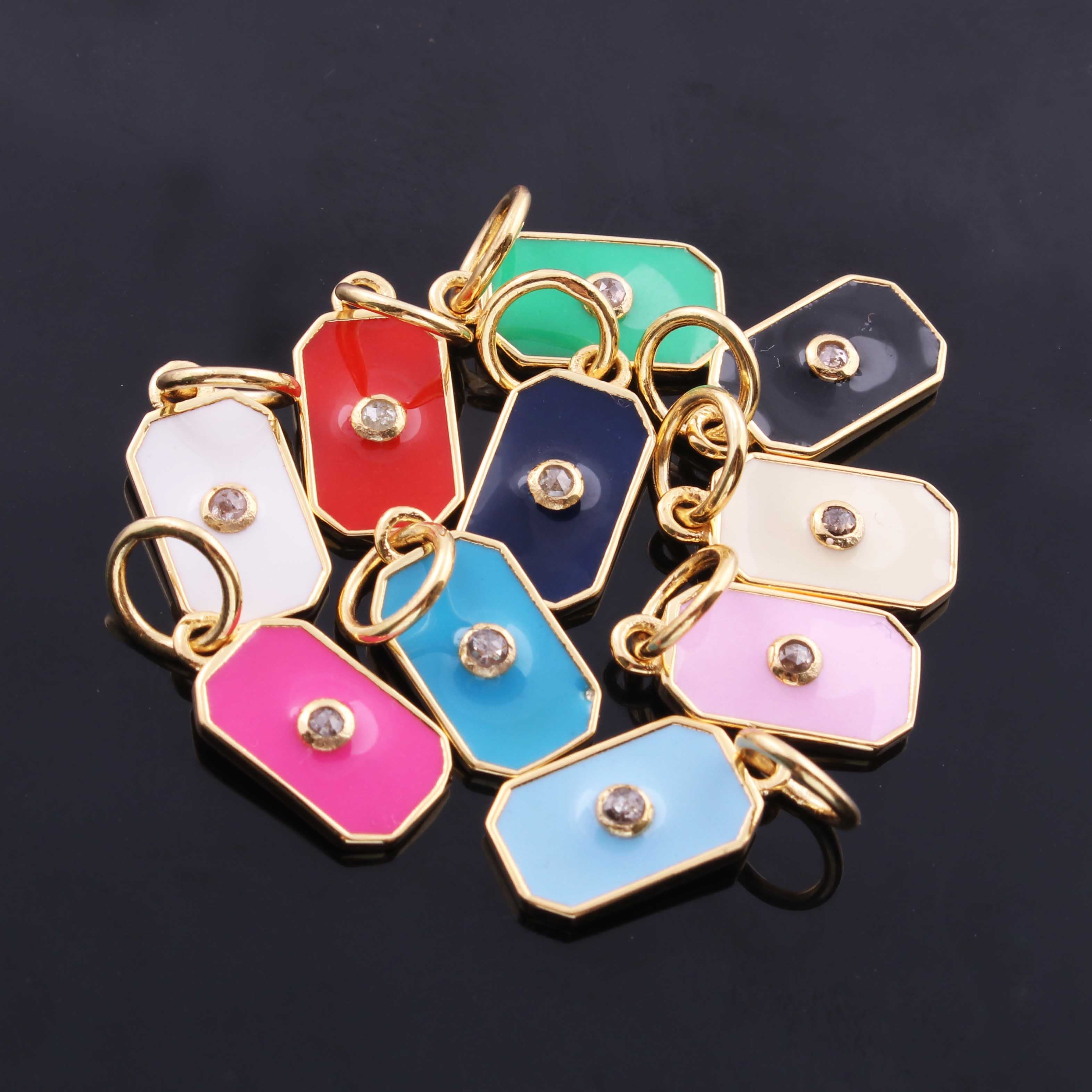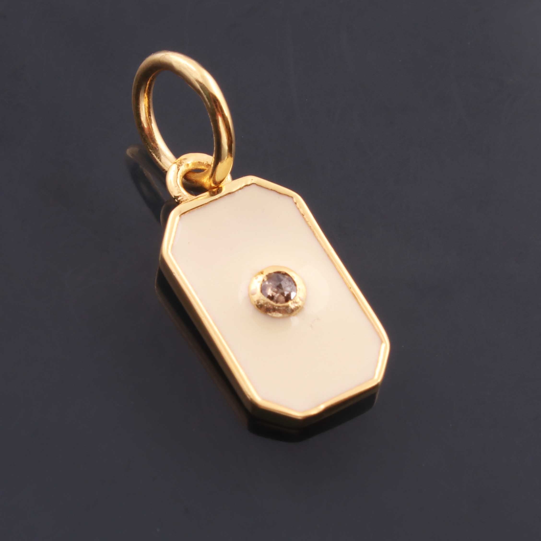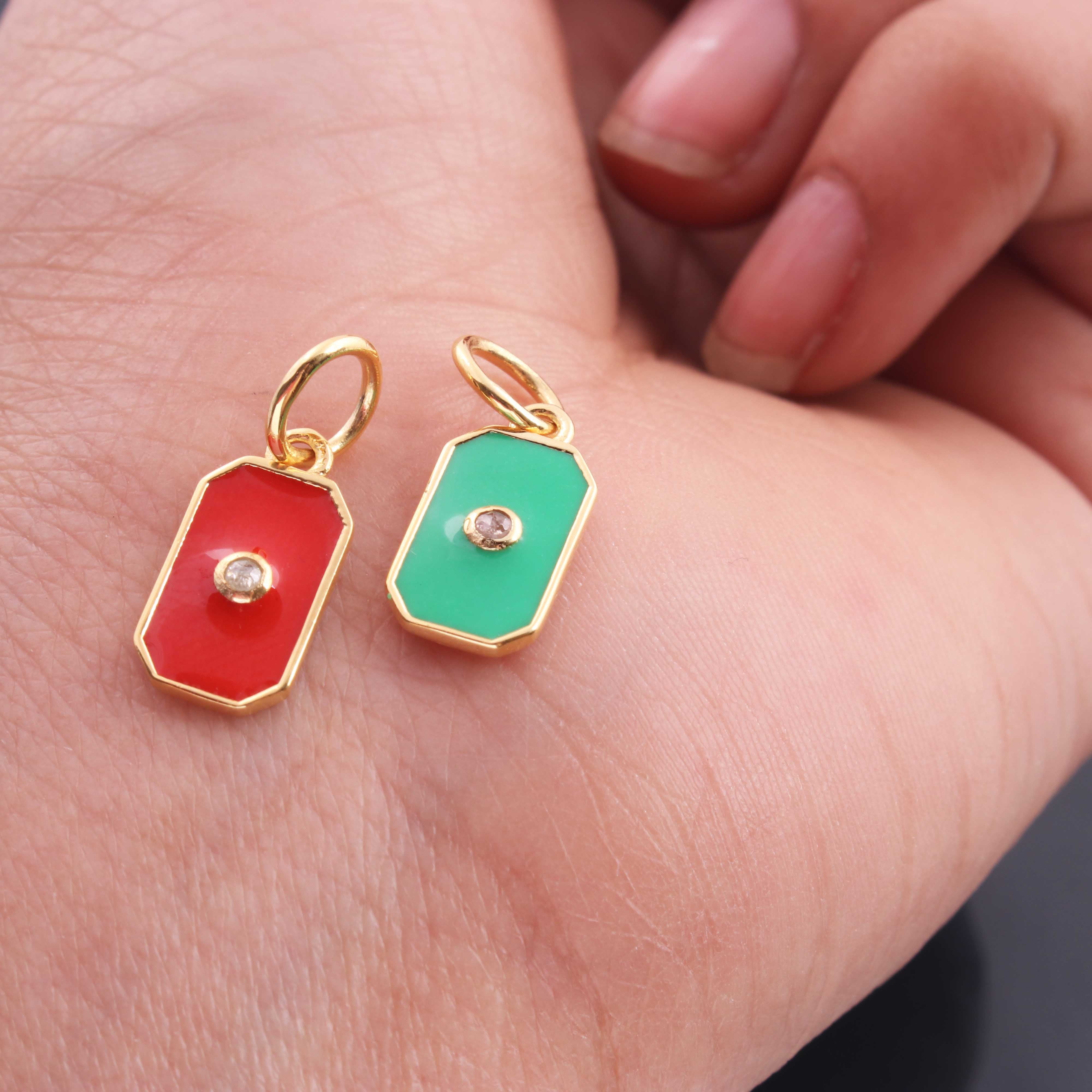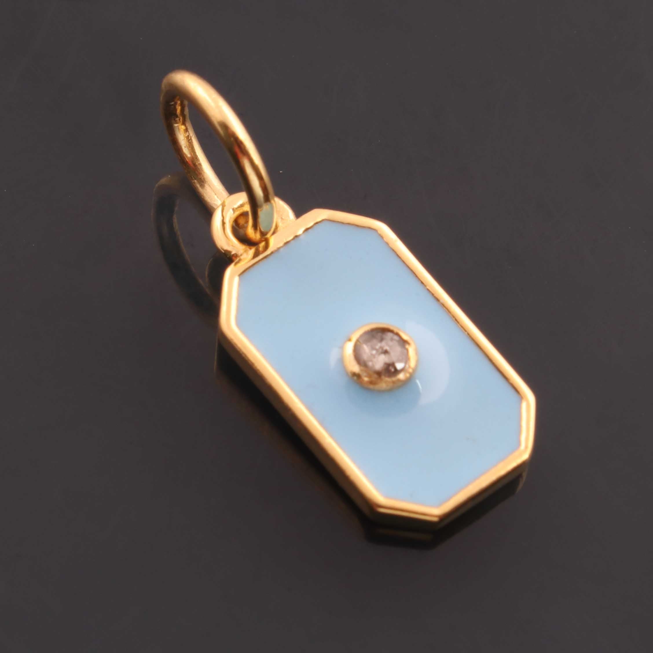 1 Pc Pave Diamond Enamel Pendant, Yellow Gold Vermeil, 17mmx8mm Bakelite Pendant in 10 Colors, You Choose PDC00169