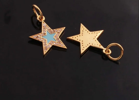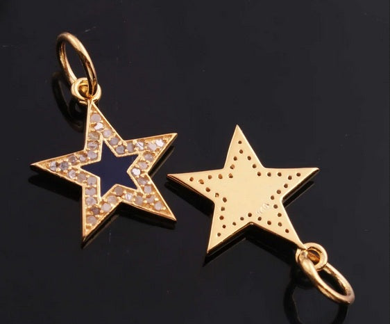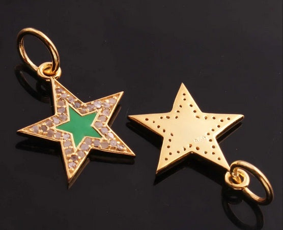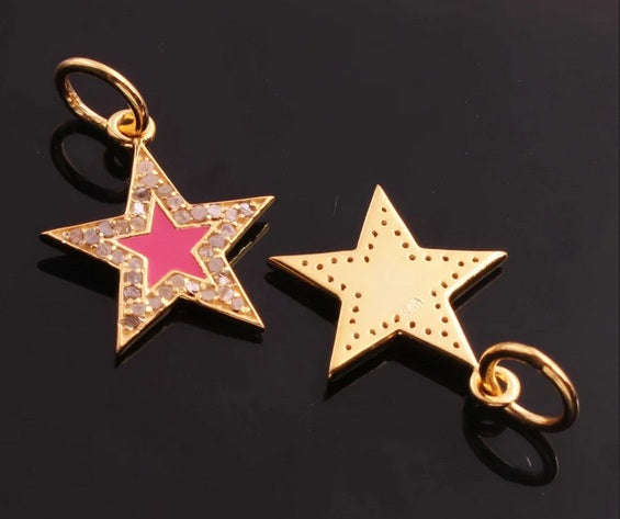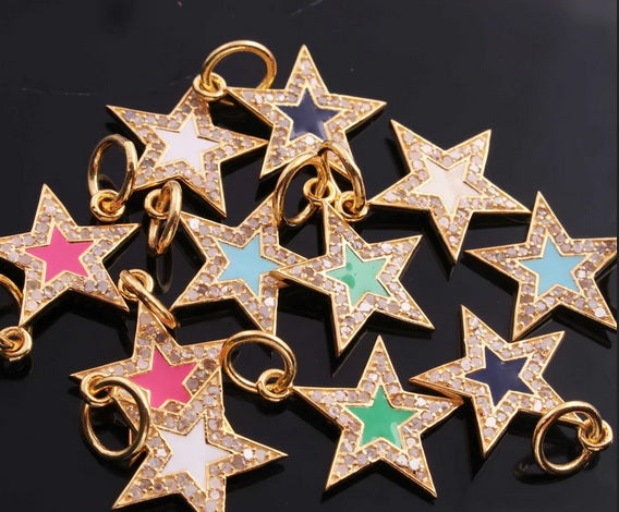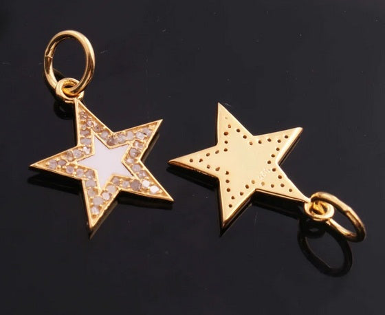 1 Pc Pave Diamond Enamel Star Yellow Gold Vermeil Pendant 20mmx17mm - Bakelite Star Pendant PDC00161
