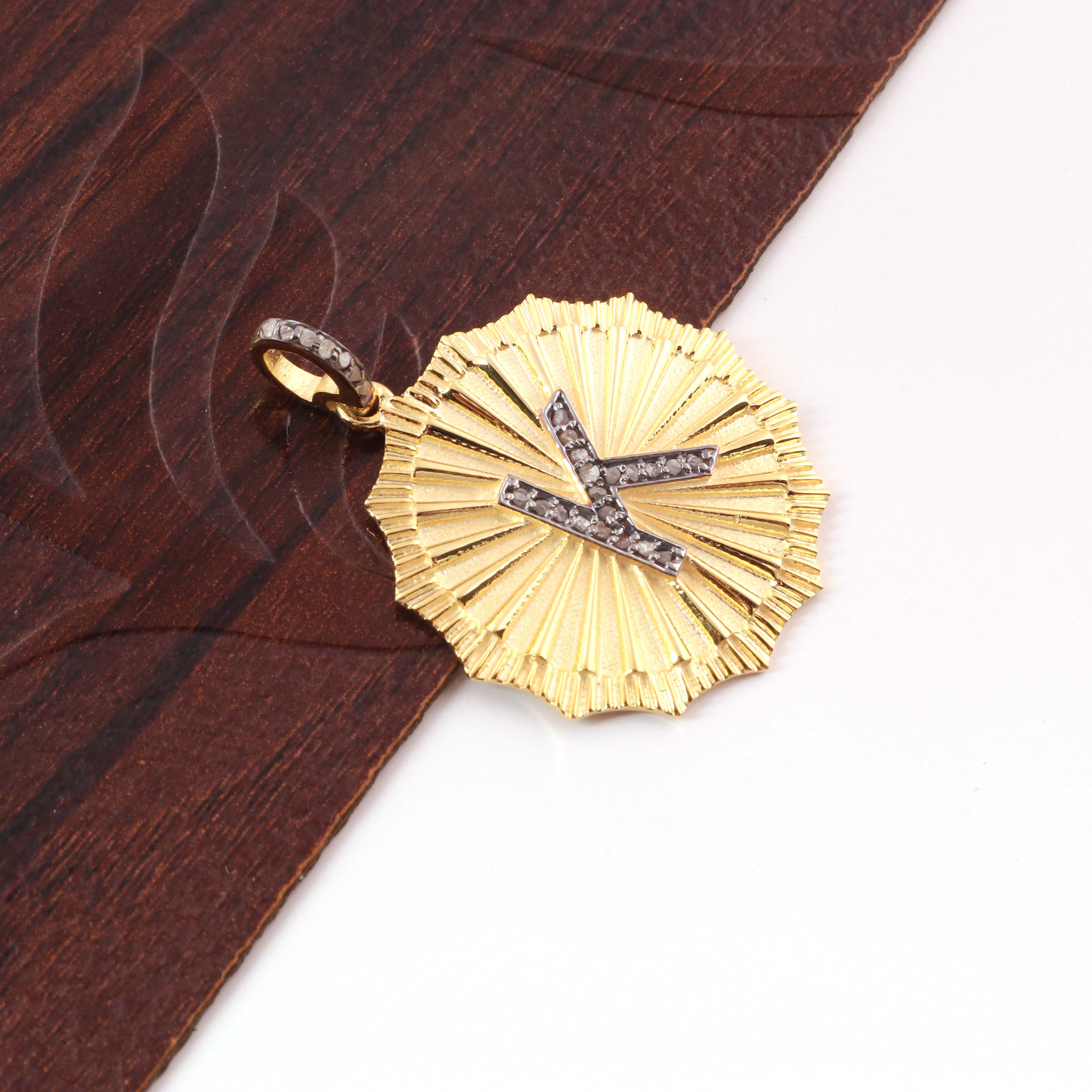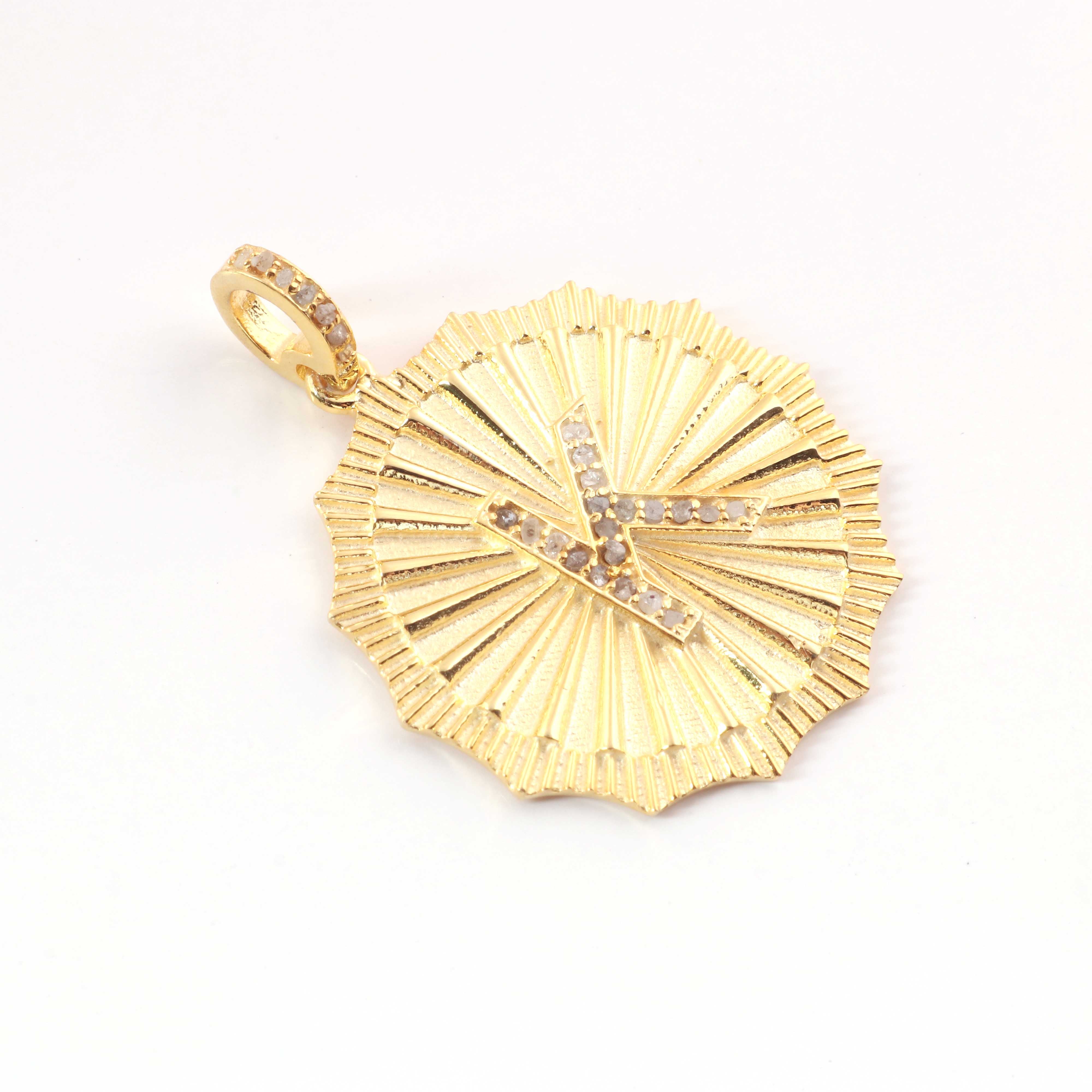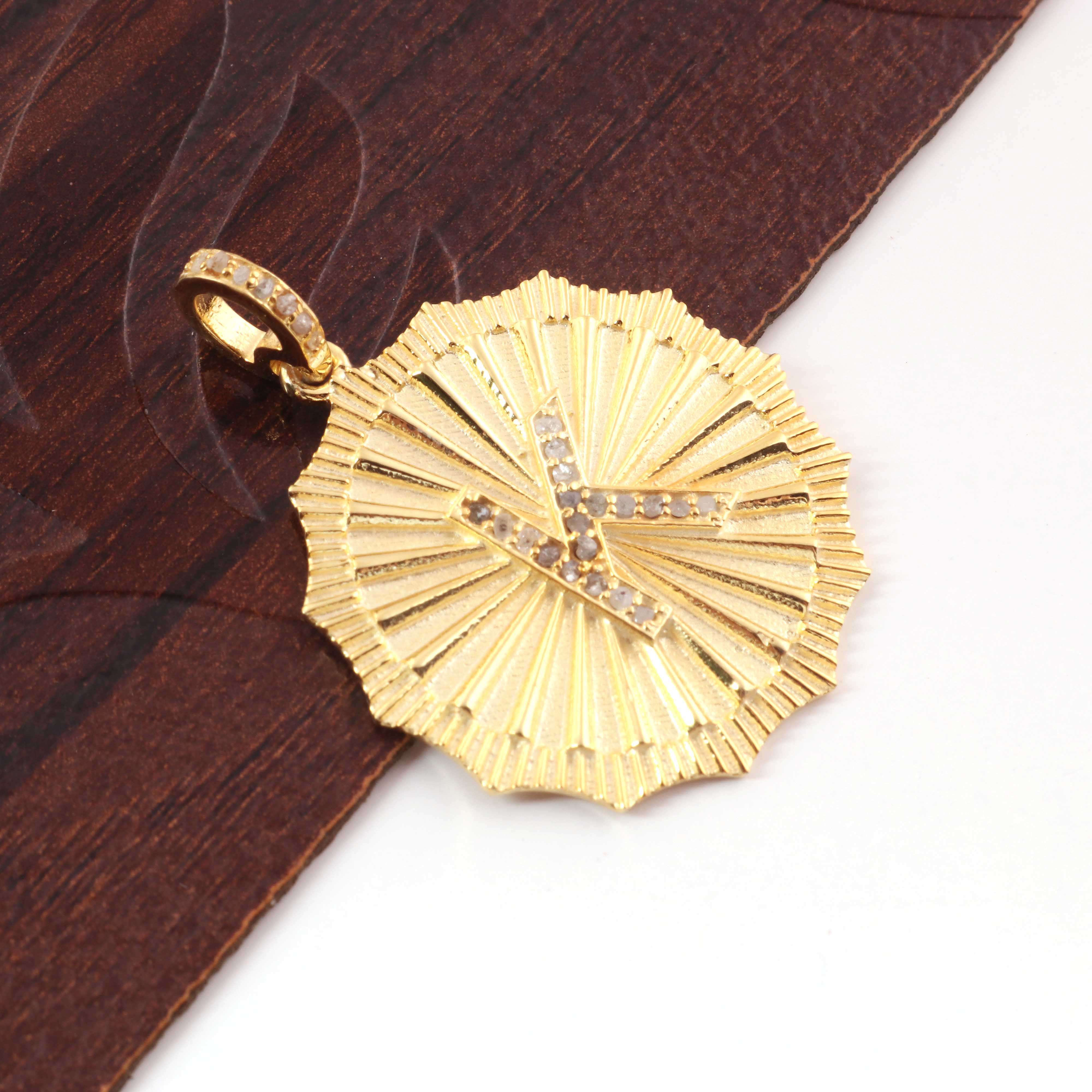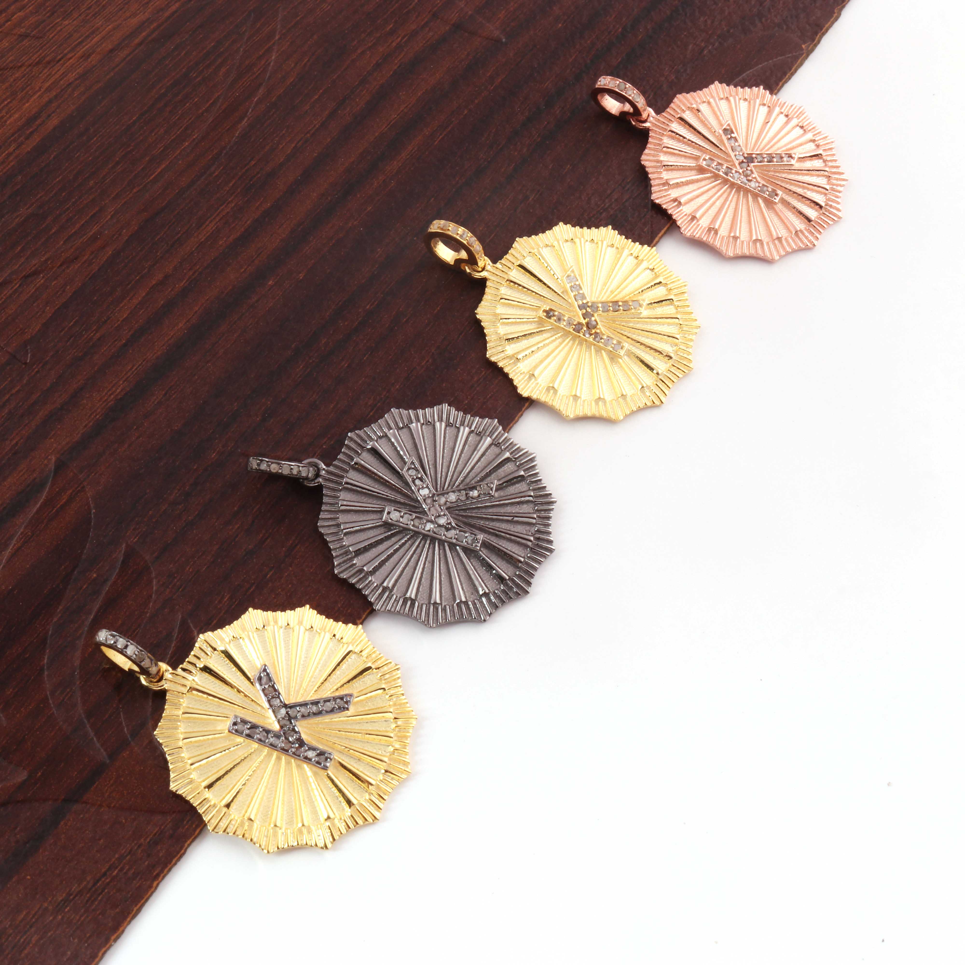 1 Pc Pave Diamond "K" Alphabet Round Charm Pendant - 925 Sterling Silver/ Vermeil & Yellow/Rose Gold Vermeil- "K" Alphabet Round Pendant 32mmx28mm pd1746