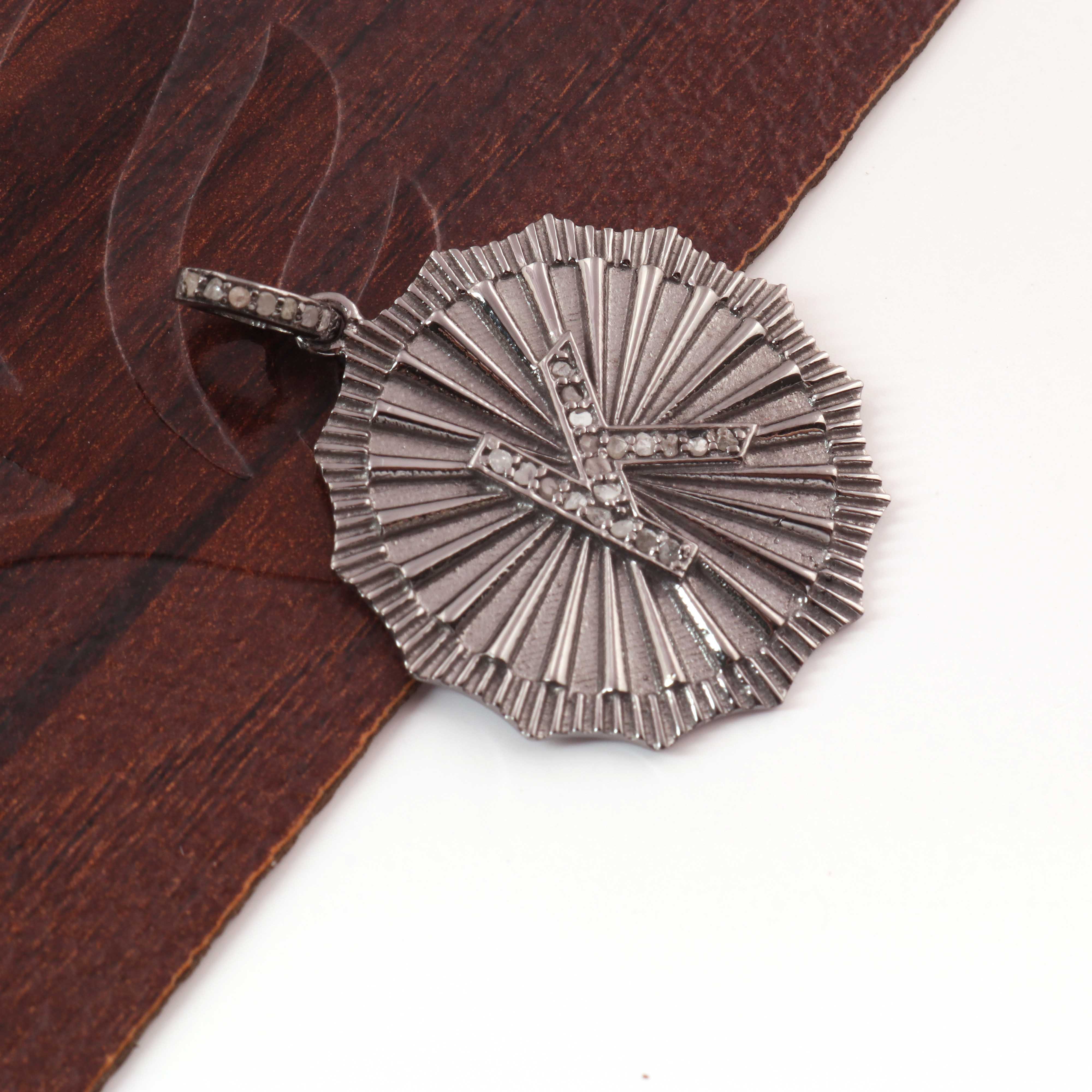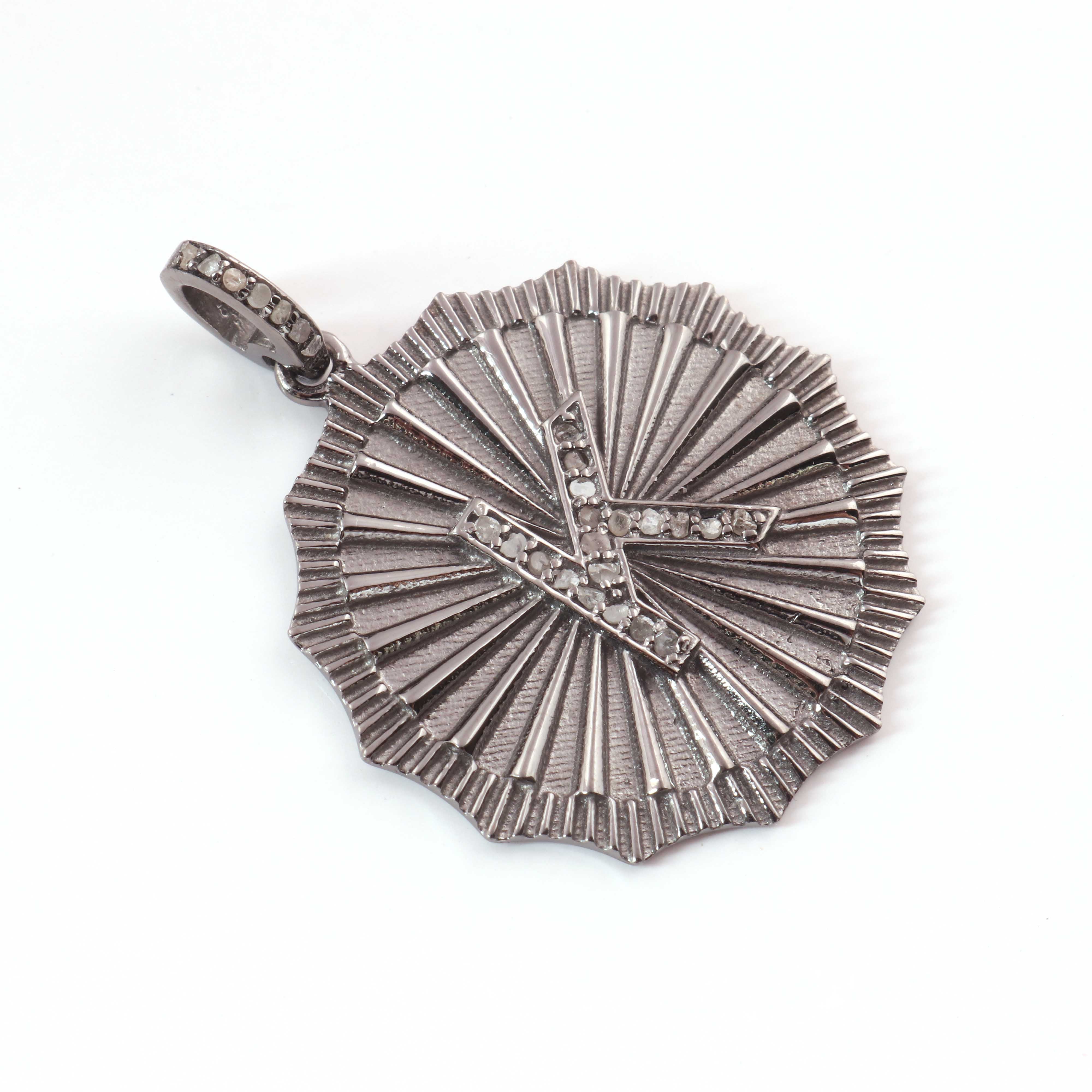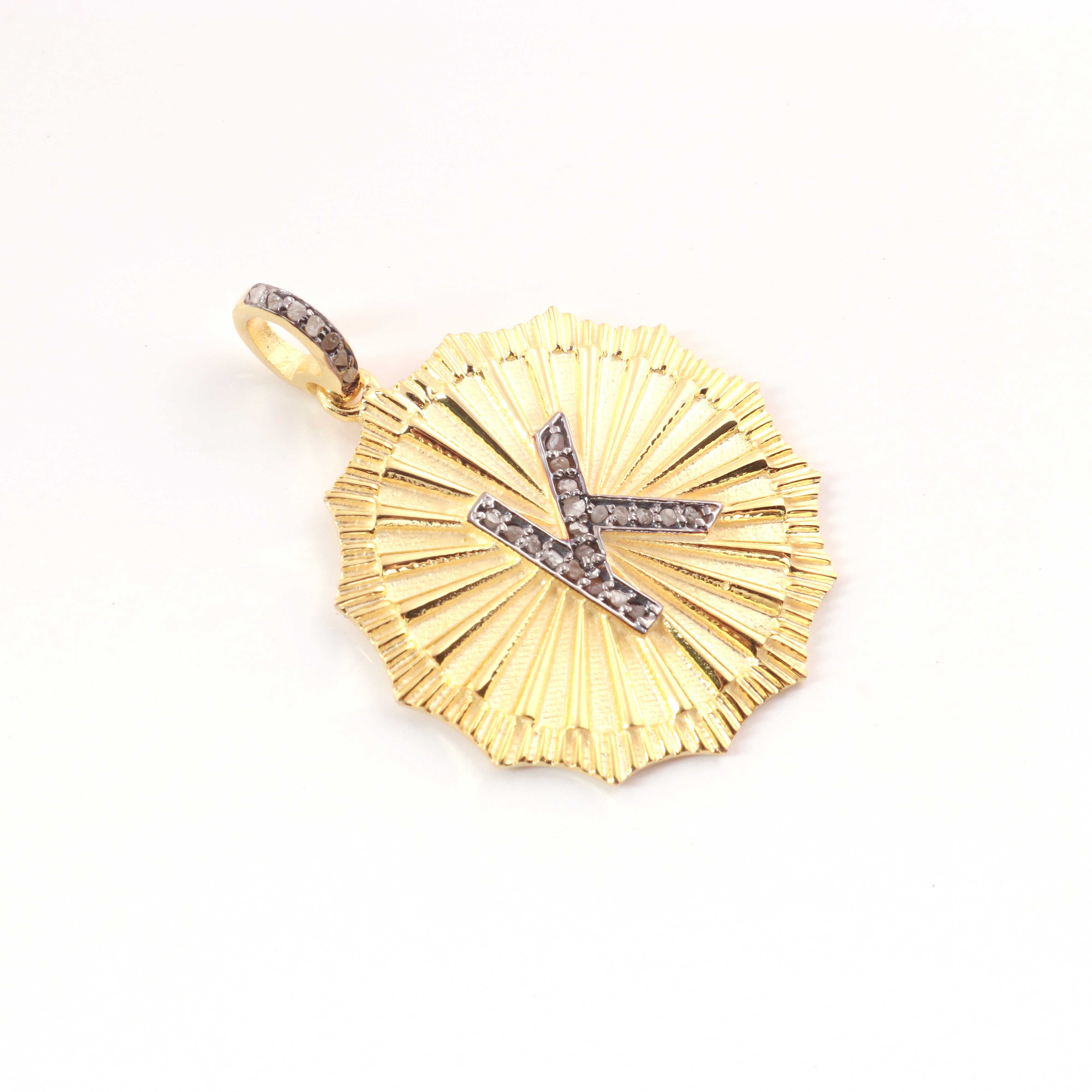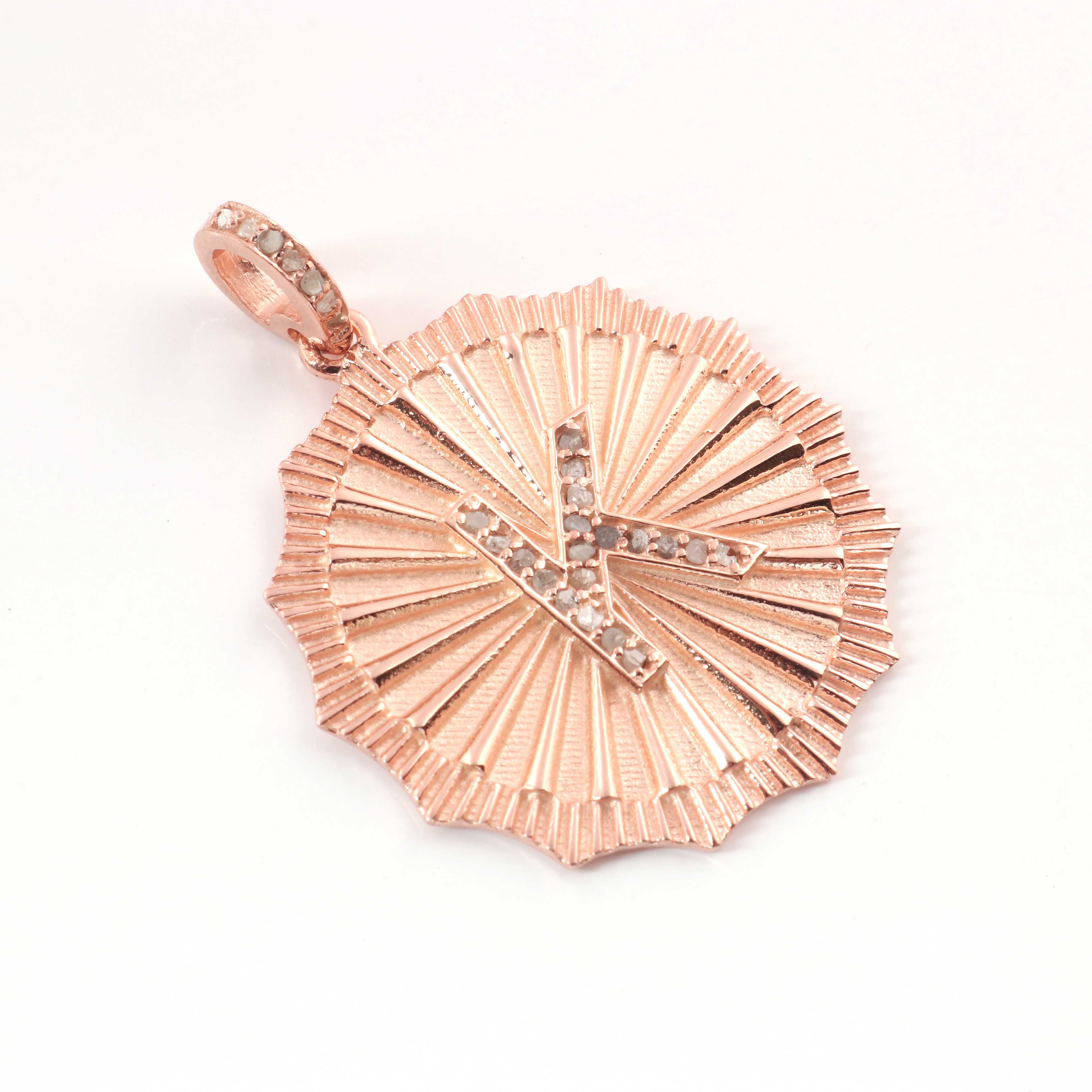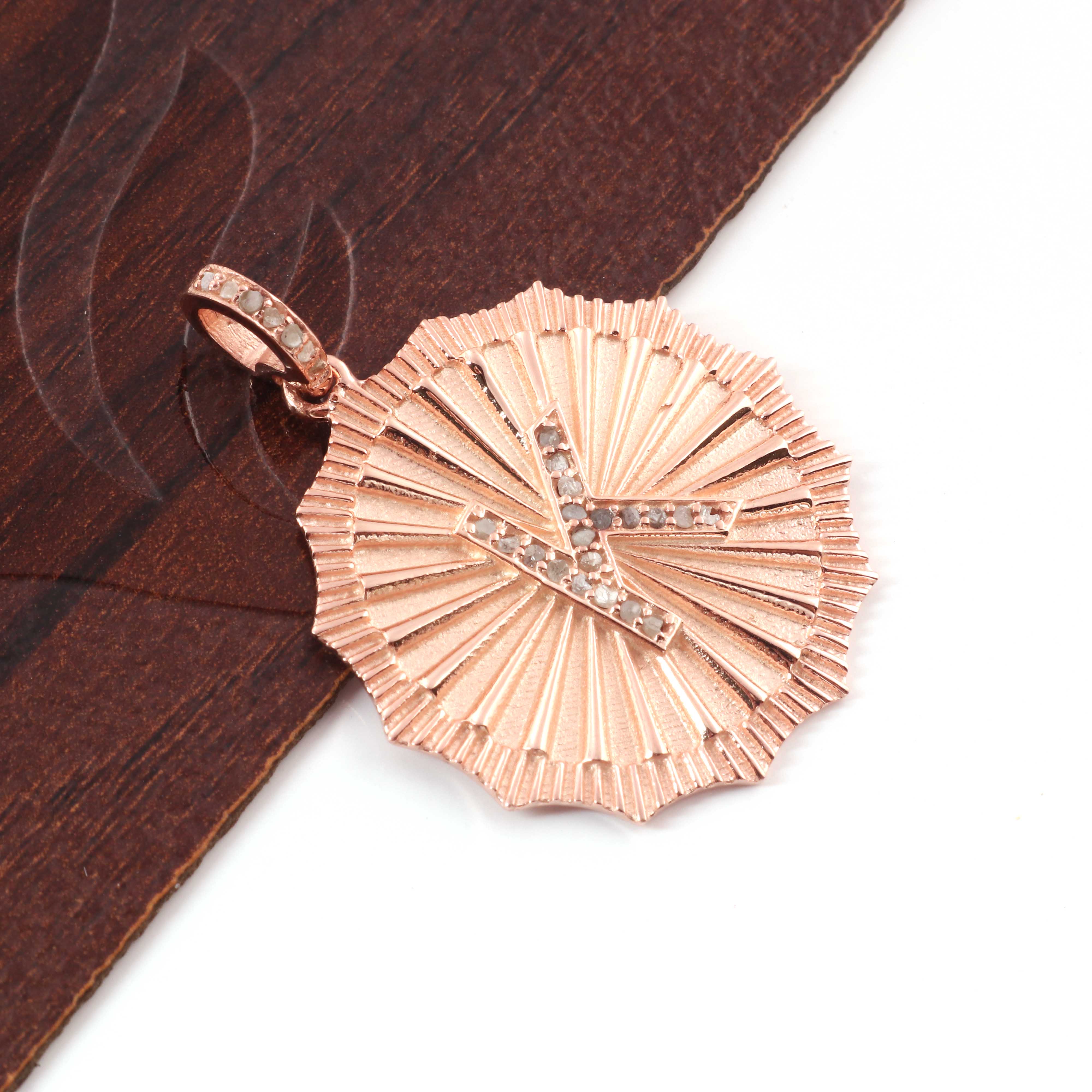 1 Pc Pave Diamond "K" Alphabet Round Charm Pendant - 925 Sterling Silver/ Vermeil & Yellow/Rose Gold Vermeil- "K" Alphabet Round Pendant 32mmx28mm pd1746