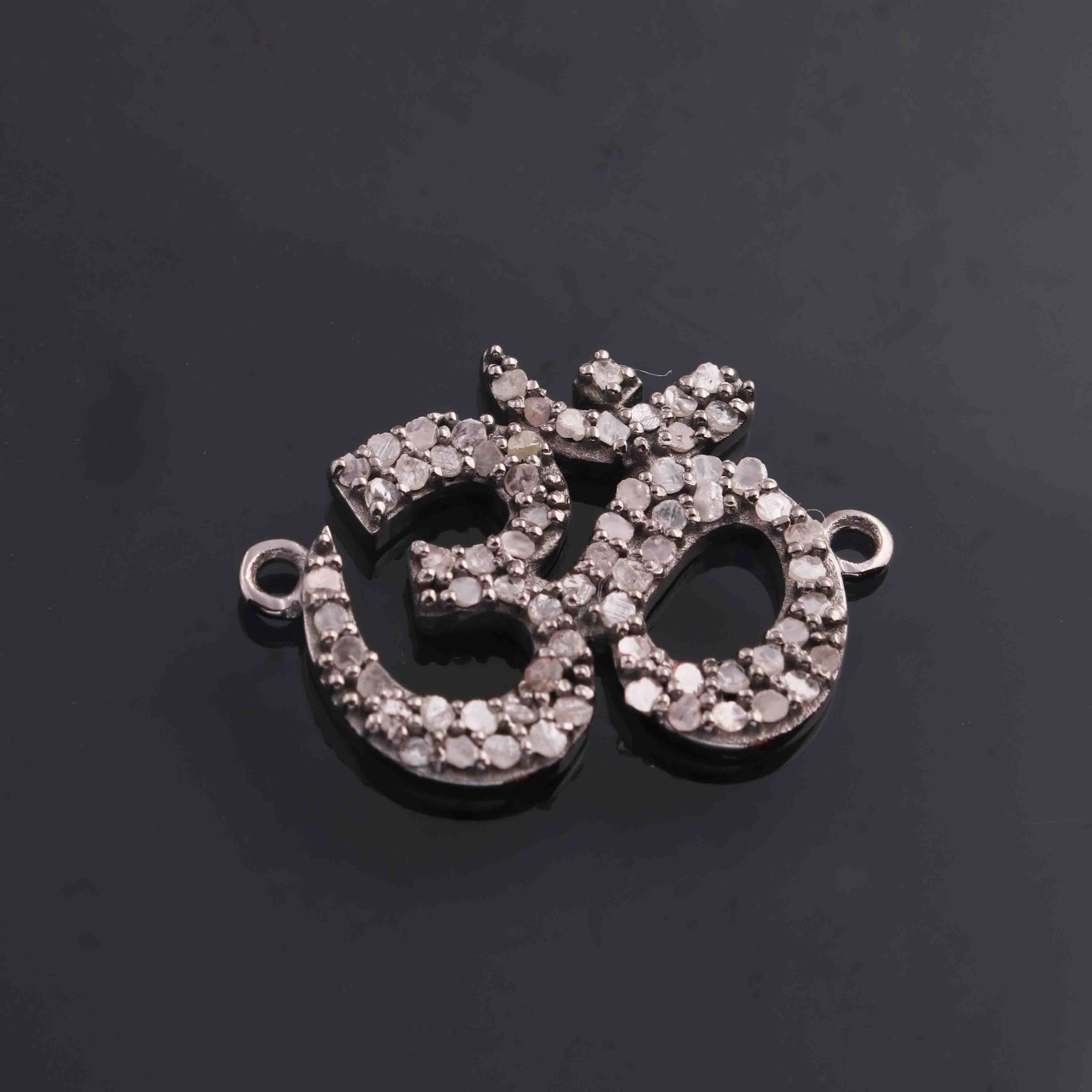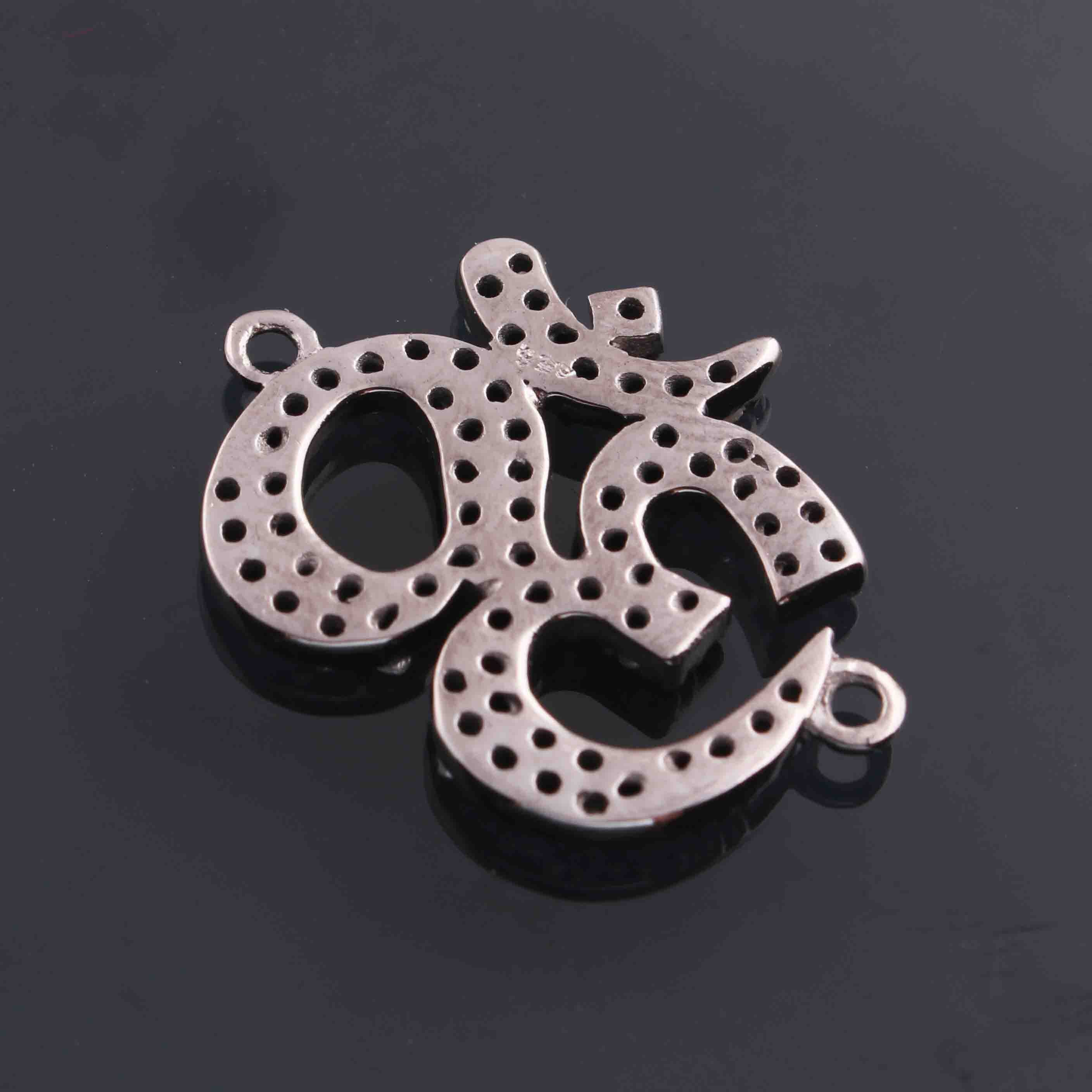 1 Pc Pave Diamond "Om" Symbol Charm Over 925 Sterling Silver "Om" Symbol Pendant 22mmX17mm PD1938