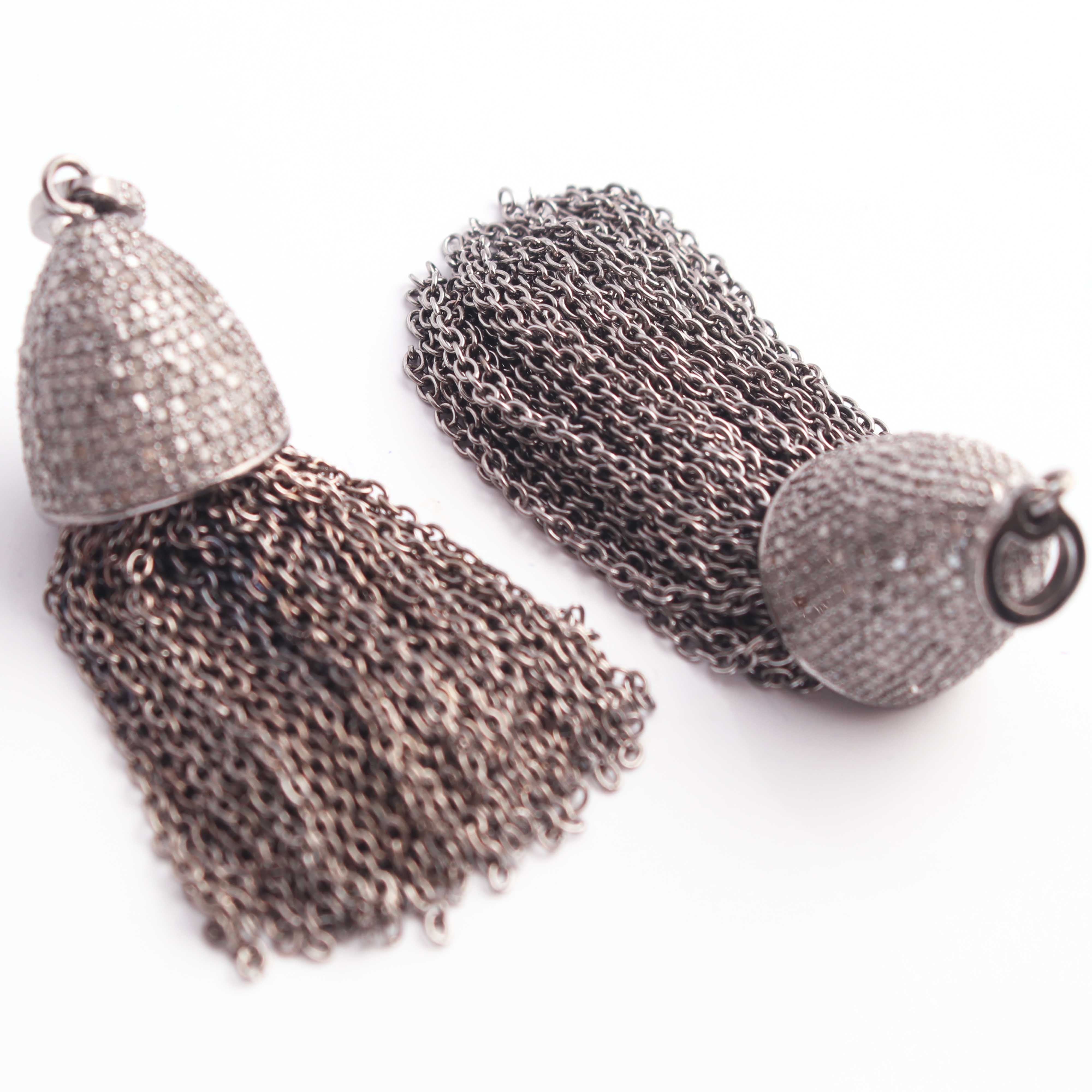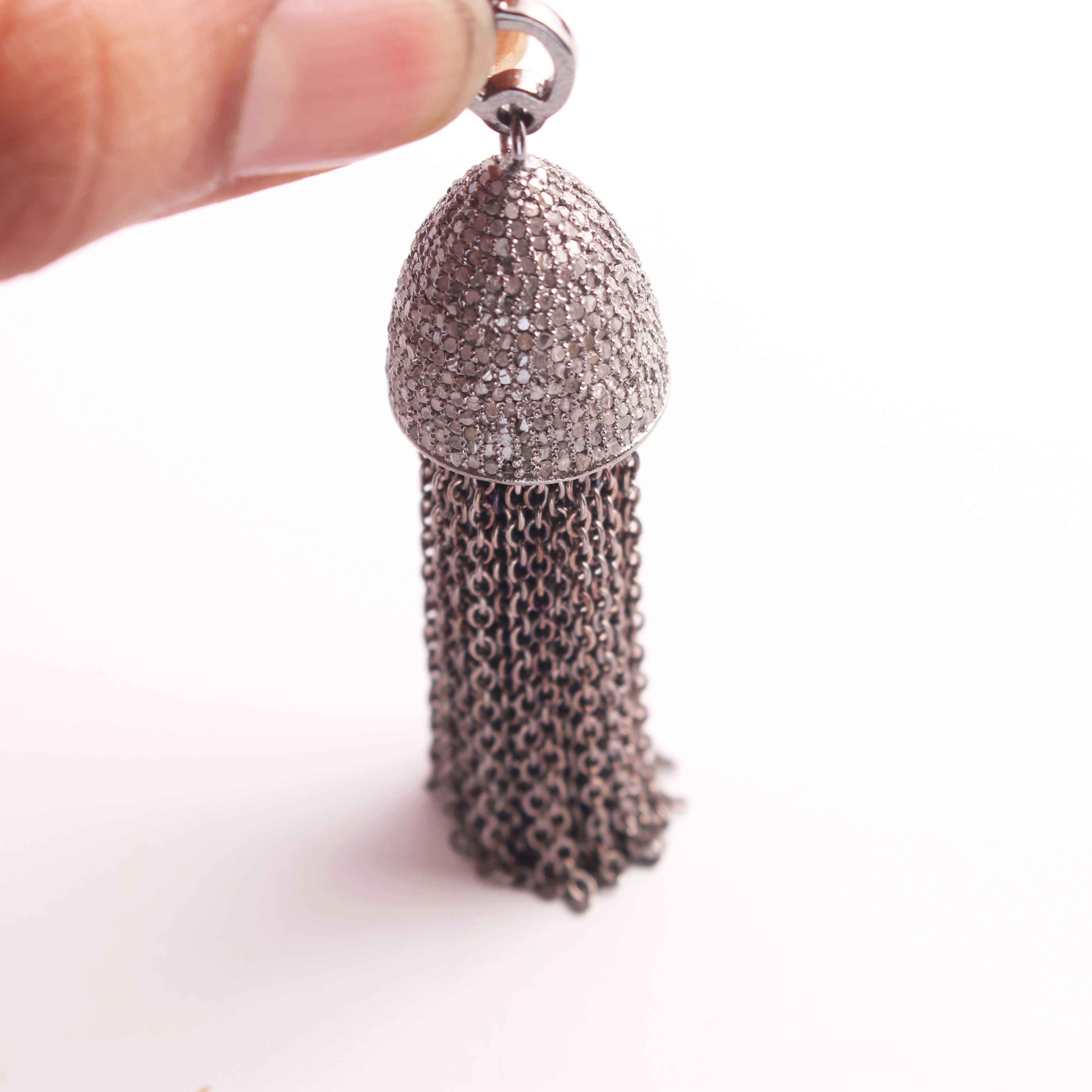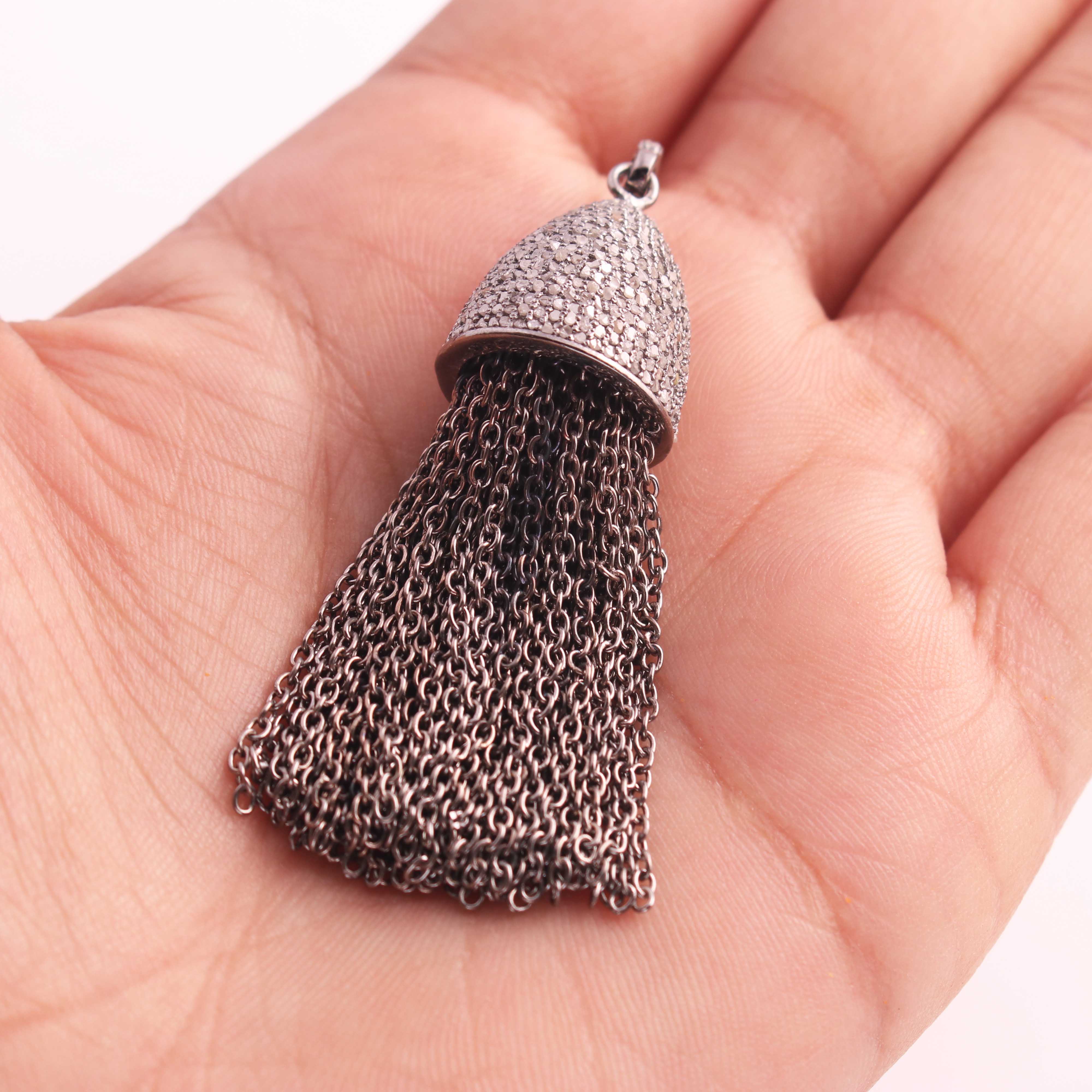 1 Pc Pave Diamond Tassel Pendant -925 Sterling Silver - Diamond Tassel Pendant 2 Inches PD227