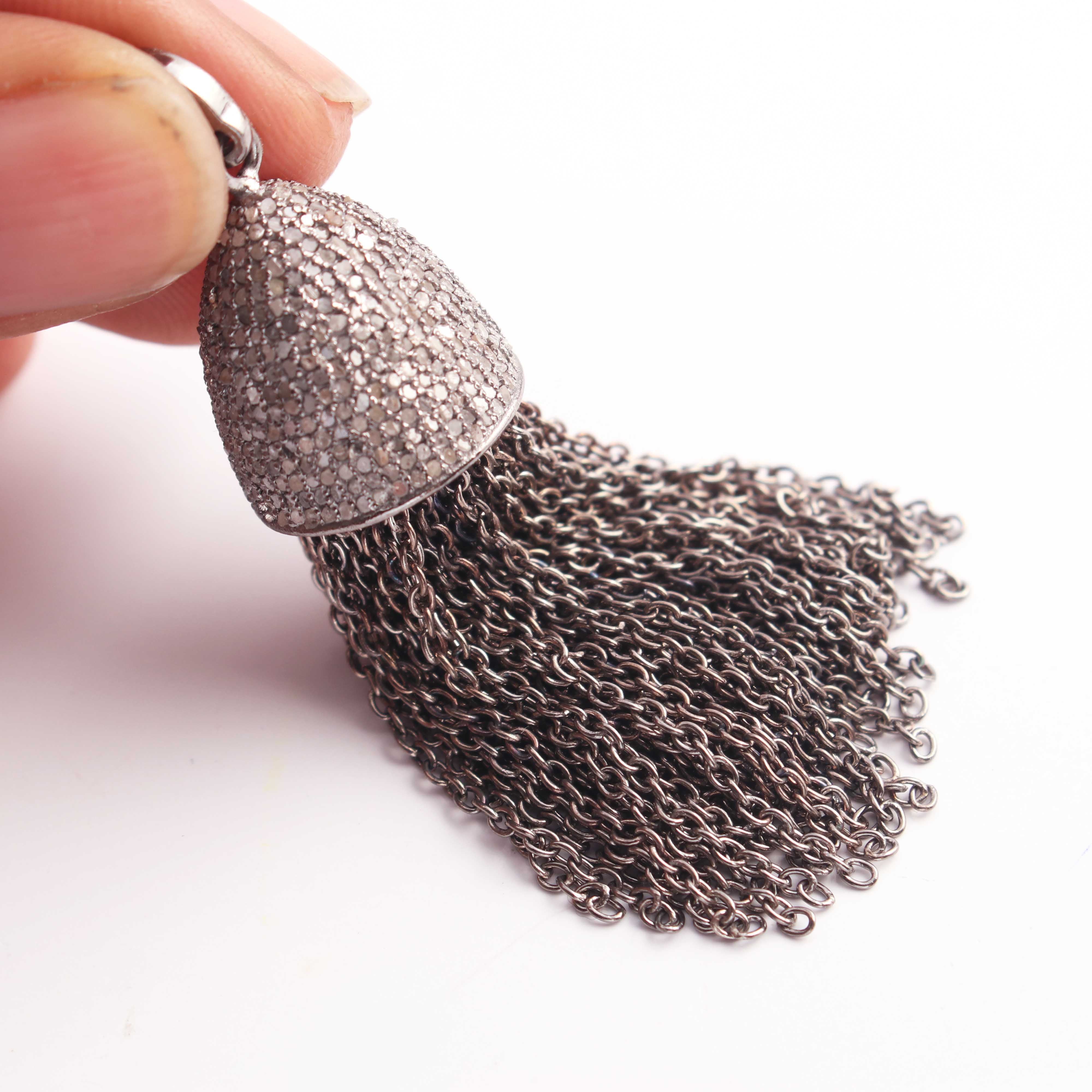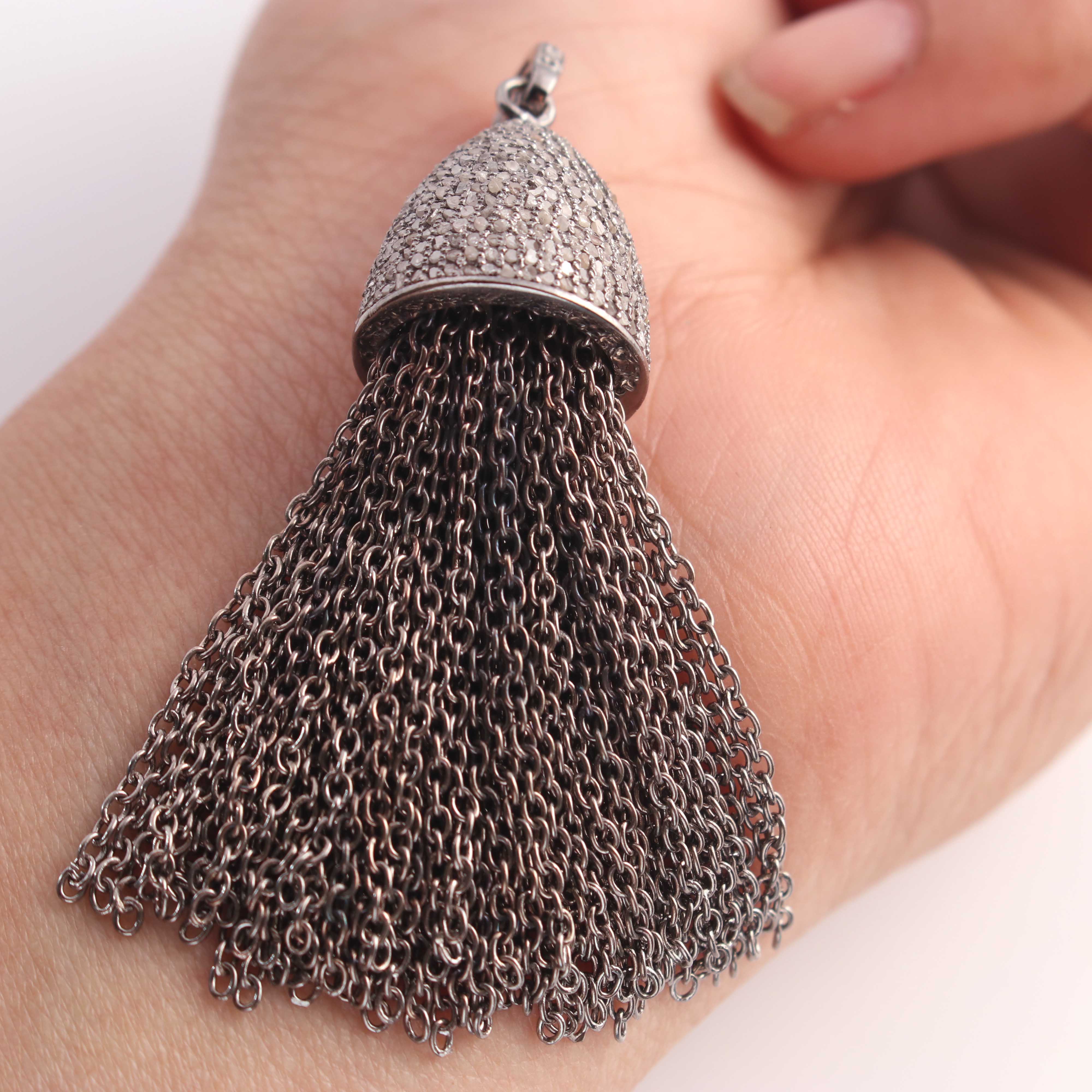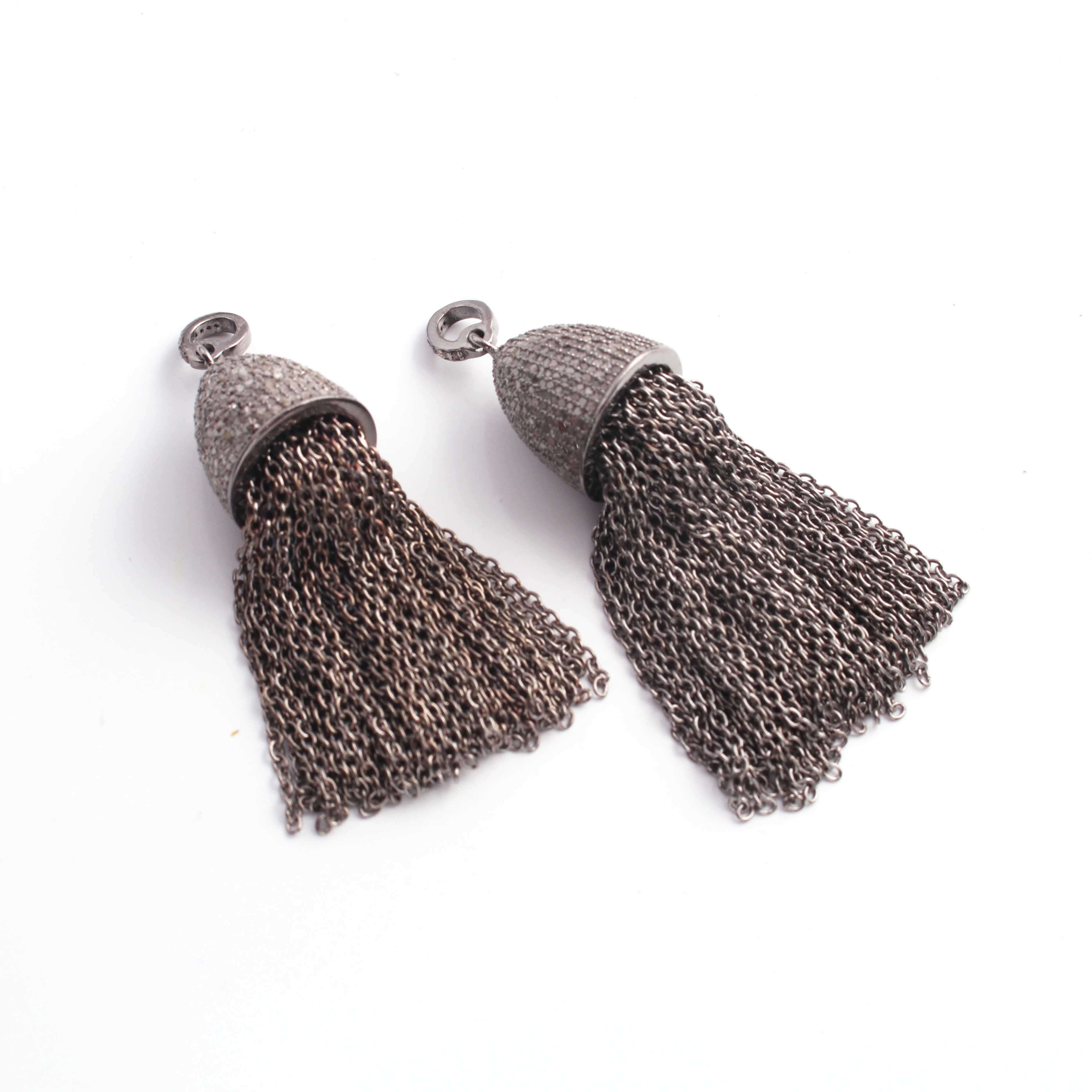 1 Pc Pave Diamond Tassel Pendant -925 Sterling Silver - Diamond Tassel Pendant 2 Inches PD227