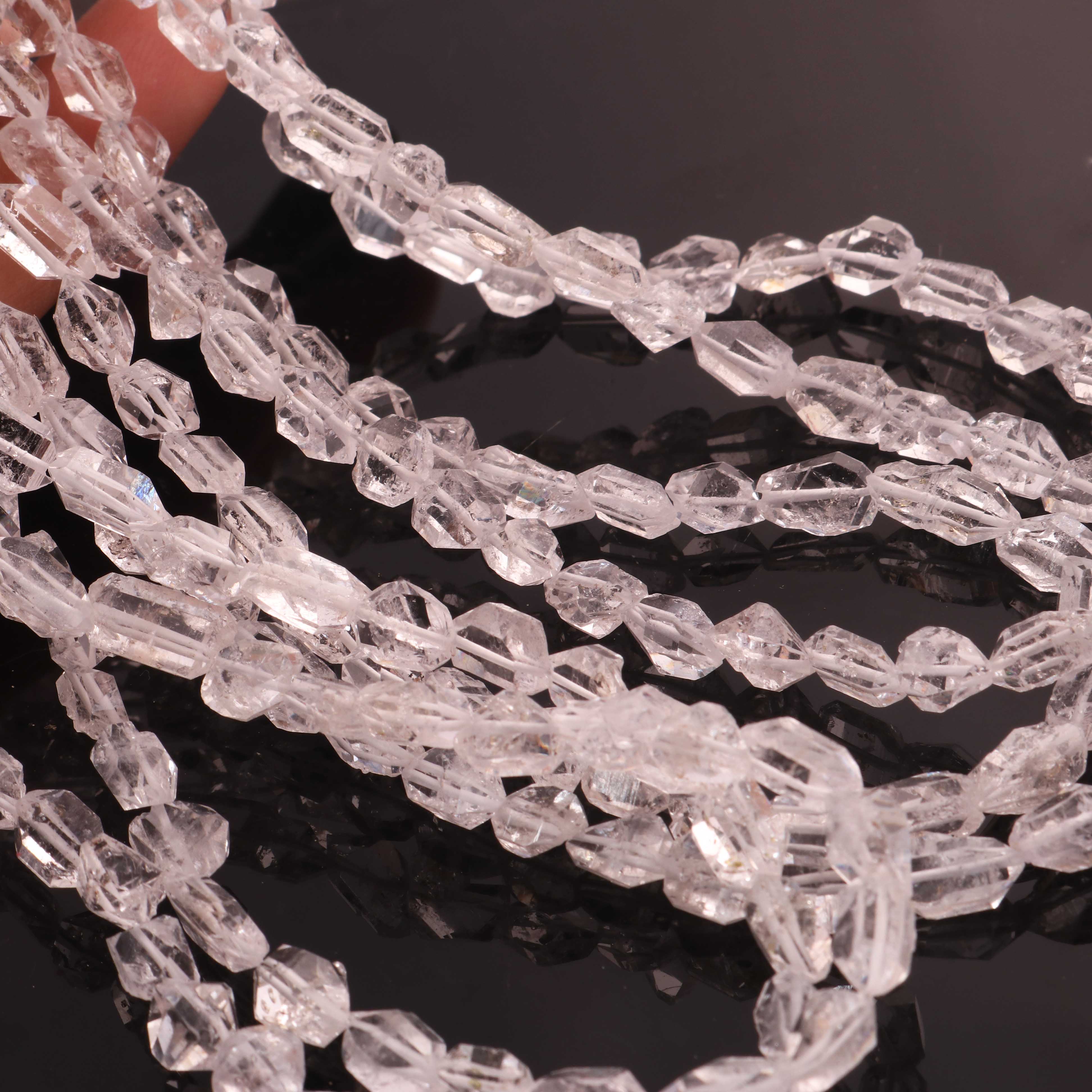 1 Strand AAA Clear White Herkimer Diamond Quartz Nuggets , 6mmx6mm-11mmx5mm 15 Inches  Center Drilled Beads - Herkimer Rough Stone BR03563