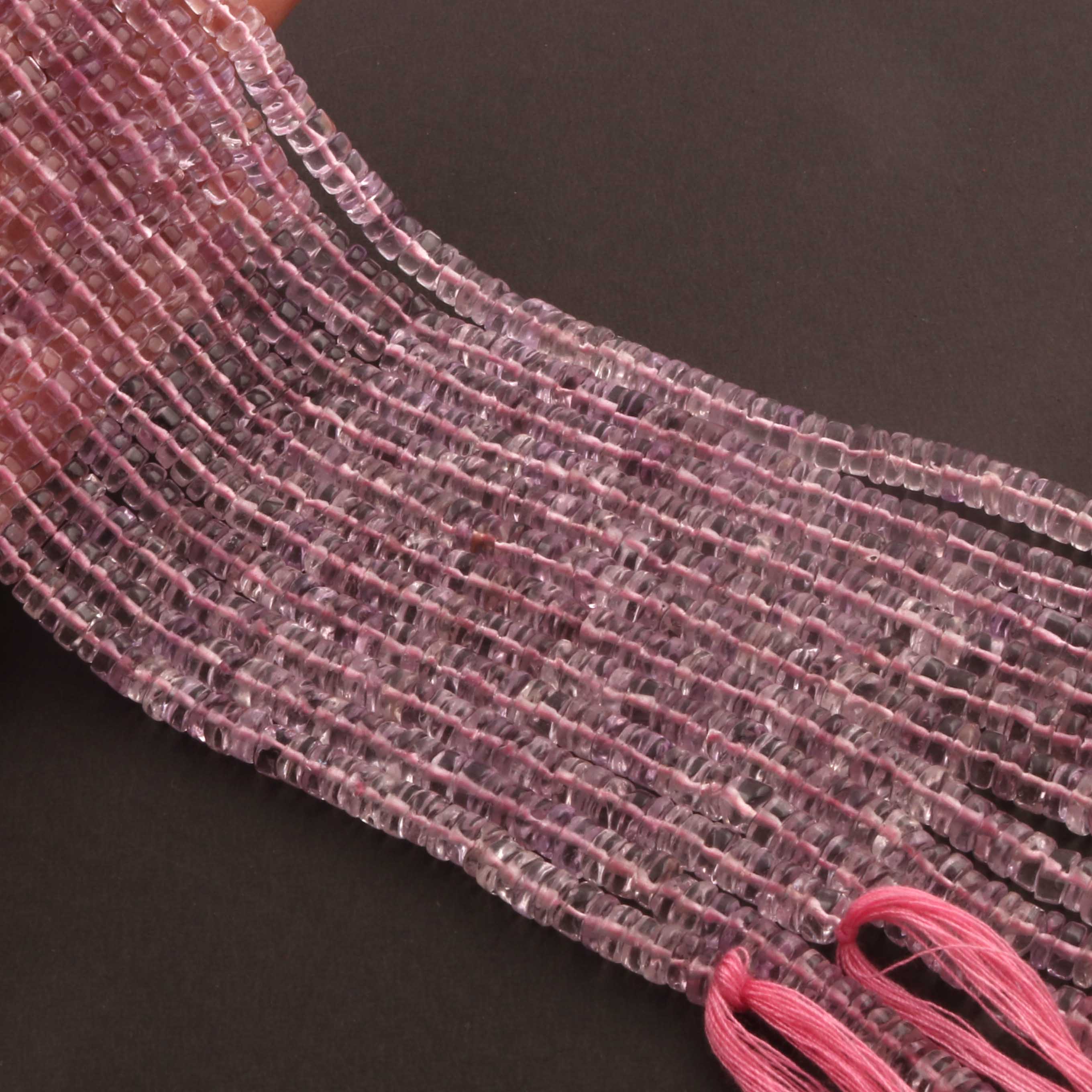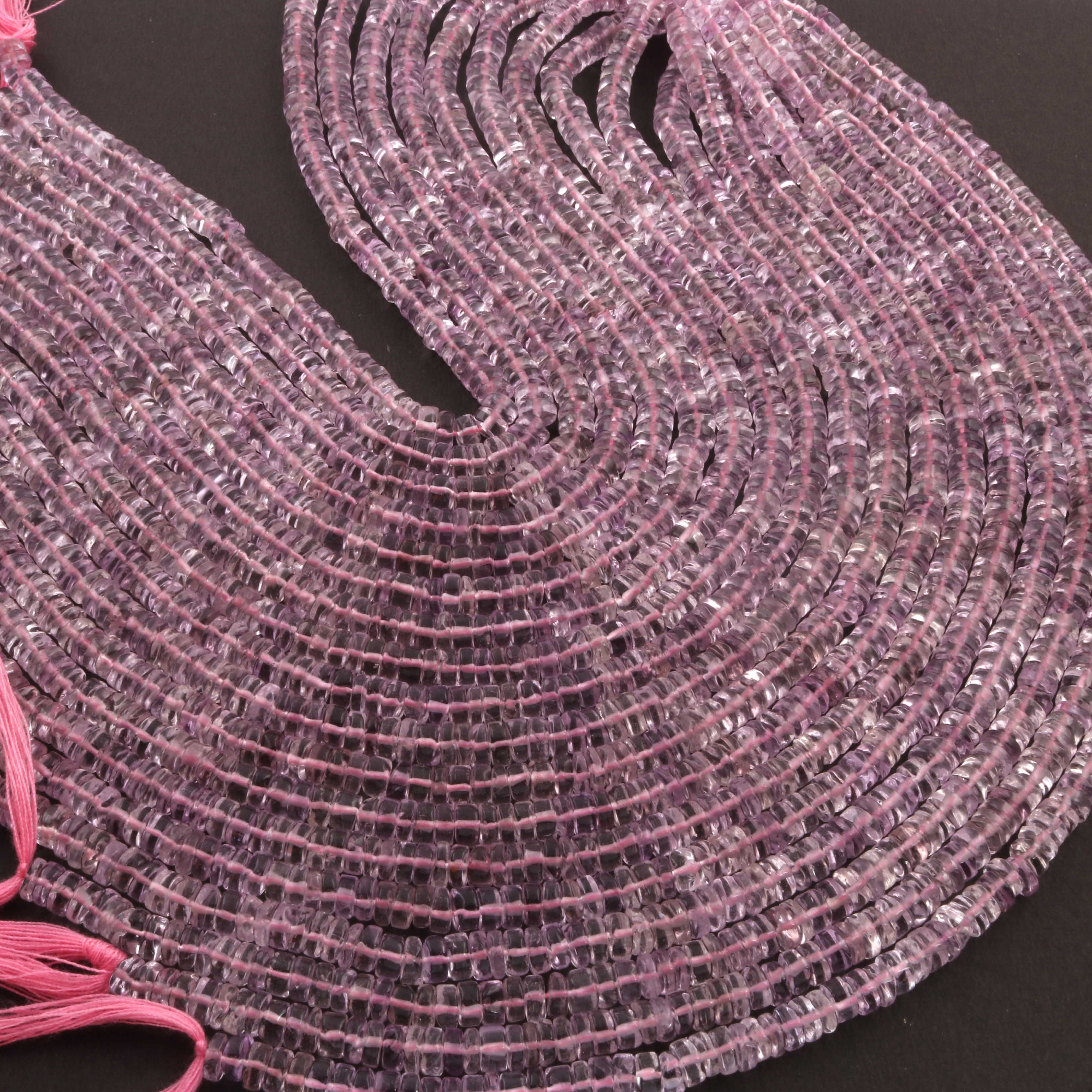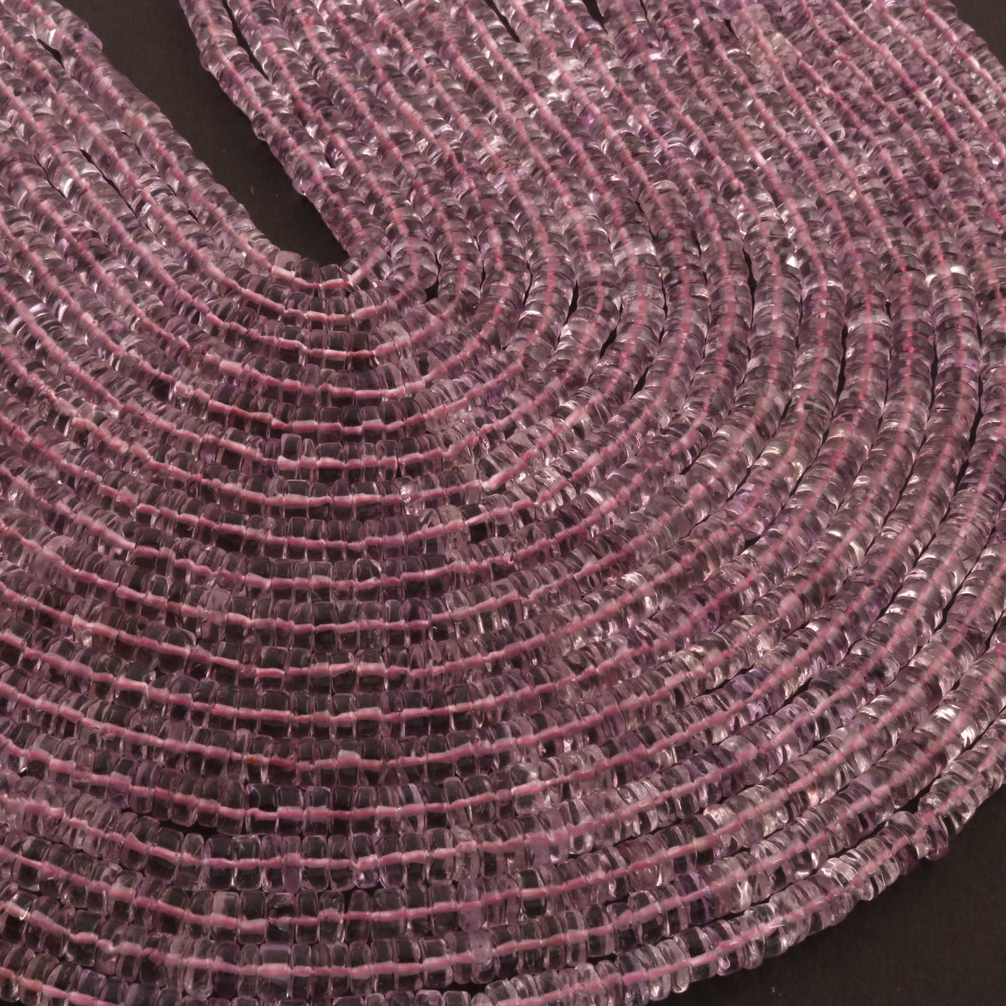 1 Strand AAA+ Pink Amethyst Smooth Tyre, Wheel Shape Beads - Heishi Shape Gemstone Beads 6mm-12 Inches BR03922