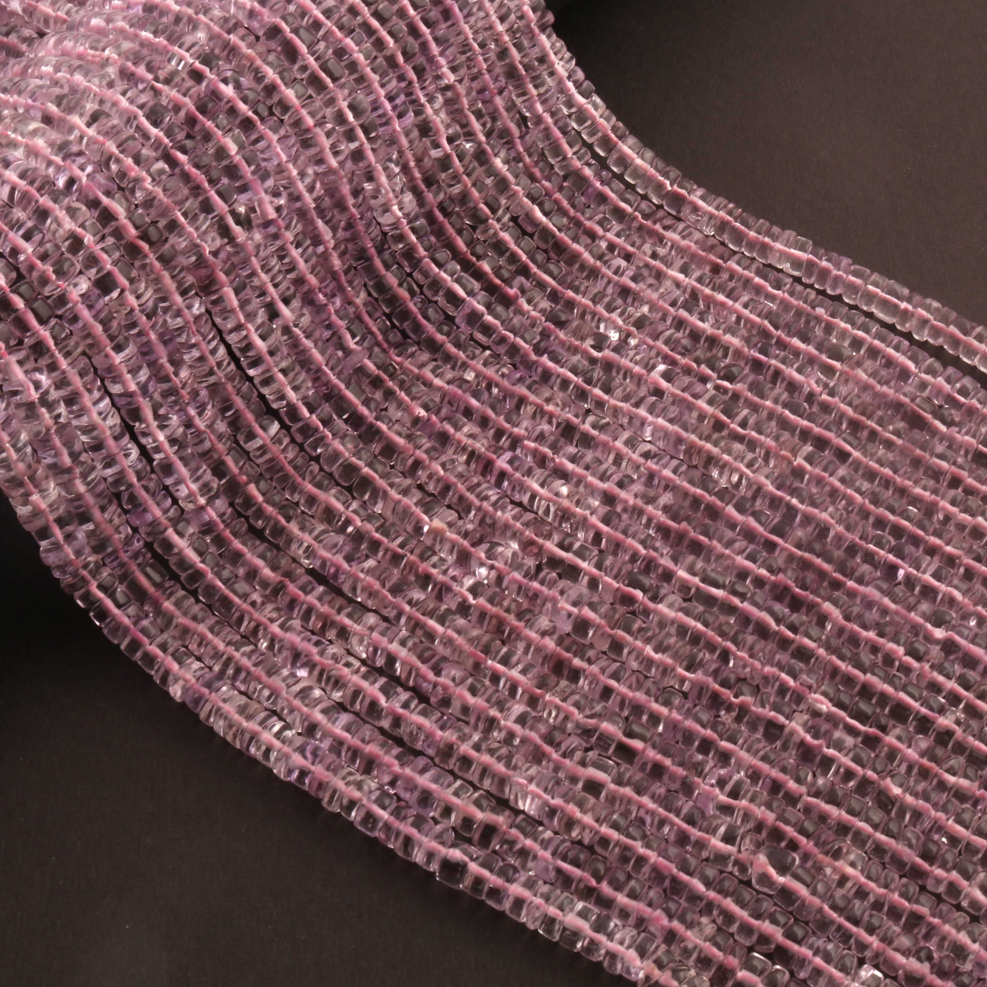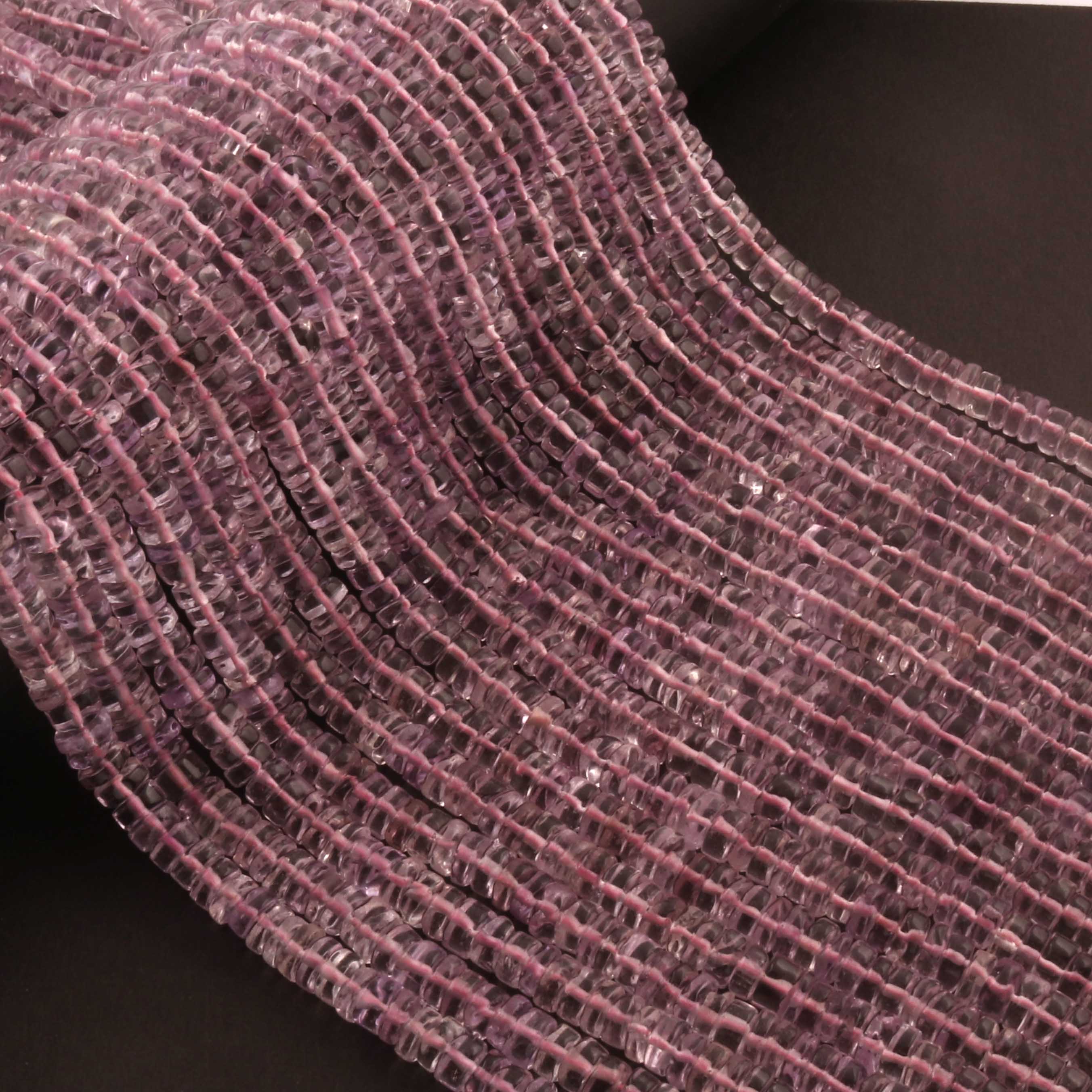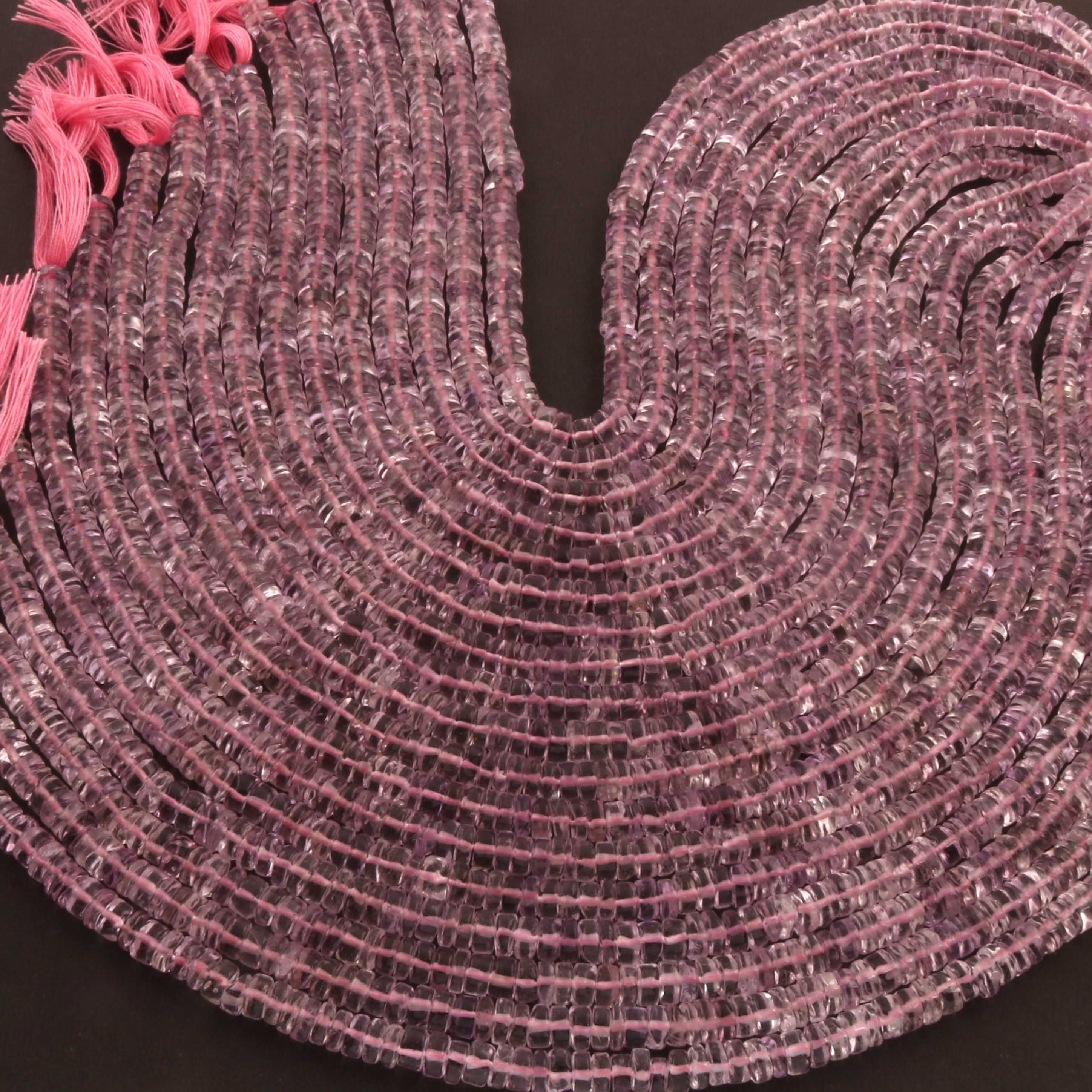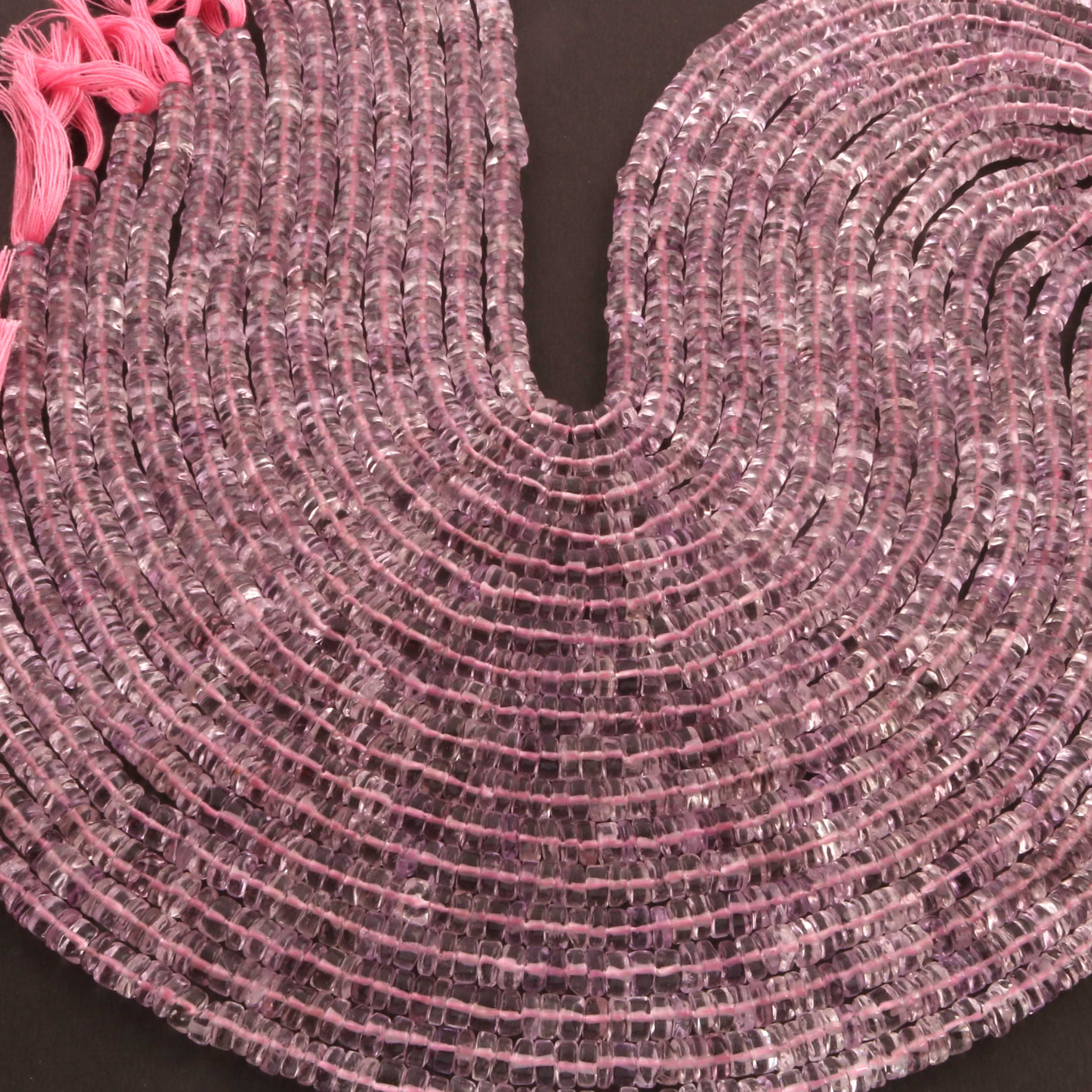 1 Strand AAA+ Pink Amethyst Smooth Tyre, Wheel Shape Beads - Heishi Shape Gemstone Beads 6mm-12 Inches BR03922