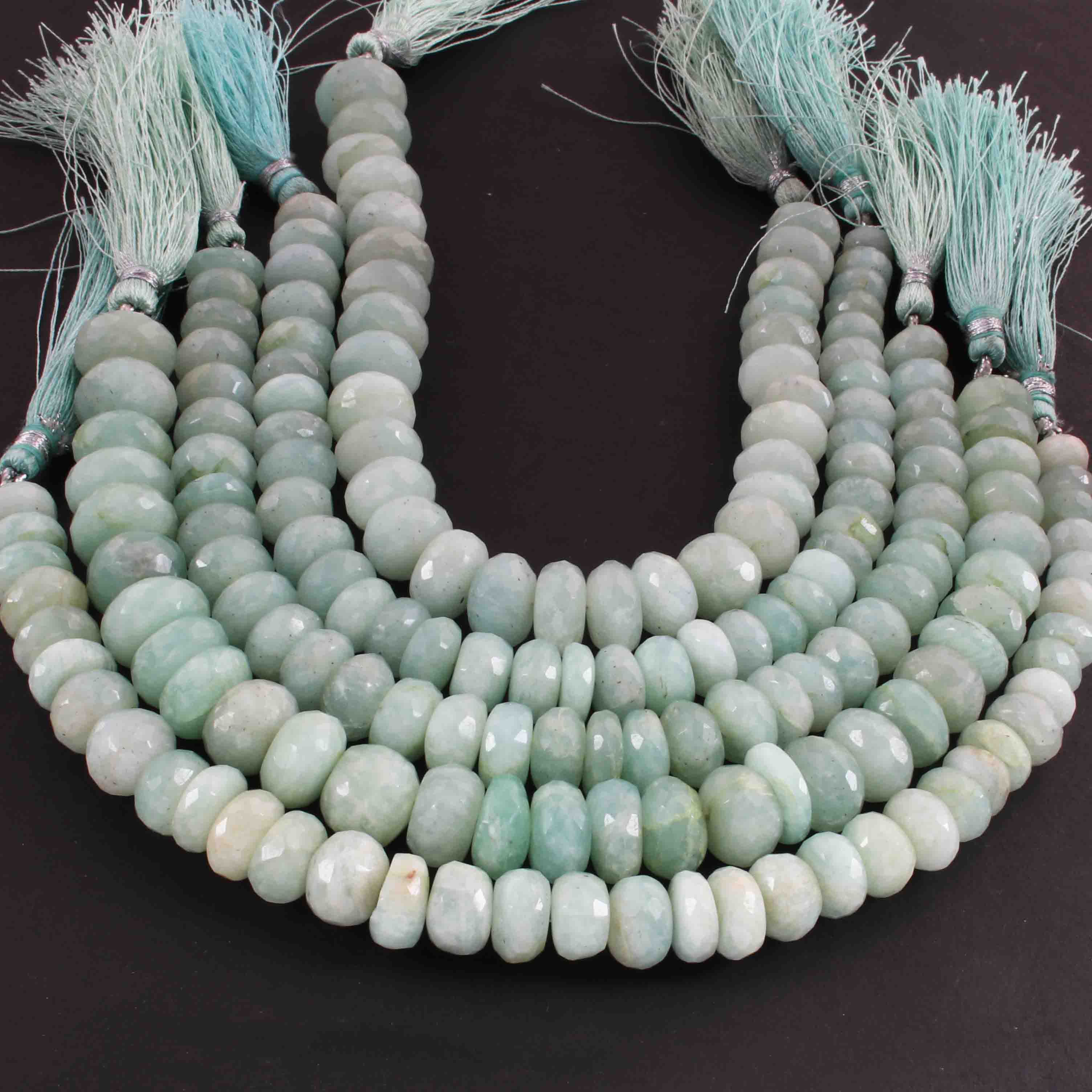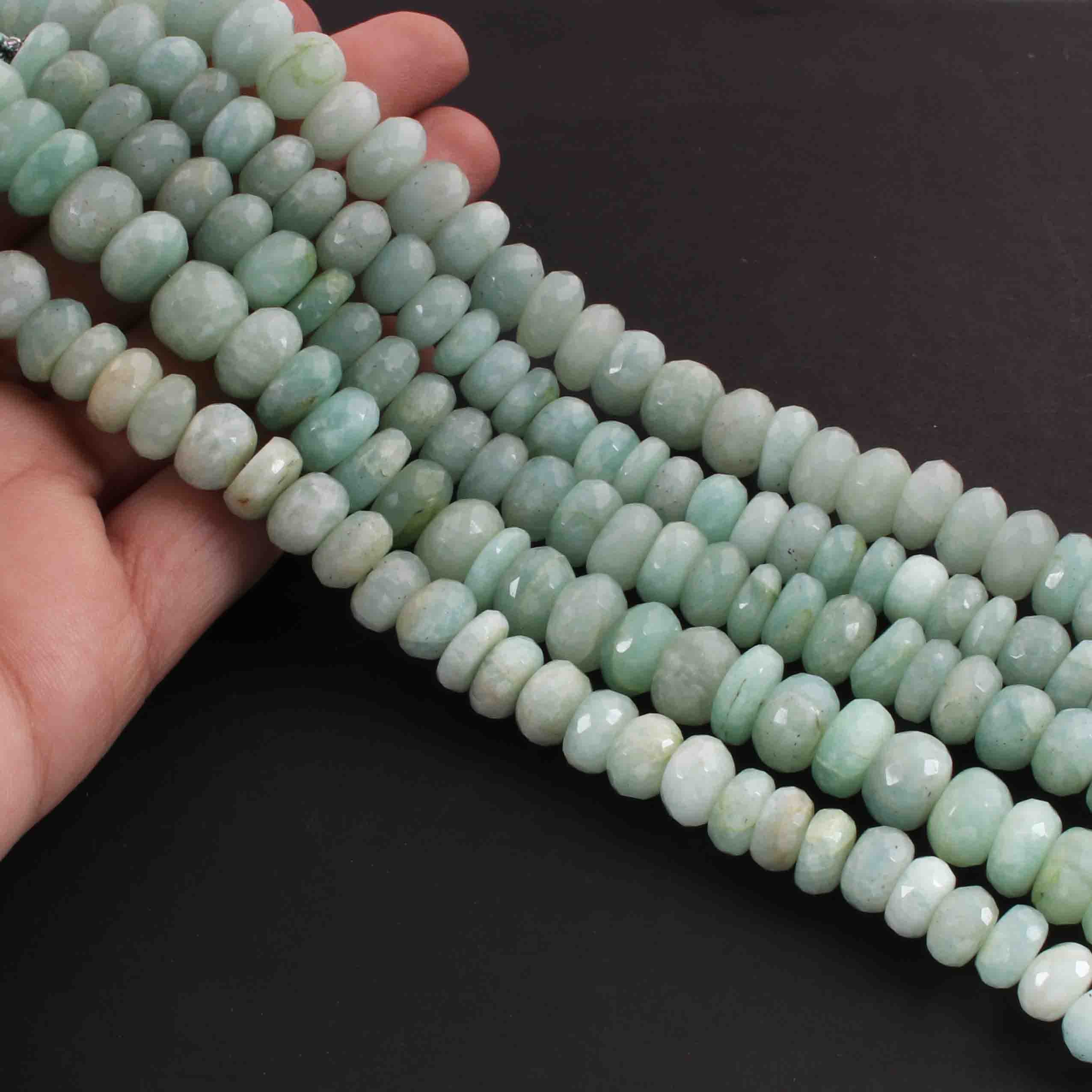 1 Strand Amazonite Round Faceted Rondelles - Round Shape Rondelles - 8mm-13mm 8 Inches BR02139