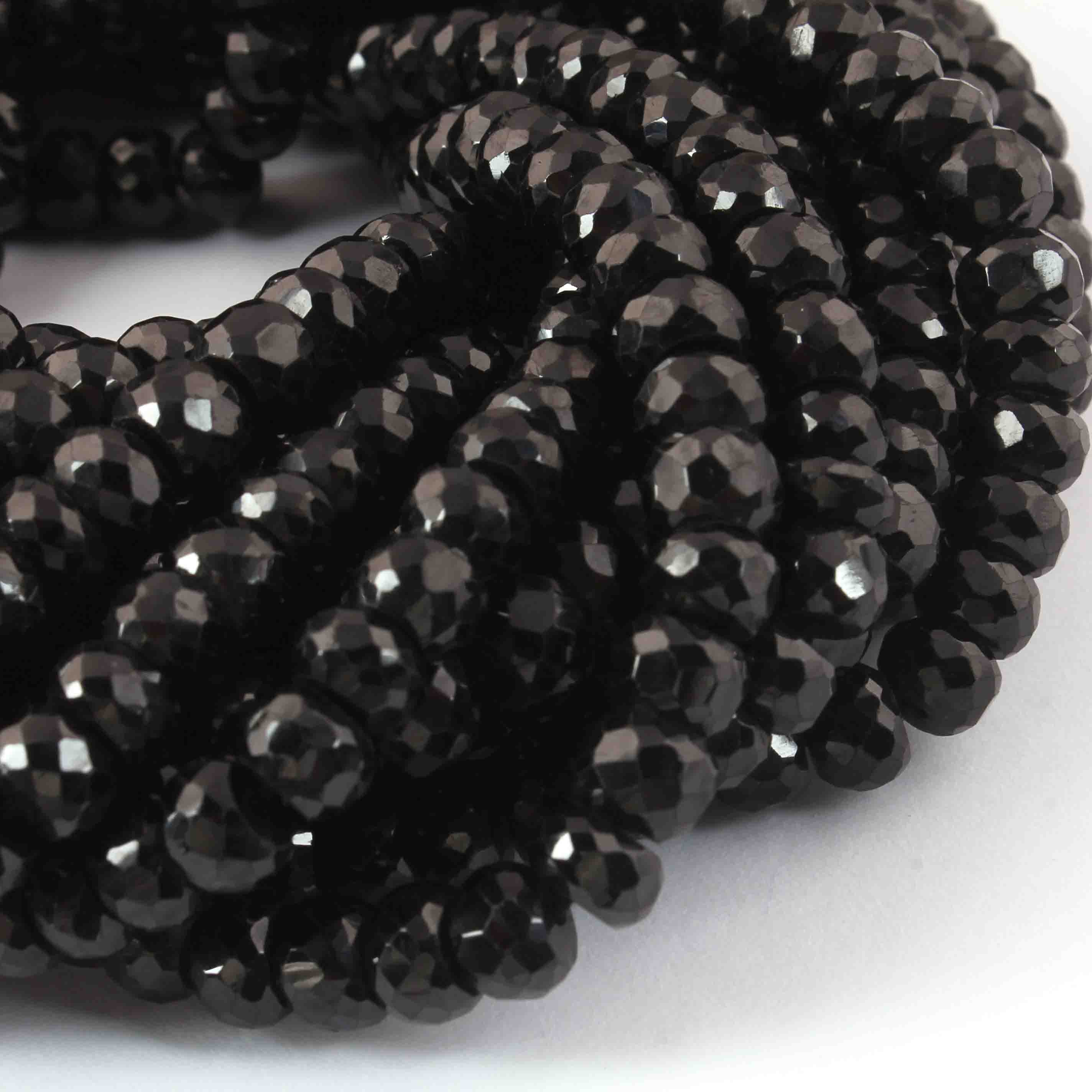 1 Strand Black Onxy Faceted Rondelles Beads -7mm -13 Inches BR0626