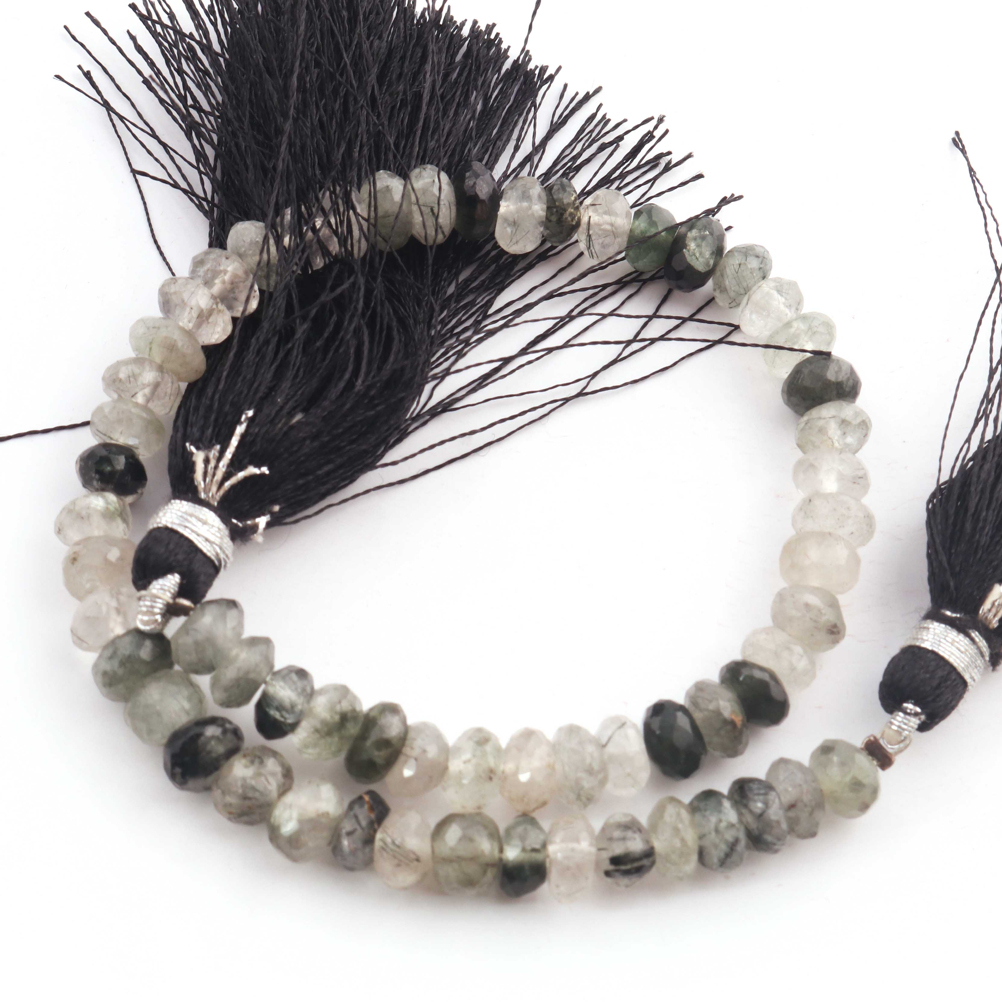 1 Strand Black Rutile Faceted Rondelles -Semi Precious GemStone Rondelles Beads 4mm-6mm- 8 Inches BR01868