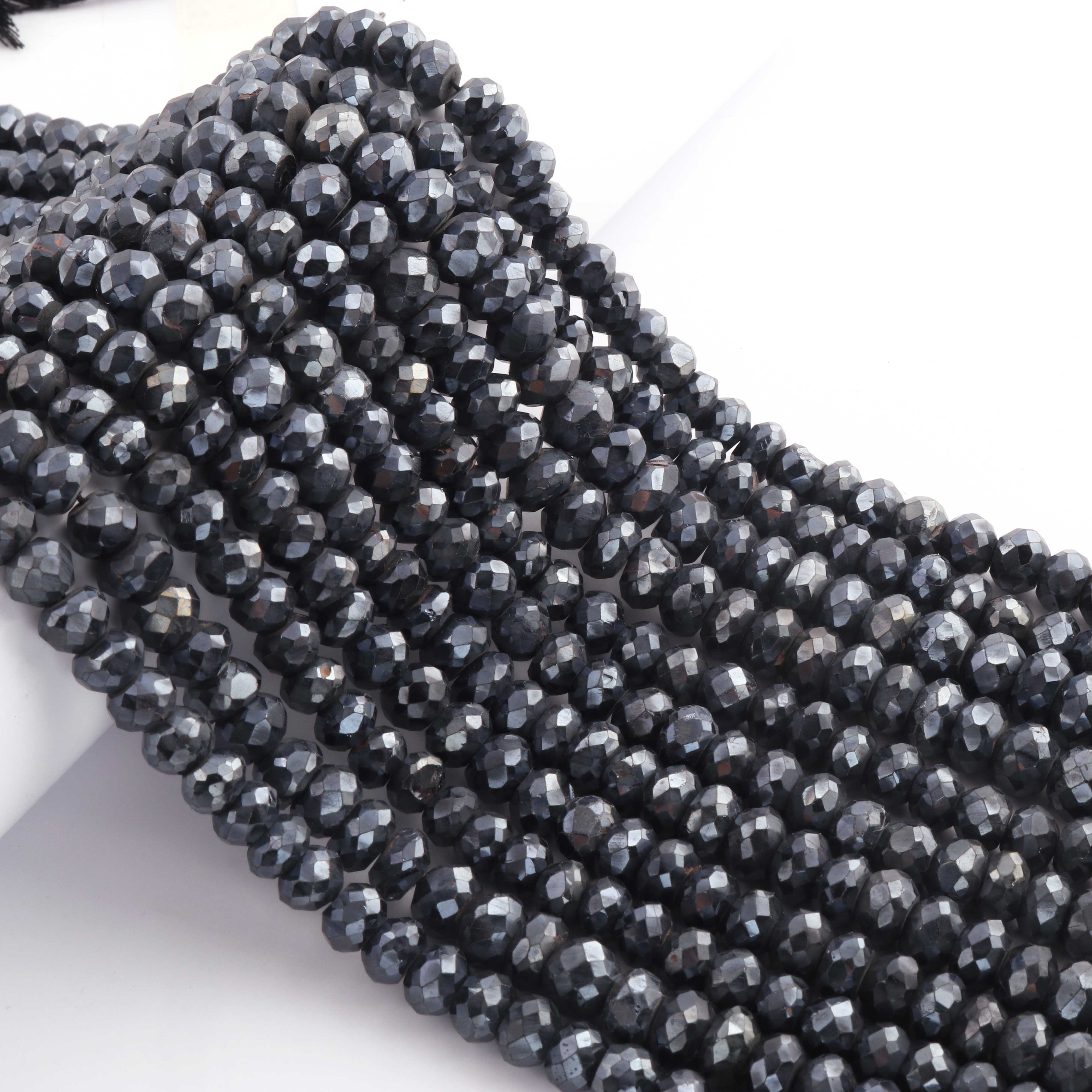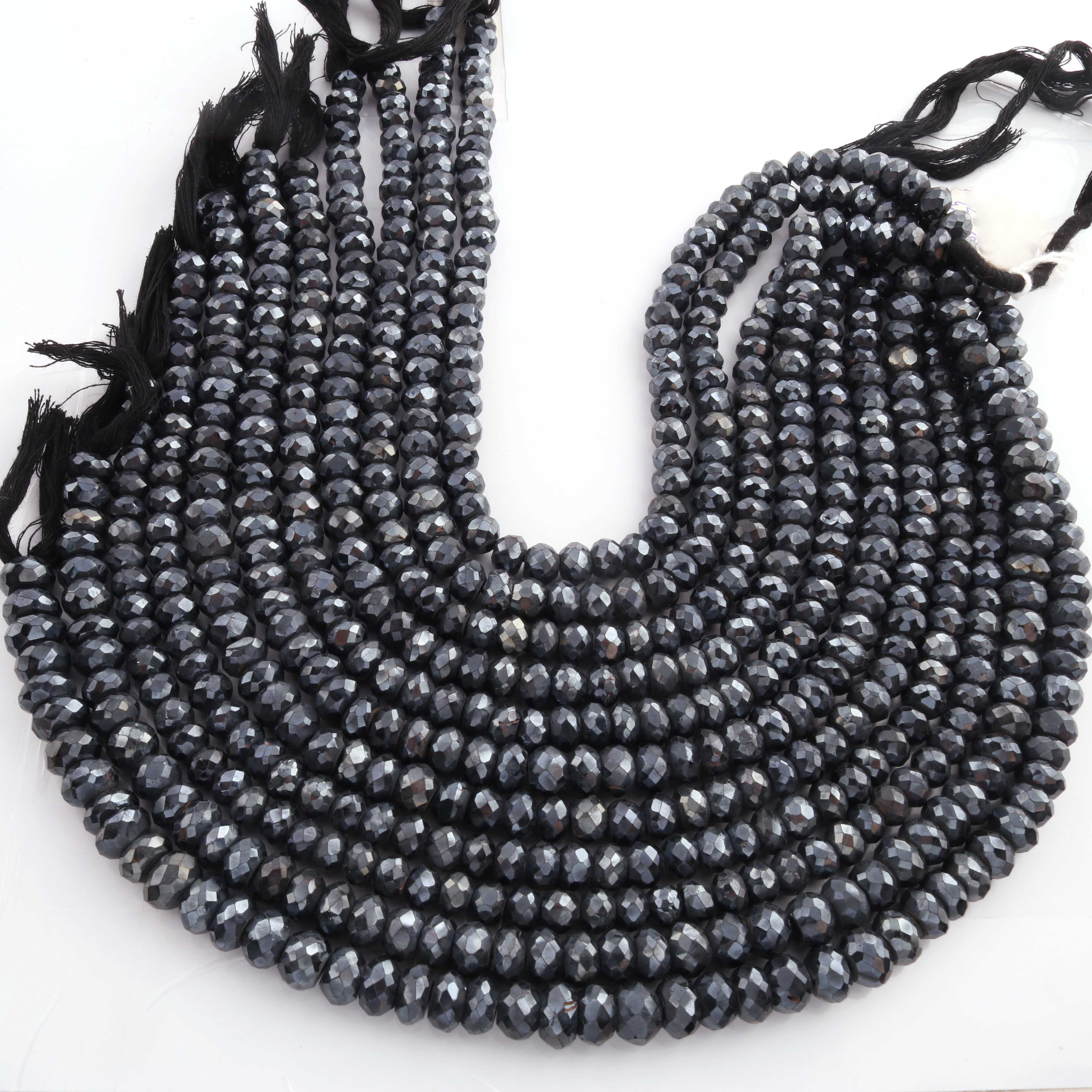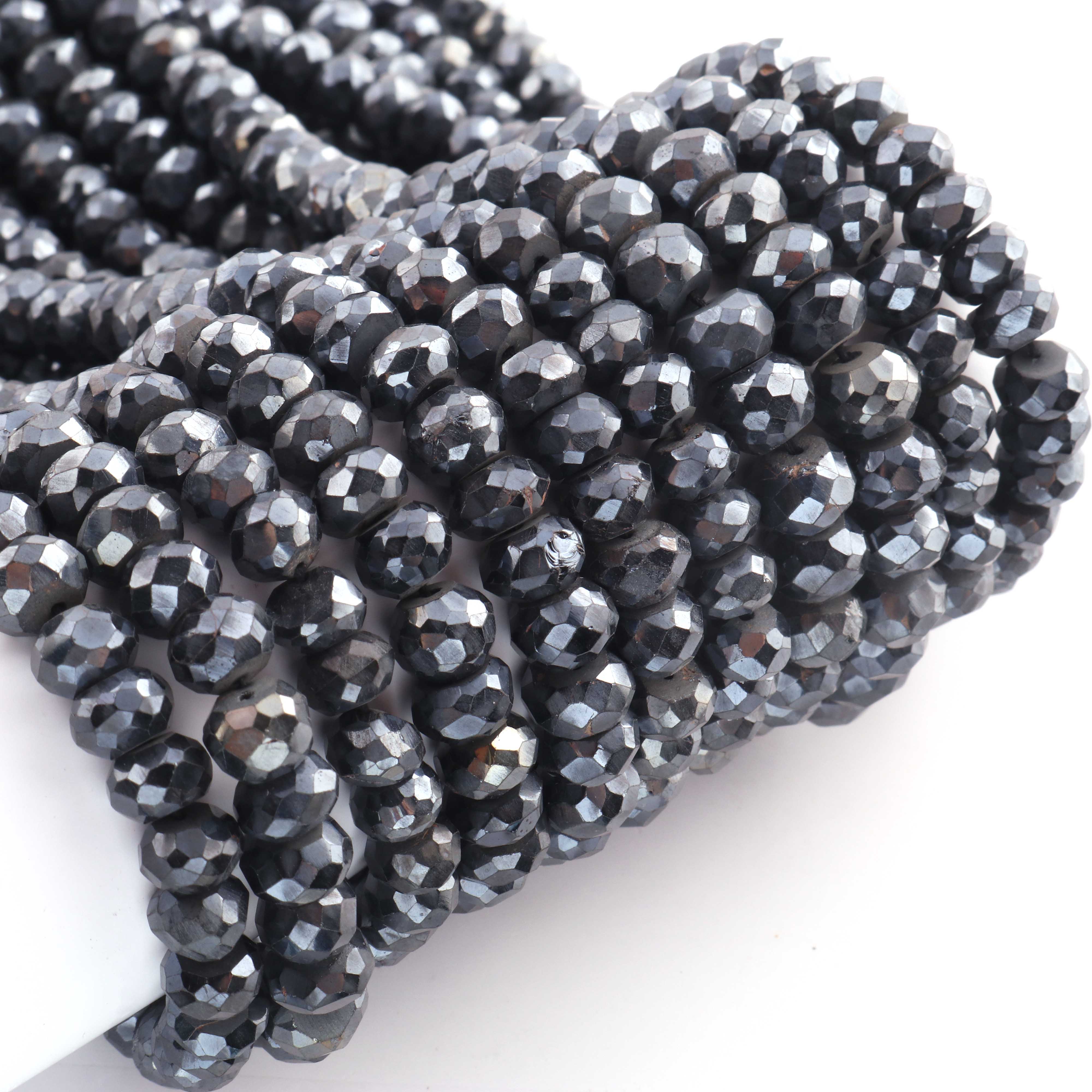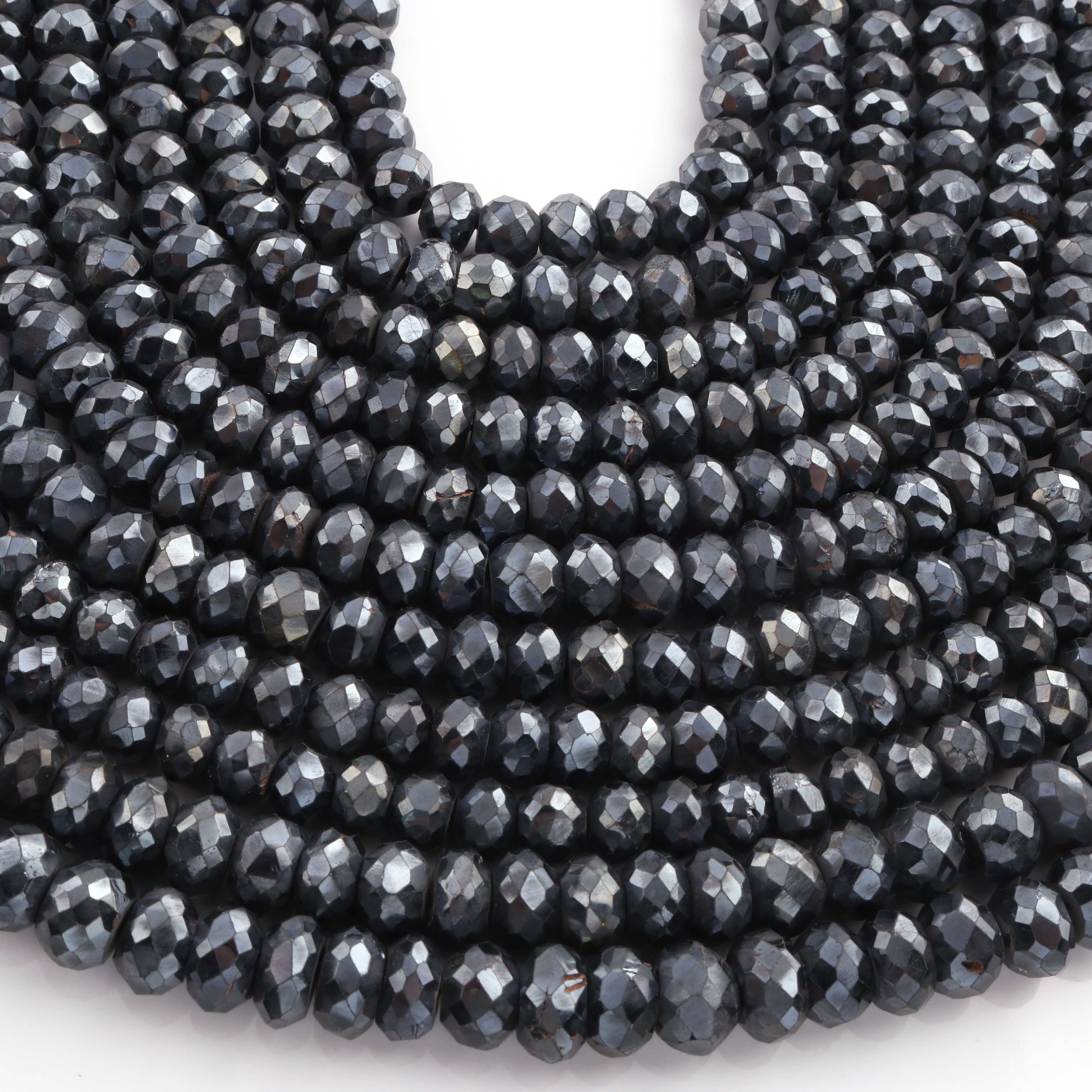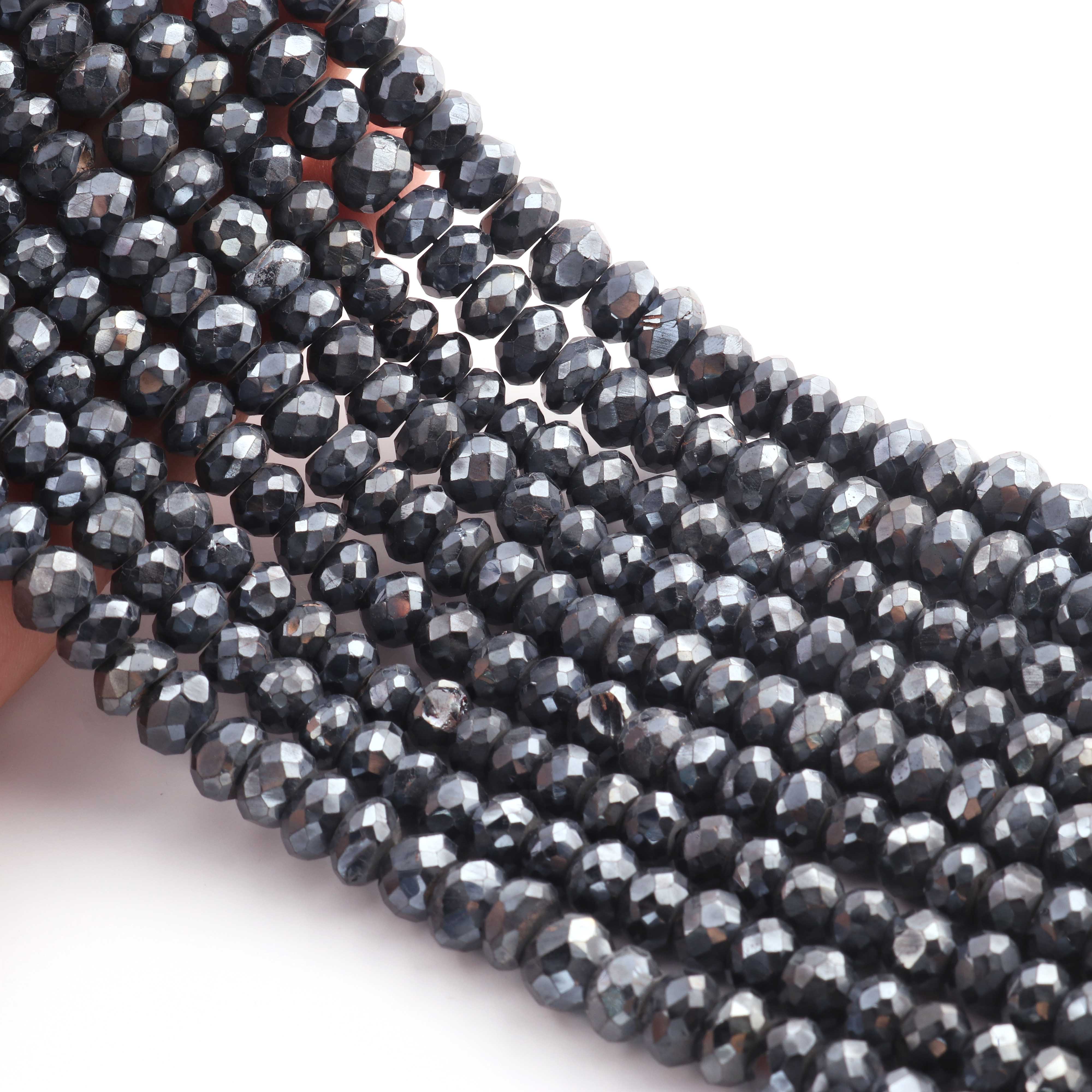 1 Strand Black Spinel Silver Coated Faceted Rondelles Beads-Semi Precious Gemstone Rondelles Beads - 7mm-10mm -13 inches BR01862