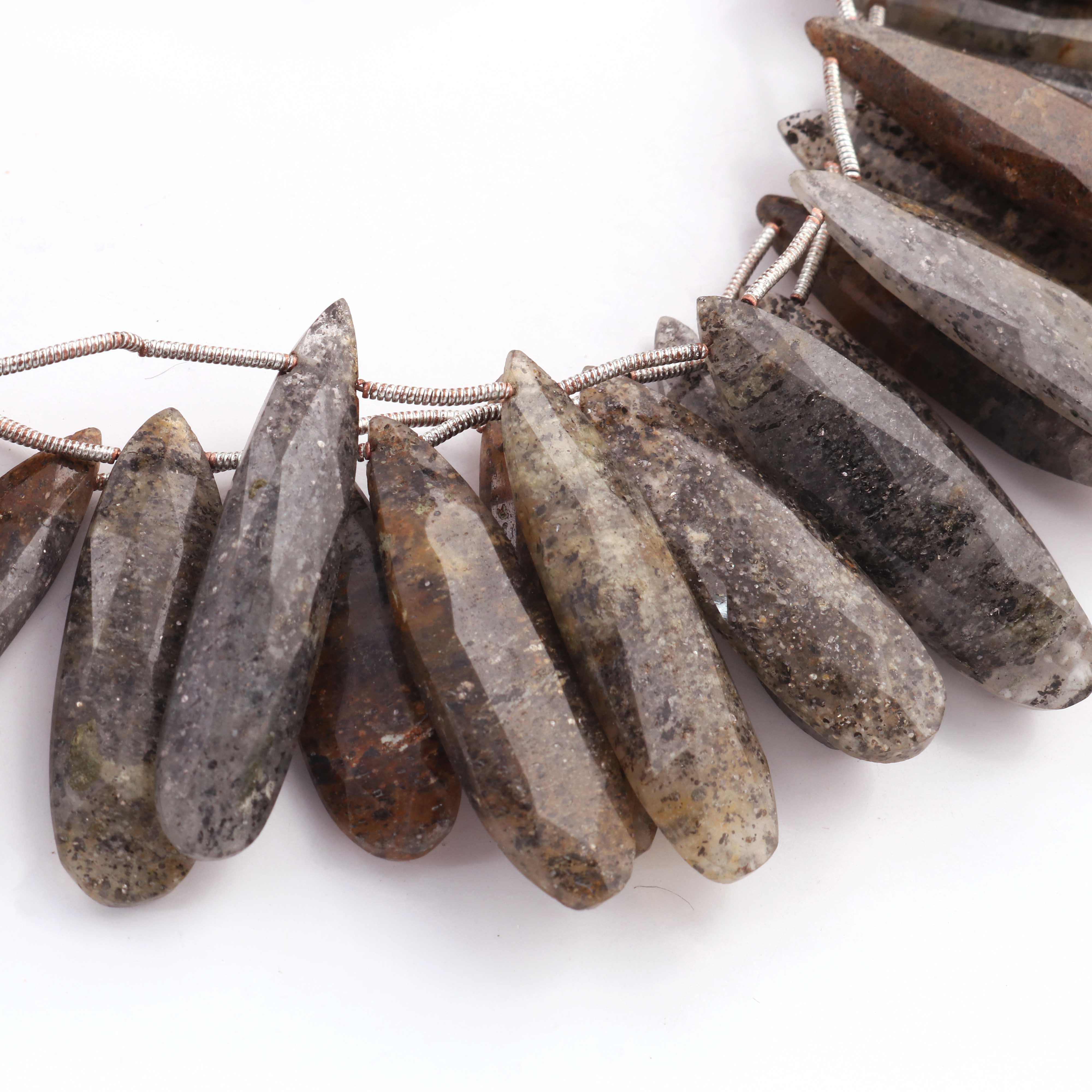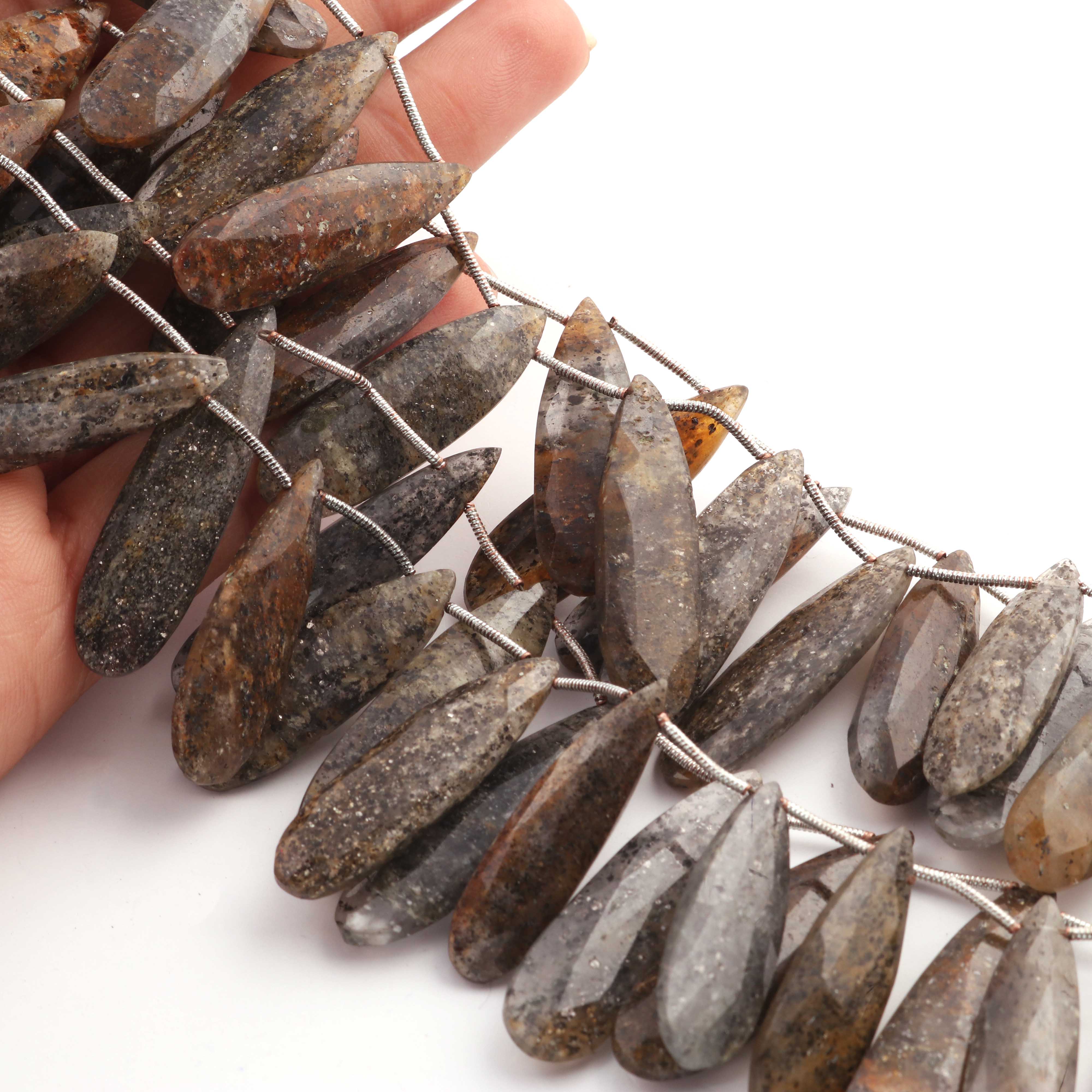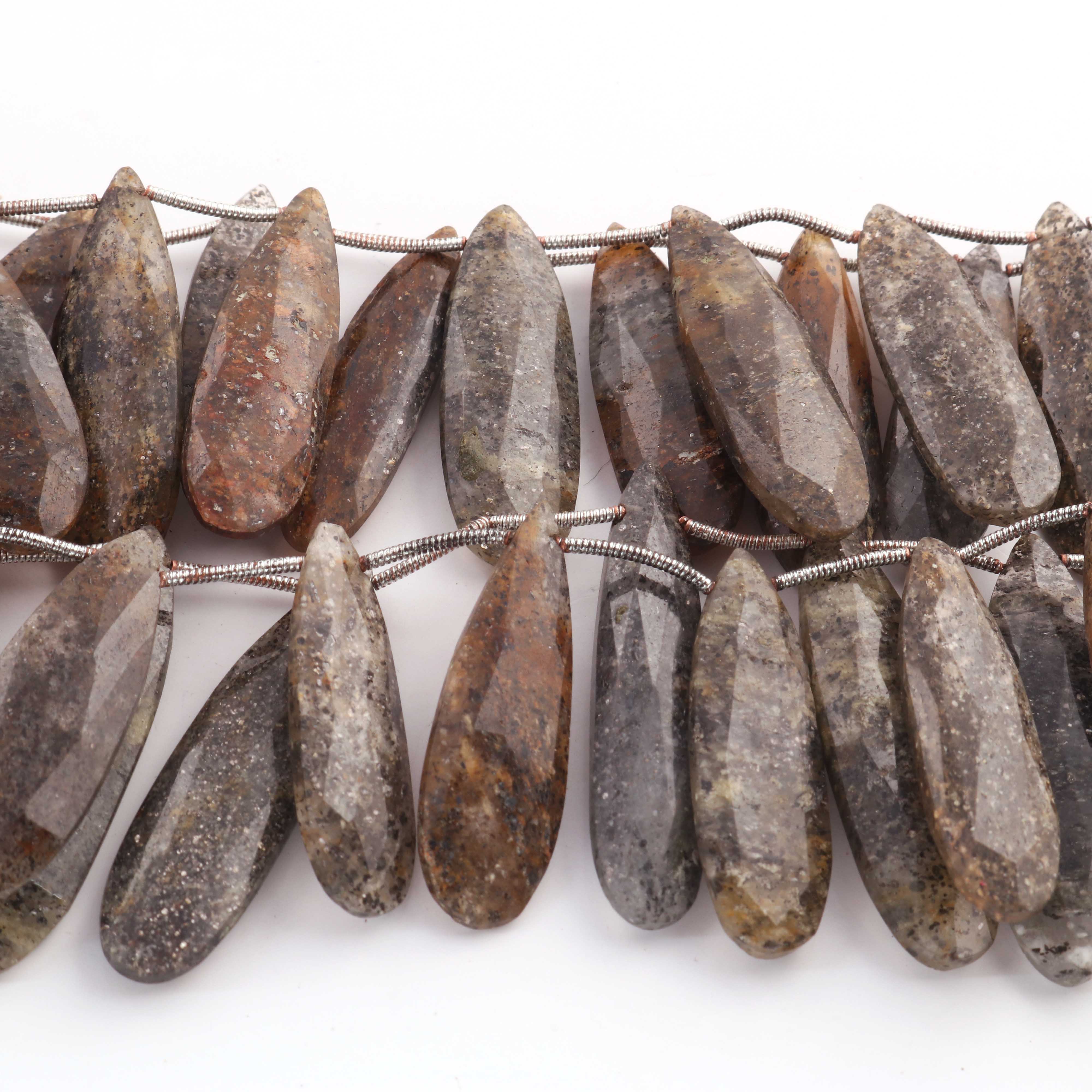 1 Strand Black Sun Stone Faceted Briolettes -Semi Precious Gemstone Long Pear Shape Briolettes 31mmx10mm-43mmx12mm - 9 Inches BR03259
