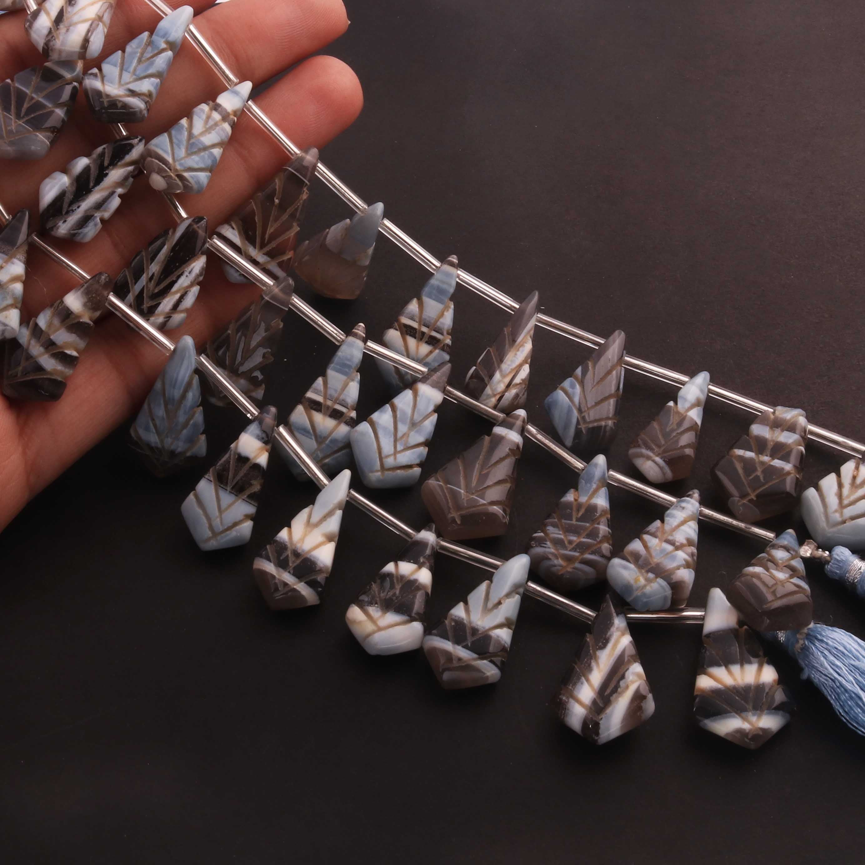1  Strand Boulder Opal Carving  Briolettes  -Fancy Shape  Briolettes  -24mmx11mm-35mmx12mm  8 Inches BR03511