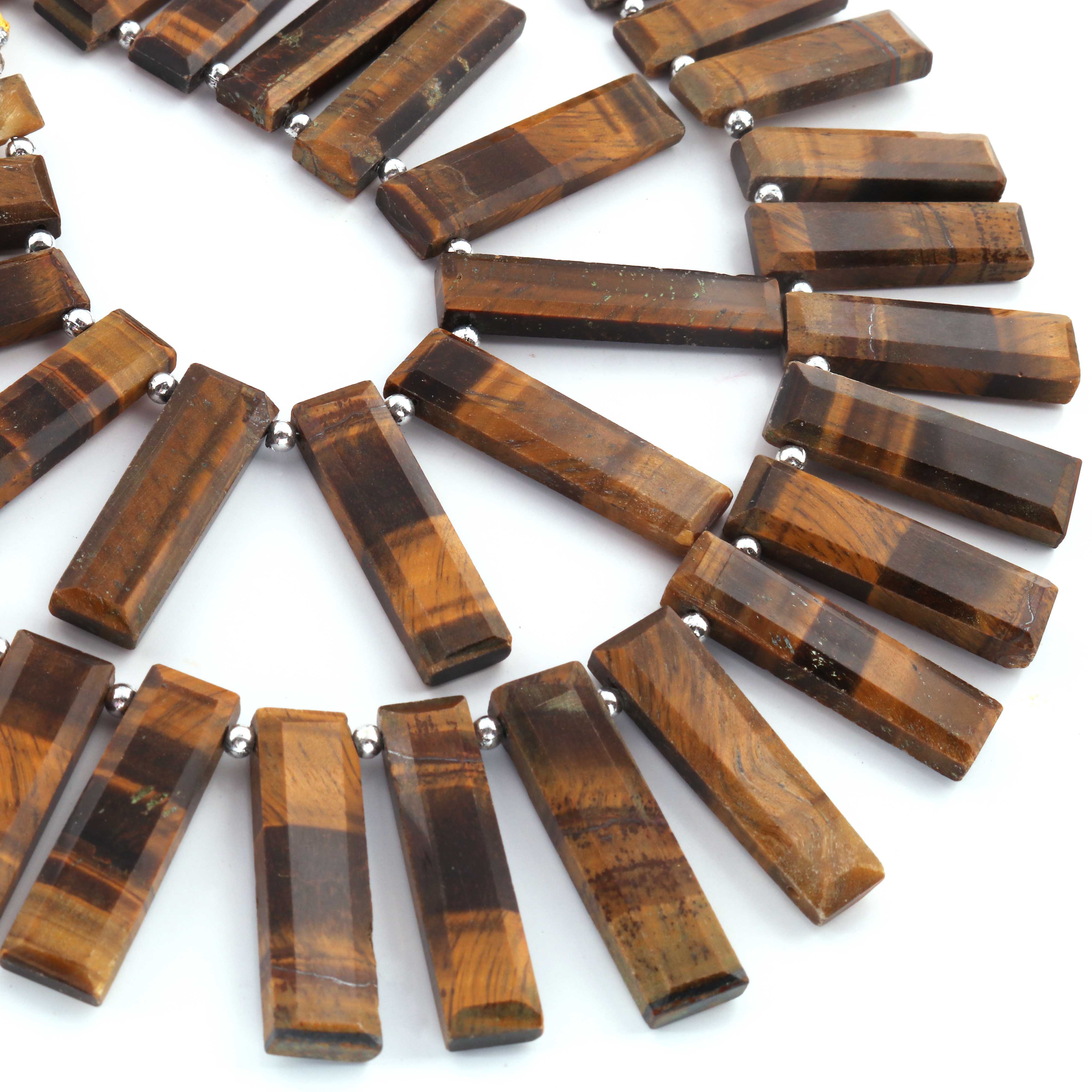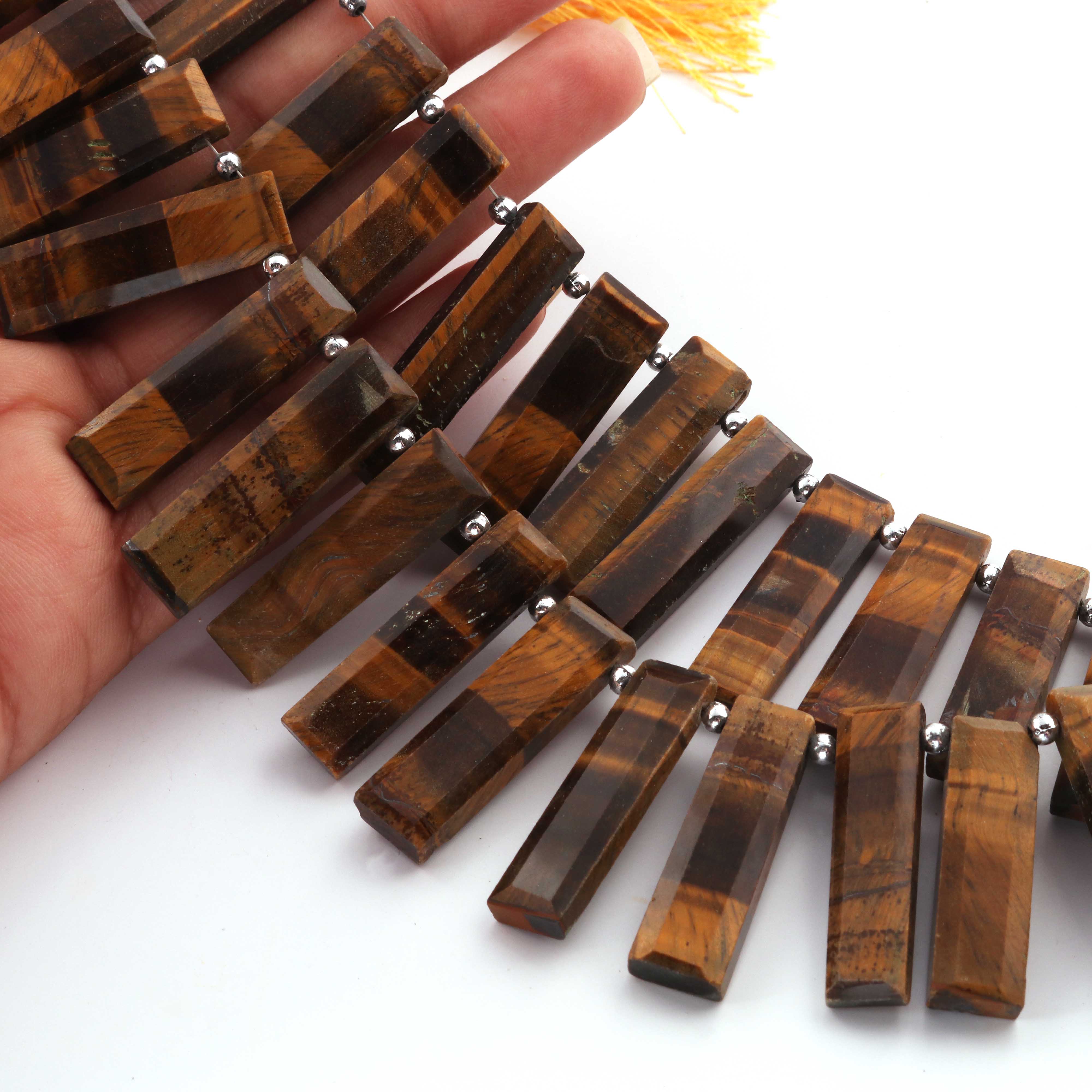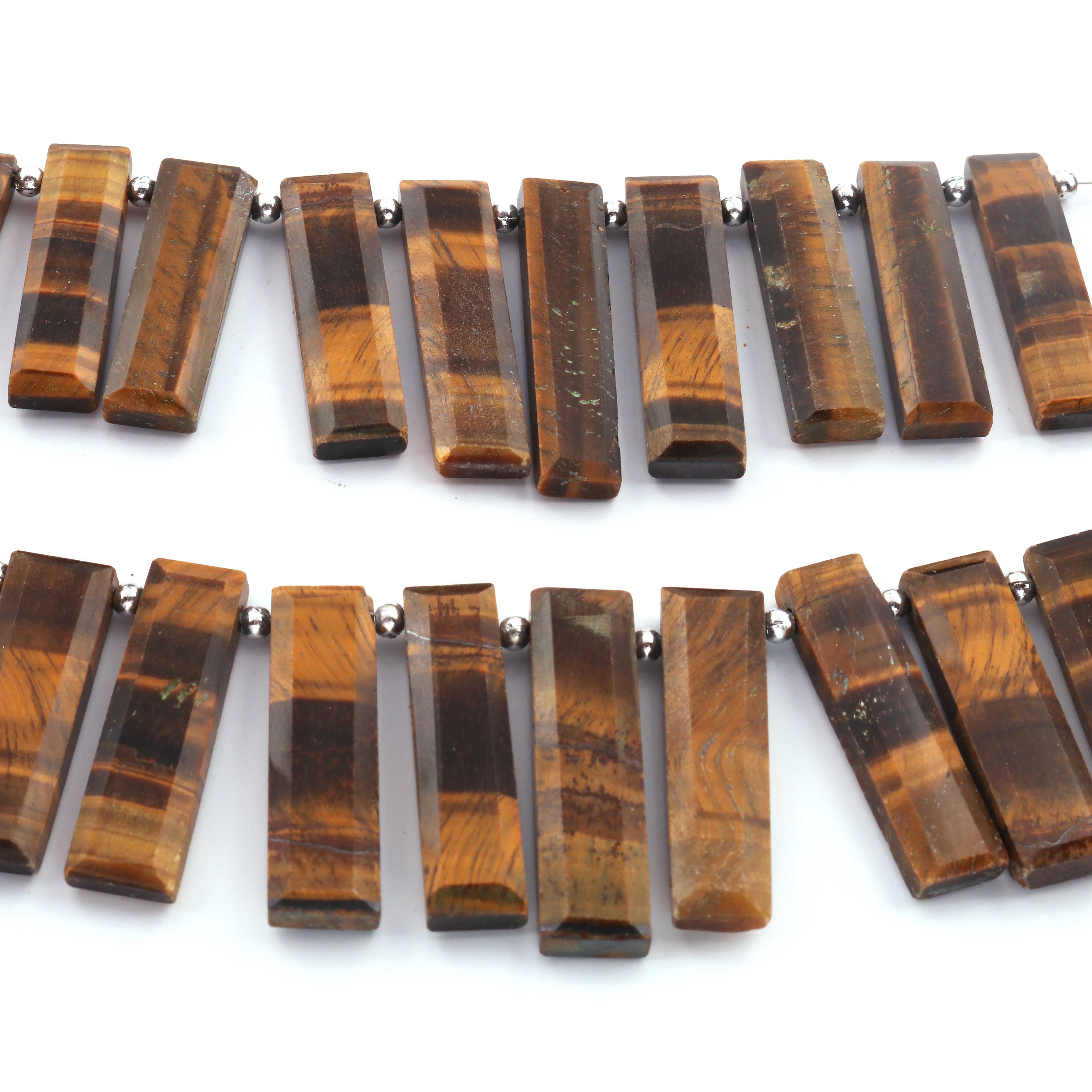 - 1 Strand Brown Tiger Eye Faceted Briolettes - Rectangle Briolettes-20mmx8mm-36mmx8mm 8 Inches BR03527
