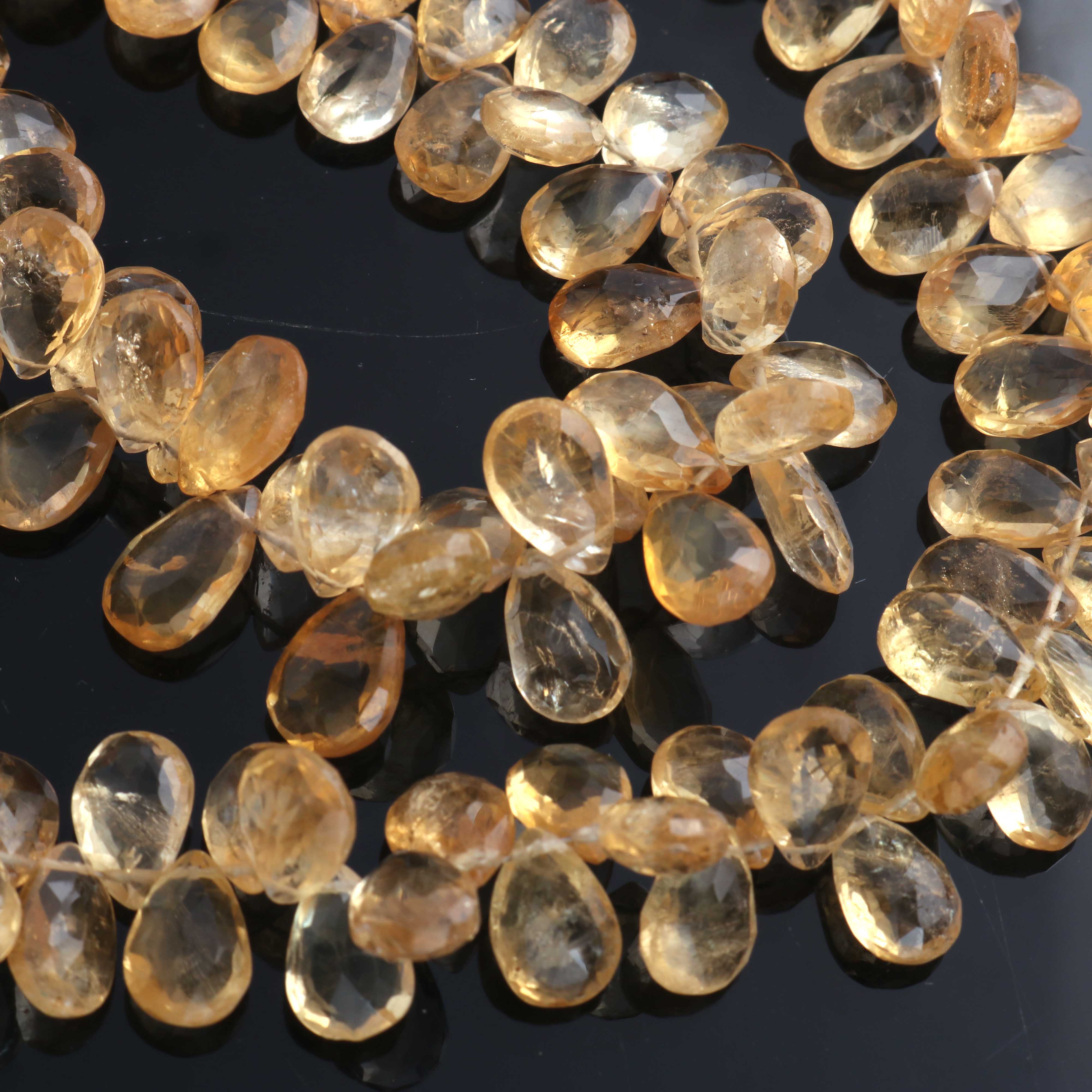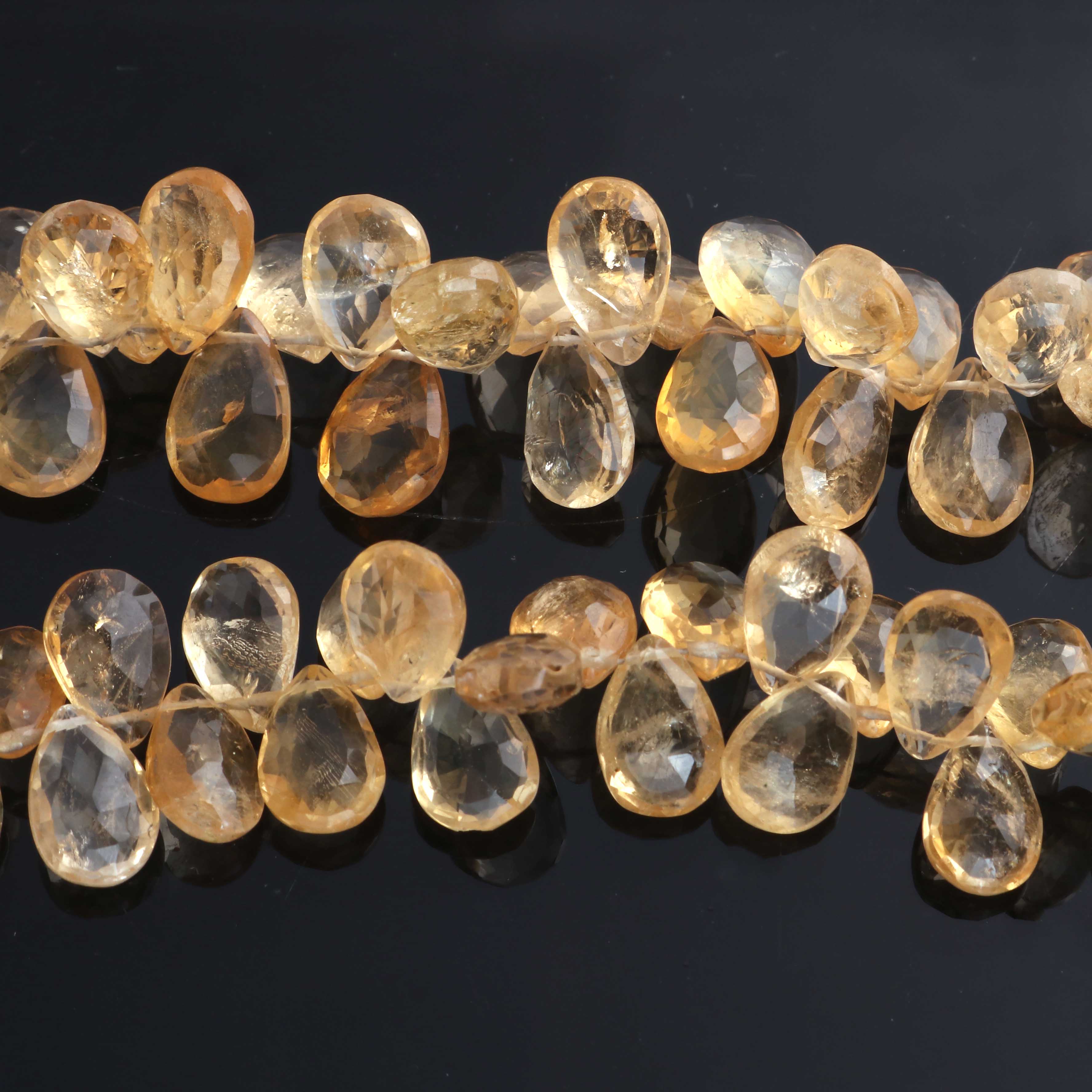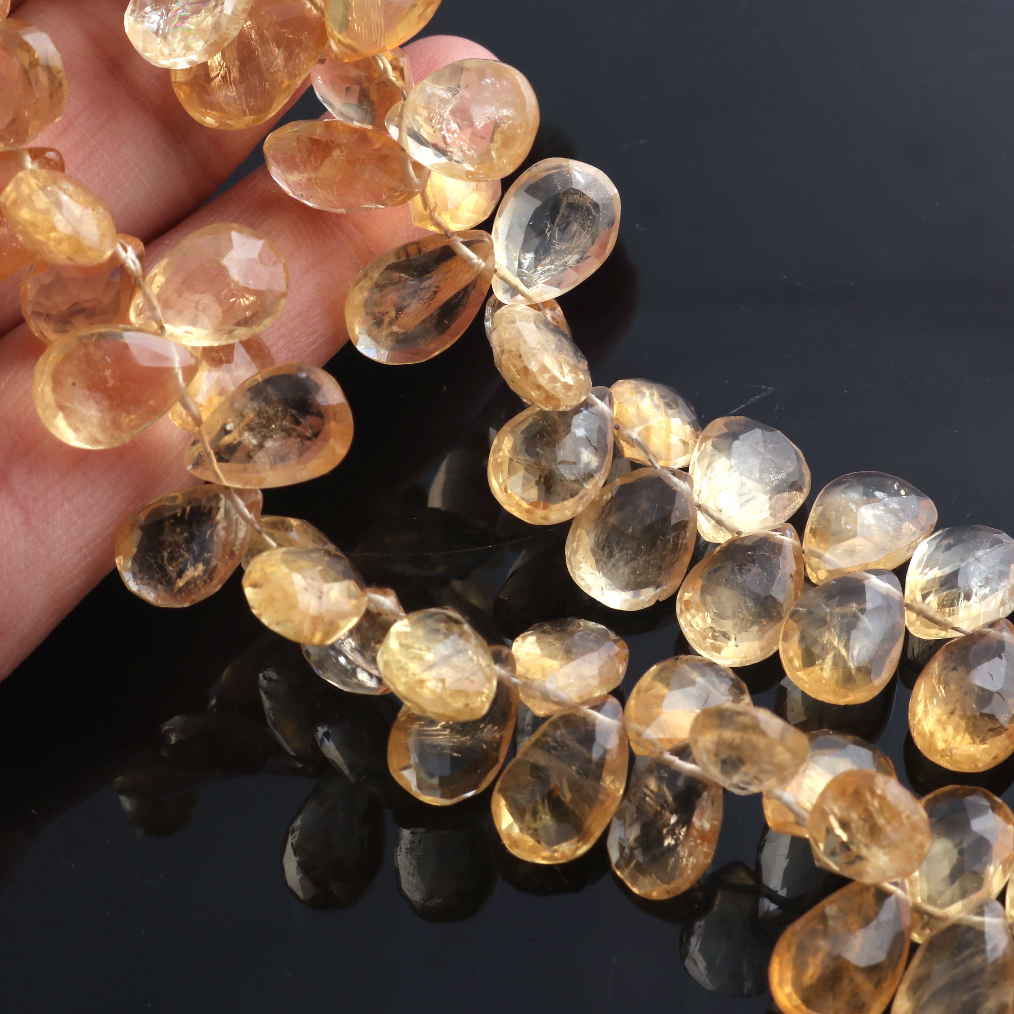 1 Strand Citrine Faceted Briolettes - Pear Shape Briolettes -10mmx8mm-13mmx9mm-8 Inches BR02144